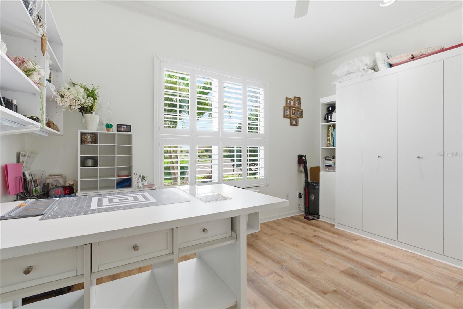 Tucked inside the gates of Boca Royale, this exceptional residence showcases modern elegance, thoughtful design, and a refined sense of luxury at every turn. From the moment you enter, the home reveals a bright and expansive layout accented by soaring tray ceilings, rich wood flooring, and an effortless flow that feels both sophisticated and inviting. The kitchen is a true showpiece, designed with both beauty and performance in mind. A striking quartz island anchors the space, complemented by warm butcher block countertops that add depth and character. Features include a farmhouse sink, gas range with pot filler, extensive cabinetry and pantry storage, and a seamlessly integrated hidden refrigerator that preserves the clean architectural aesthetic. Every detail has been carefully curated to create a space worthy of a chef while remaining ideal for both everyday living and elevated entertaining. The living area opens seamlessly through sliding glass doors to a private outdoor retreat. The screened lanai reveals a resort-style pool and spa overlooking lush, tranquil greenspace, creating a serene and private setting perfect for quiet relaxation or hosting guests in style. Retractable awnings provide an added layer of comfort and shade, allowing you to enjoy the outdoor space throughout the day. The primary suite offers a peaceful escape with tray ceilings, generous proportions, and a custom barn door leading into the spa-inspired bath. Dual vanities, a spacious walk-in shower, and an expansive walk-in closet complete the suite with both comfort and refined design. Two additional bedrooms provide flexibility for guests or family, including one featuring a built-in Murphy bed. A private office with elegant French doors creates a refined and quiet space ideal for working from home, reading, or pursuing creative interests. Positioned on a desirable corner lot, the property enjoys added privacy and a distinguished presence within the community. Additional features that will make you feel right at home include the hurricane windows, generator and whole house water filtration system. Life within Boca Royale Golf and Country Club is defined by elegance, connection, and resort-style living. Centered around a beautifully restored Georgian-style clubhouse, the community offers an elevated social experience with both fine and casual dining, a vibrant calendar of events, and welcoming gathering spaces. Residents enjoy a championship 18 hole golf course set among lush natural surroundings, along with a full practice facility including a driving range and putting green. Har Tru clay tennis courts and lighted pickleball courts provide exceptional racquet amenities, while a resort style pool, fitness center, scenic walking paths, and a dedicated dog park further enhance the lifestyle. Located just minutes from the Gulf beaches of Manasota Key and near Wellen Park, Boca Royale offers a rare balance of privacy, recreation, and coastal convenience. Elegant, inviting, and impeccably designed, this residence delivers a level of comfort and sophistication that defines the very best of Florida living.