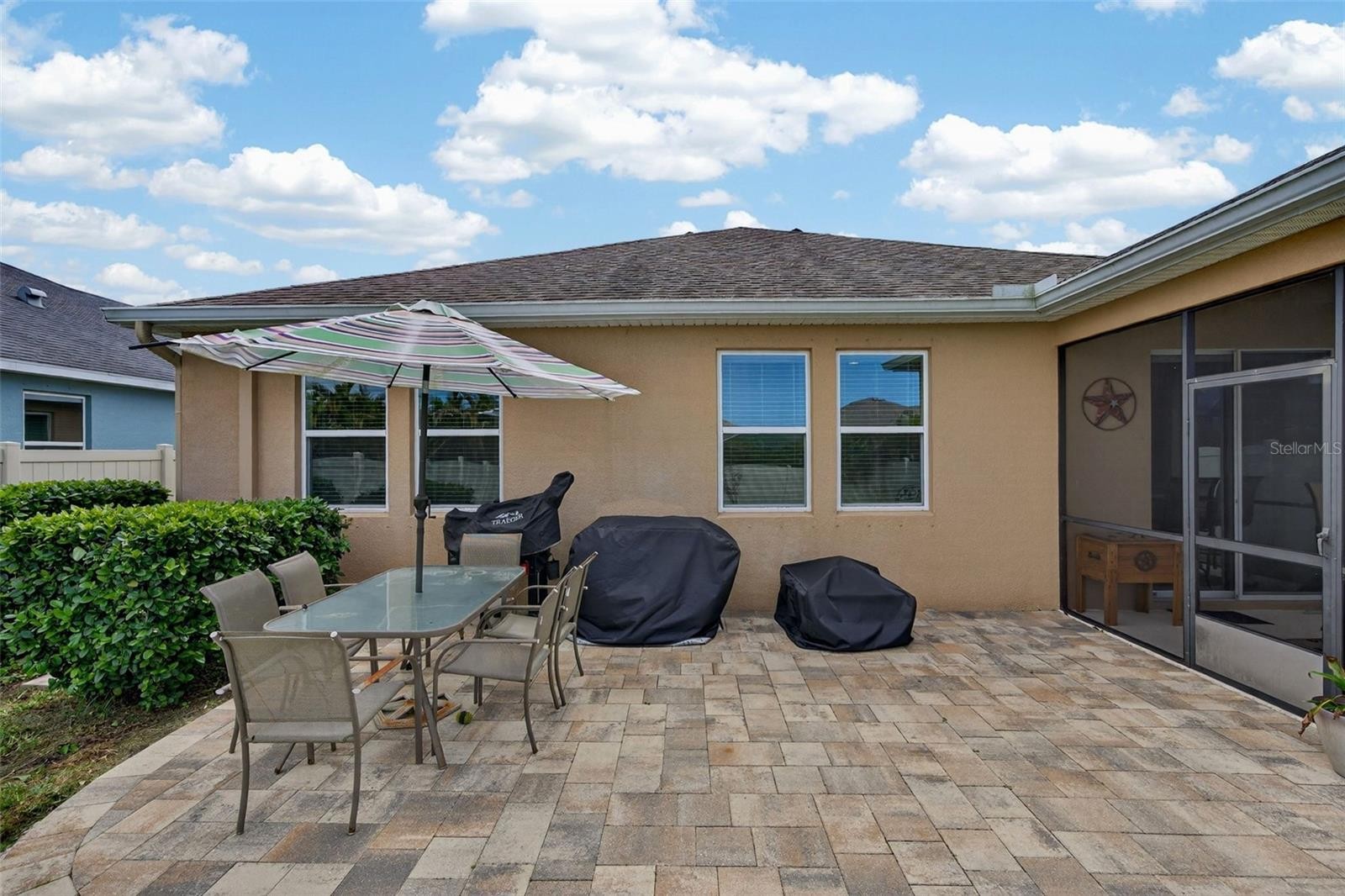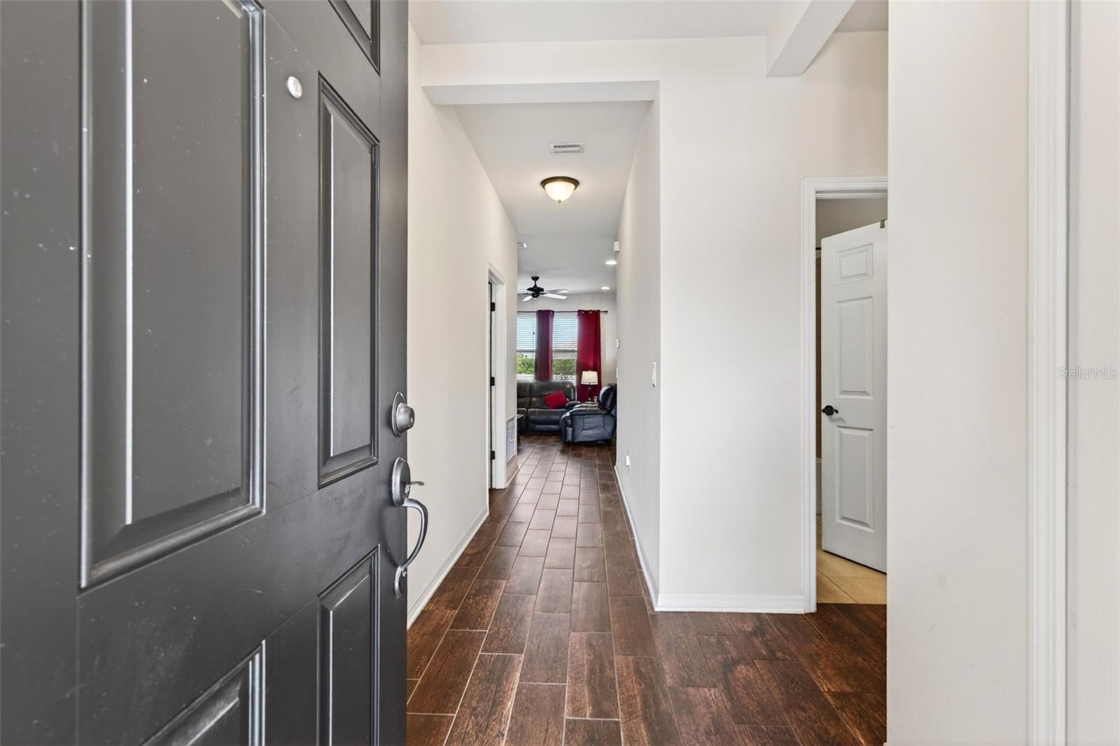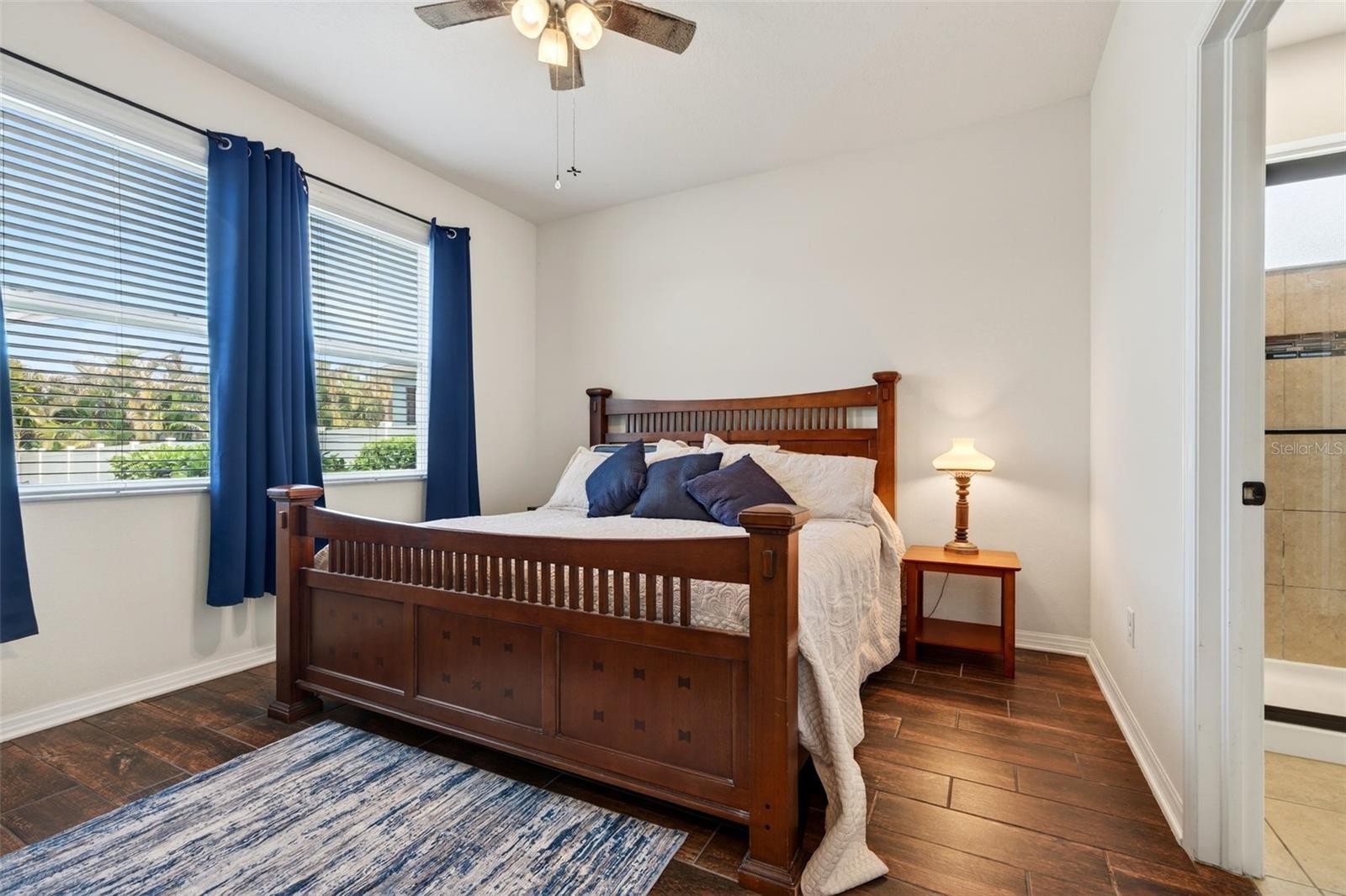 Nestled along the tree-lined streets of Copperstone, this wonderful family home offers exceptional curb appeal. Built by Ryland Homes, the residence features a thoughtfully designed floor plan ideal for the Florida lifestyle. Upon entering, the “Edgewater” floor plan welcomes you with a foyer and entrance gallery. Two secondary bedrooms and a dedicated full bath are conveniently located near the front of the home. Moving into the main living area, a wall of windows fills the great room with natural light, creating a bright and inviting space. The kitchen and dining area flow seamlessly together while overlooking the great room, making the layout ideal for both everyday living and entertaining. The primary suite is privately positioned off the great room and features its own bath and walk-in closet. High ceilings and generous windows enhance the home’s spacious feel. Wood-plank tile flooring runs throughout most of the home, with carpeting in the guest bedrooms. A radiant barrier adds energy efficiency, and additional attic flooring provides valuable storage space. The outdoor living area is equally inviting, with a covered porch that extends to a pavered lanai overlooking the fenced backyard. Landscape curbing highlights the lush Florida tropical landscaping and adds a polished finishing touch. Residents of Copperstone enjoy numerous community amenities, including a large clubhouse with a fitness center and billiards room, basketball courts, a covered playground, two community pools, and walking trails. HOA fees also include discounted cable and Wi-Fi. With convenient access to Interstate 75, the location is ideal for commuters while maintaining the appeal of low HOA fees.