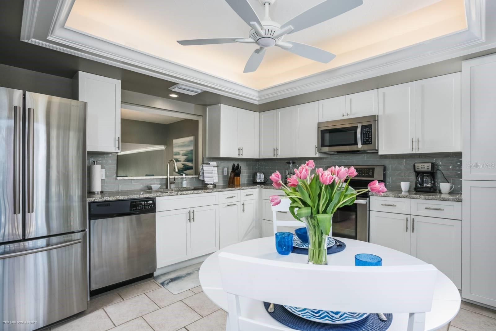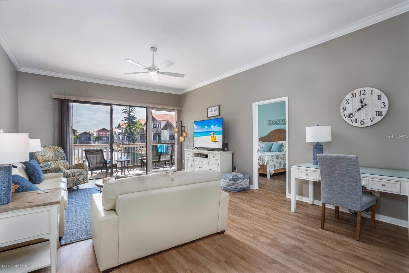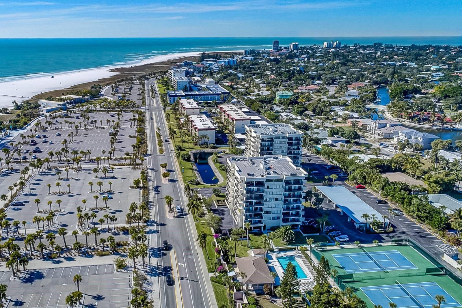 See this Fabulous Beach Retreat w/Rental Income Opportunity Located Directly Across the Street from the #1 Ranked Beach in the USA! This incredible 2020 Fully Remodeled and Newly Furnished Condo is Steps Away from the Famous Siesta Key White Crystal Sandy Beaches and Turquoise Gulf Waters! UNIT FEATURES: 2 Large Bedrooms, 2 Fully Remodeled Baths, Great Split Level Floor Plan, Main Level includes the Living Room and Master Suite both with Long Lake Views and Balconies to Enjoy the Gulf Breezes and Beautiful Sunsets, Living Room and Master Suite have Vaulted Ceilings, Master Suite has a Fabulous Updated Master Bath w/Dual Shaker-Style Cabinets and Granite Counters, Walk-in Shower w/Beach Pebble Shower Floor, Spacious Dressing Area w/Built-in Closets; Upper Level includes Large Dining Room Overlooking the Living Room to the Lake Views, Elegantly Remodeled 2020 Light Bright Kitchen w/White Shaker-Style Cabinetry, Granite Counter Tops, Stainless Steel Appliances, Eat-in Kitchen Area, Pantry Closet, Laundry Closet plus a Slider to Balcony w/Sunset Views of the Tennis Courts; Split Plan Guest Bedroom Suite also includes a Balcony w/Views of the Tennis Courts, Remodeled Guest Bath w/Designer Tile, Granite Counter Tops and Combo Tub/Shower, 10' Ceilings, Brand New 2025 Tile Flooring on Main Level, One Car Garage on Ground Street Level w/Tons of Storage for Beach Chairs, TURNKEY FURNISHED w/Brand New Coastal Furniture, Home Sleeps 6 w/Sleeper Sofa, Paid in Full $60,000 for Brand New Impact Sliders, Impact Windows and Impact Garage Door to be installed in Spring of 2026, One Small Dog is Permitted for Owners. CONDO includes: Resort Style Amenities, Heated Pool, Tennis and Pickle Ball Courts and BBQ Pavilion. RENTAL FACTS: On-Site Rental Management Office Conveniently Available to take Advantage of the (52) Weekly Rental Program or Choose Your Own Airbnb Program. Owner Currently Books Rentals via Full Service Management through iTrip. Unit Income is approx $60,000 per year. COMMUNITY includes: Public Beach Access Across the Street w/Sand Volley Ball, Tennis & Pickle Ball Courts and Drum Circle. Siesta Key Trolly Transportation to Siesta Key Village is nearby to plenty of Restaurants, Bars, Ice Cream Shops and Boutiques. No Flood Damage to Unit.