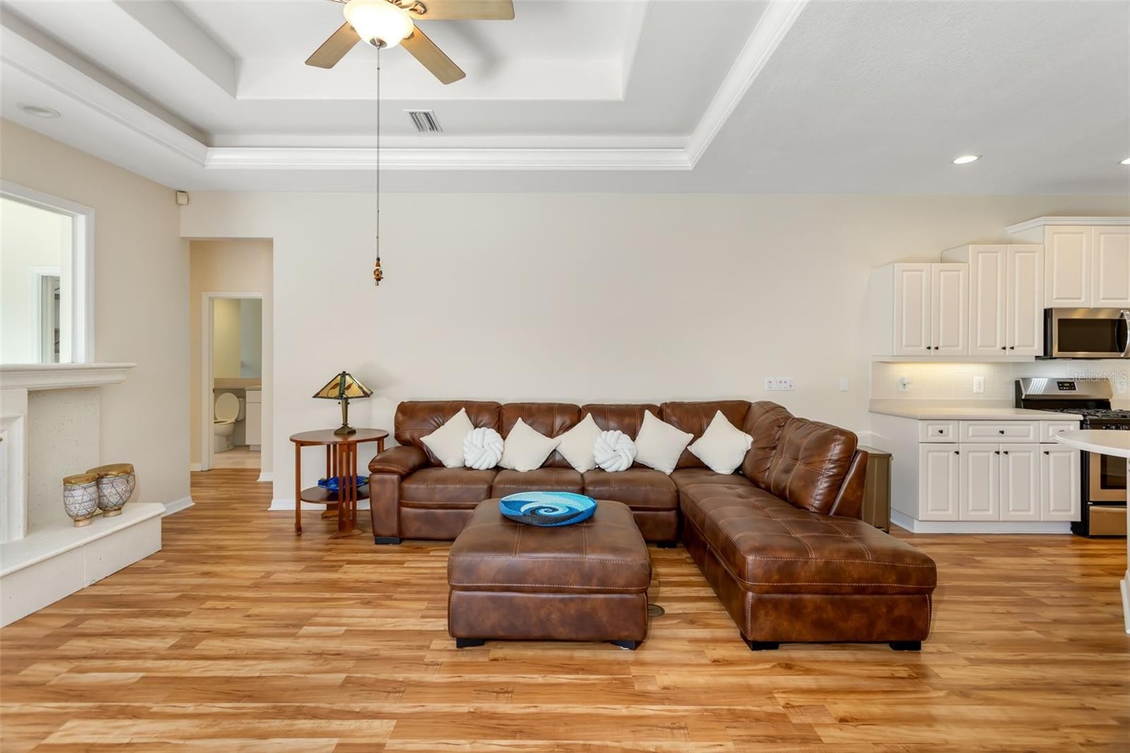 Well positioned on the rear of a quiet cul de sac on an oversized 1/3-acre homesite in Lakewood Ranch, this four-bedroom, three-bath residence offers privacy, convenience and a desirable setting. The split floor plan has three beds on one side and owner's suite on other. Floorplan includes distinct living and dining room thru brand new impact-rated front double doors, kitchen with island and dinette with an aquarium window overlooking pool and woods flowing into the family room, and a rear bonus room for office, exercise, or overflow. A double-sided gas fireplace connects family and bonus rooms providing more views of the preserve. Dedicated laundry room. Mudroom from the garage. Sliding glass doors - some pocketing - open to covered lanai with pool and spa. Freshly painted interior. Dual-zoned air conditioner with ultraviolet mold control, most windows updated to hurricane-impact glass and new plumbing for instant water heater. Oversized garage. Roof replaced 2017. The cul-de-sac features a landscaped central island with a gazebo and mature oak trees. Low HOA fees. Two miles to Lakewood Ranch Main Street's restaurants, shops, gyms, salons and weekly community events.
