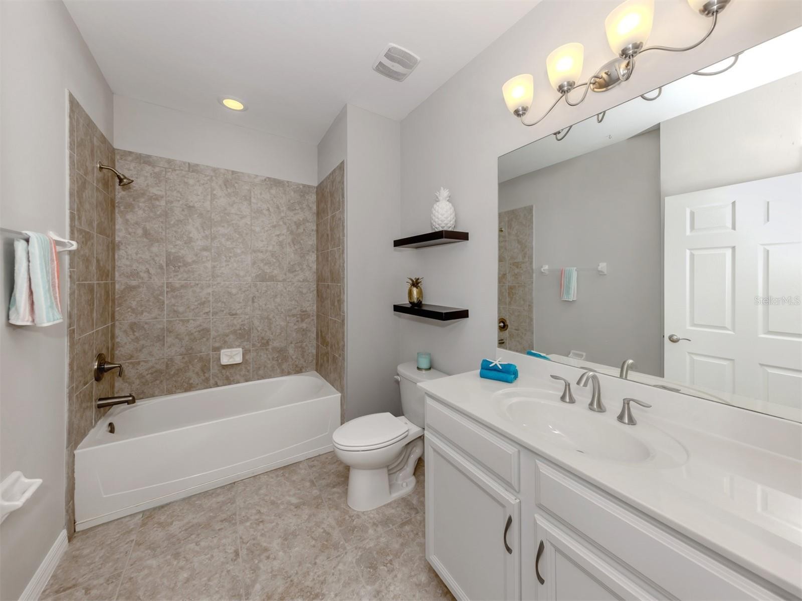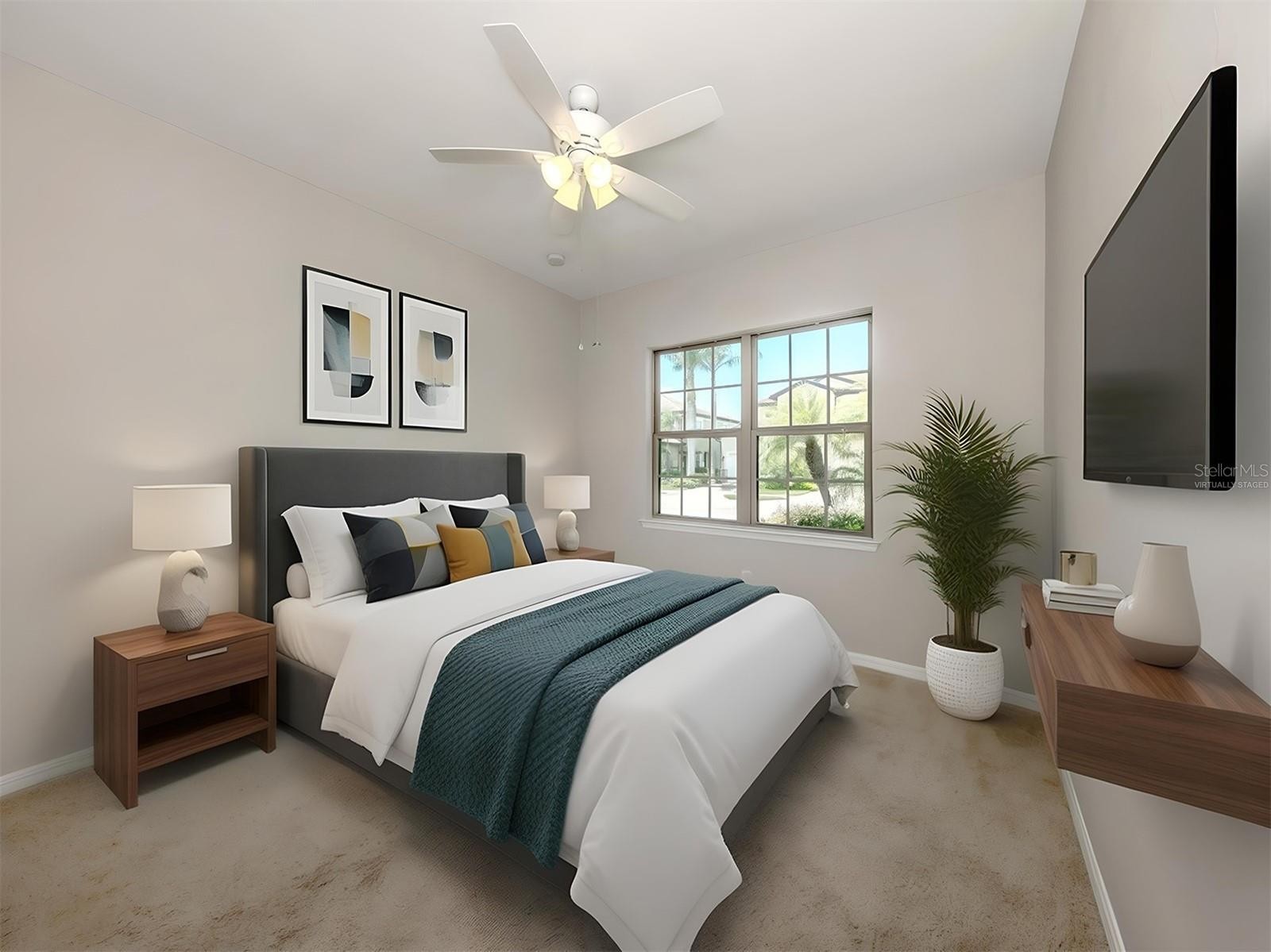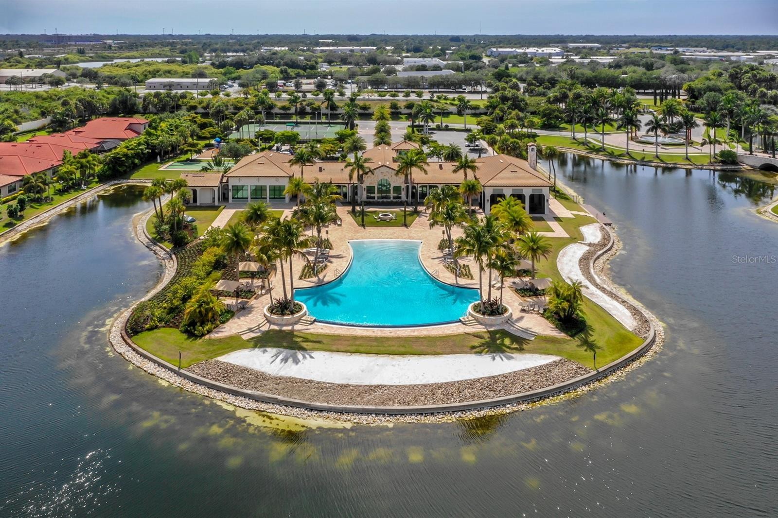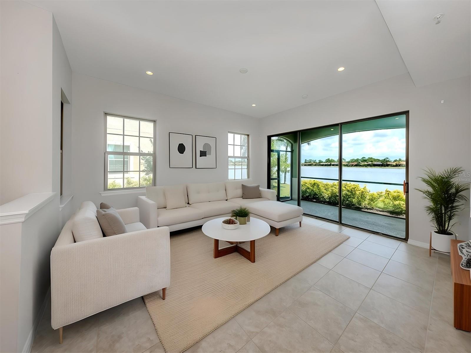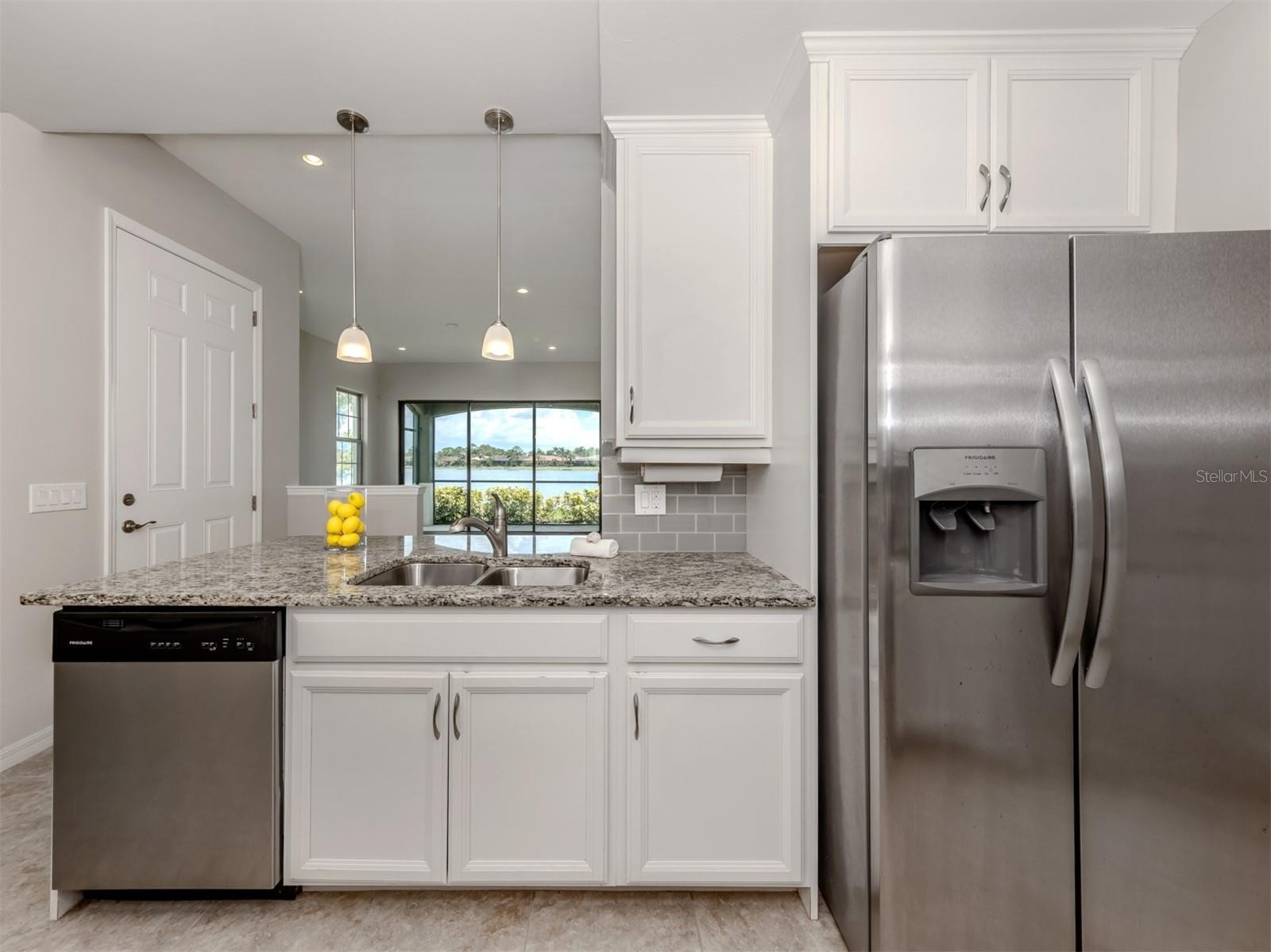 One or more photo(s) has been virtually staged. Welcome to resort-style living in the sought-after gated community of Toscana Isles, ideally in the heart of North Venice. This beautifully designed first-floor condominium offers 1,398 square feet of thoughtfully crafted living space, featuring two spacious bedrooms, two modern baths, a versatile den/flex room, and a private one-car garage all complemented by serene, long lake views. From the moment you arrive, the screened front porch creates a warm and inviting entry for residents and guests. Inside, you’ll find an open, airy layout with soaring ceilings and an abundance of natural light. The well-appointed kitchen is a centerpiece, featuring granite countertops, stainless steel appliances, opaque 42-inch cabinetry, ample storage, a breakfast bar, and a cozy eat-in dining area ideal for everyday living and entertaining. The kitchen flows seamlessly into the expansive great room, where sliding glass doors lead to a screened-in lanai overlooking tranquil water views, an ideal spot to relax and unwind. Just off the main living area, the den/flex room offers endless possibilities as a home office, hobby space, or guest area. The primary suite, privately at rear of the home, serves as a peaceful retreat with picturesque lake views, a custom walk-in closet and a well-appointed en-suite bath. The split-bedroom layout enhances privacy, with the second bedroom toward front of the home, complete with its own walk-in closet and easy access to a full bath. Additional highlights include a convenient hallway laundry closet, built-in sprinkler system, smoke detectors and hurricane protection for added peace of mind. The oversized one-car garage provides plenty of space for parking and storage. Toscana Isles offers an exceptional lifestyle with over 8,000 square feet of resort-style amenities, including an infinity-edge pool, state-of-the-art fitness center, pickleball and tennis courts, bocce ball, playground, activity center, fire pit and dog park. Residents also enjoy access to over 200 acres of scenic ponds for fishing, kayaking and canoeing. Ideally just minutes from Gulf beaches, charming downtown Venice, Wellen Park, major highways, top-rated schools and premier medical facilities, this home combines comfort, convenience and coastal living at its finest.