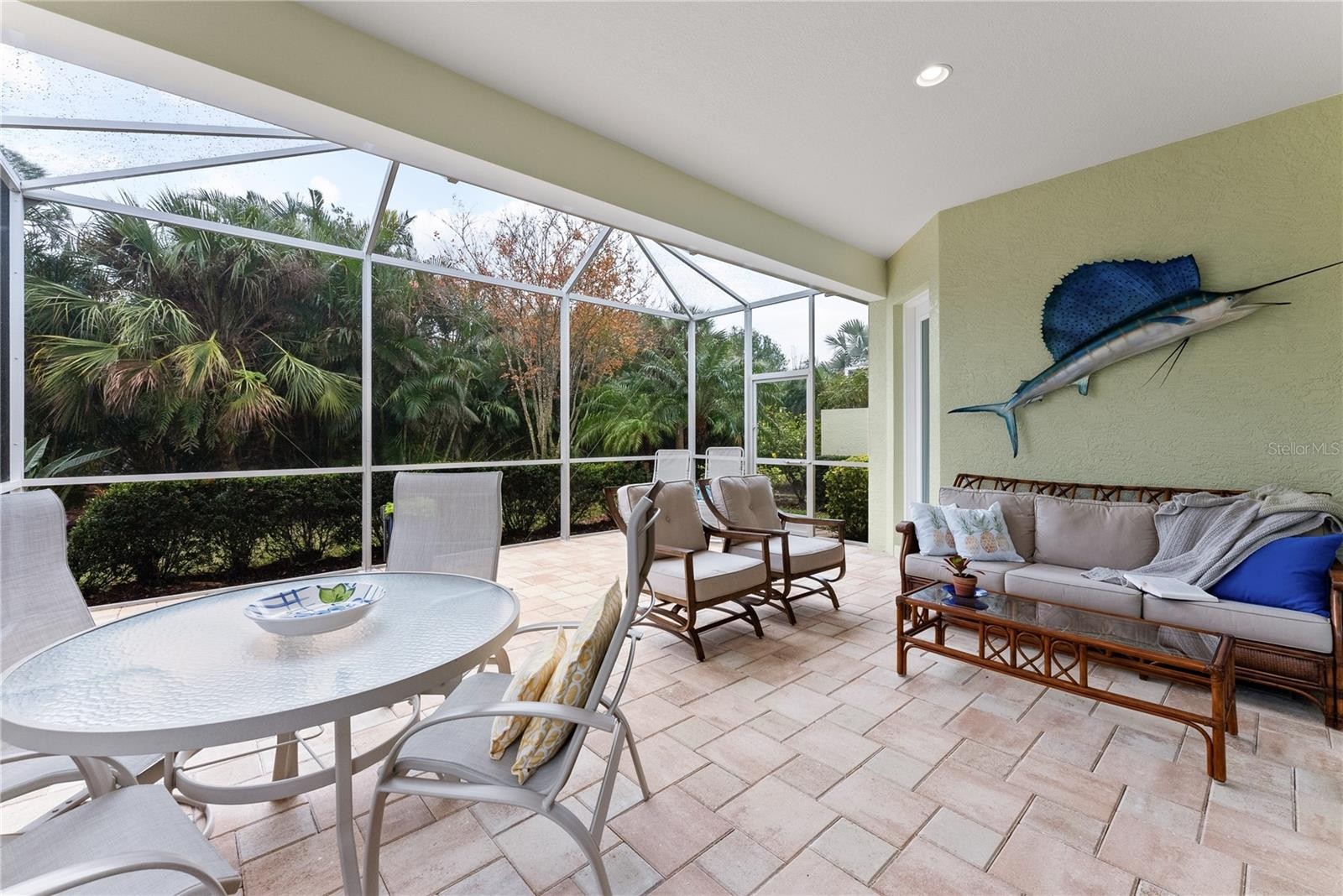 MAINTENANCE FREE - OPEN FLOOR PLAN - IMPACT HURRICANE WINDOWS - LARGE GARAGE - PRIVATE LANAI OVERLOOKING PRESERVE - NO CDD FEES - OPTIONAL MEMBERSHIP TO PLANTATION GOLF & COUNTRY CLUB Drop your sandals, straw hat, and beach bag at the door after a sun-soaked day at the Venice beach and pier. Leave the cold, cluttered mindset behind and breathe deeply into a home filled with tranquil aqua tones, creamy cabinetry, warm earth-tone floors, and natural light. From every main living space, peaceful green views draw you to a private lanai—rarely found in neighborhood living. Uncluttered, organic materials—wood, linen, cotton, leather, granite, and ceramic tile- create a calm, curated retreat, where the thoughtfully selected furnishings are included, allowing you to step seamlessly into a home that feels both intentional and effortlessly complete. Enjoy espresso at sunrise or a cocktail at dusk as owls call softly from the preserve. Read, dine, or simply nap in serene outdoor privacy. Morning light fills the kitchen as you plan your day. Built-in coffee and beverage bars, ample storage, and thoughtful design keep life simple and efficient. Personal touches and ocean-inspired blues complete the Florida mood. The third bedroom easily transforms into an office, studio, or creative space—whatever your lifestyle inspires. Just around the corner, two maintenance-free pools and welcoming neighbors invite leisure and connection. With lawn care, exterior maintenance, insurance, internet, and more handled by the community, your time is truly your own. Sleep in. Linger longer. Watch the sun rise with a warm cup of tea. Built to today’s standards with impact windows and storm protection, this home offers comfort, security, and peace of mind. Optional golf and social memberships add even more ways to play and connect. Your return on investment—financial and emotional—has already begun. Step out of the grey zone. Live closer to your dreams. You deserve this.