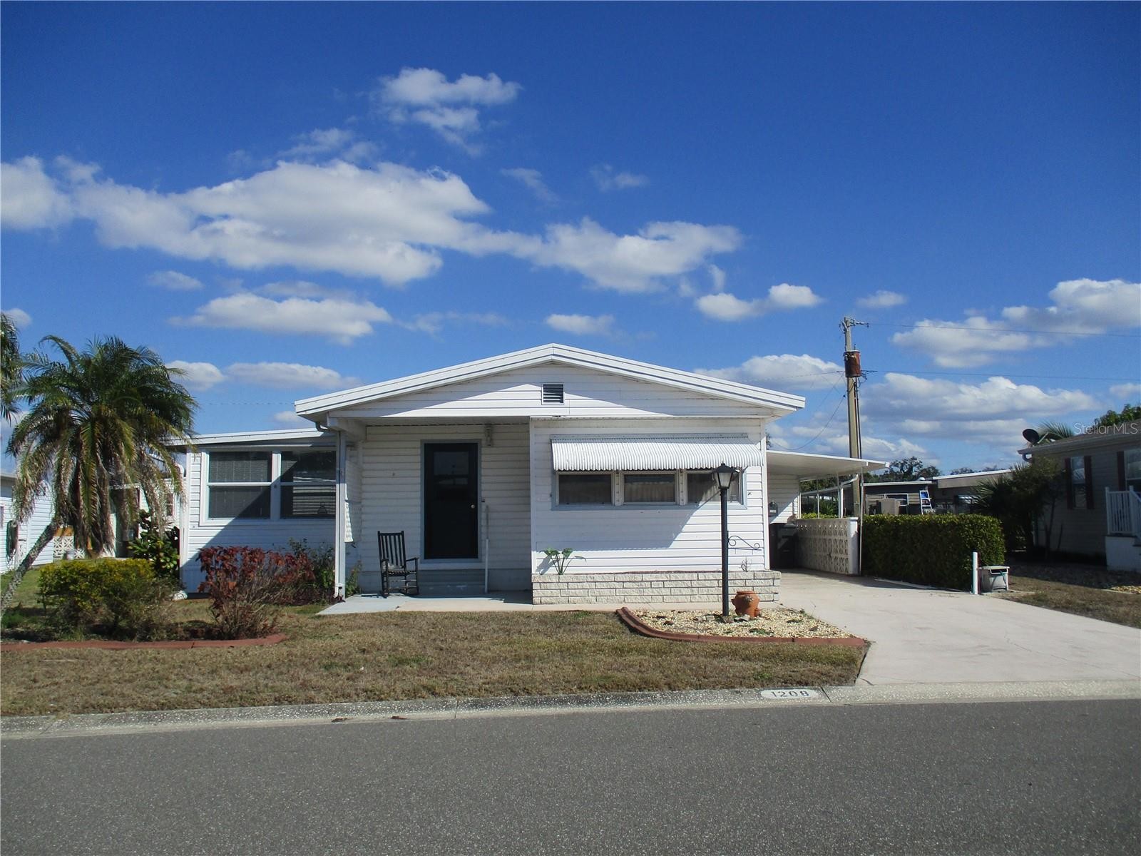 One or more photo(s) has been virtually staged. Welcome to Tidevue Estates, a sought-after 55+ land-owned community offering an active Florida lifestyle in a charming, well-maintained setting. This inviting corner-lot home is framed by mature Christmas palms and native landscaping, creating a welcoming first impression. The perfect space to relax, unwind, and enjoy the neighborhood atmosphere. New Roof in 2024 for peace of mind. Inside, the home features a bright, open living area highlighted by a solid wood shiplap accent wall and decorative wall sconces that add warmth and character. The cozy kitchen is well equipped with an oven range and durable laminate flooring, ideal for everyday living. The owner’s bedroom has been thoughtfully updated with beadboard walls, three closets, and a built-in dresser for ample storage. A spacious 16x16 Florida Room with solid wood beams, adding approximately 256 square feet of additional living space. The inside laundry room includes a wall A/C unit that also services the Florida Room. Residents of Tidevue Estates enjoy a low HOA of only $600 annually, free Wi-Fi at the community library, and an impressive array of amenities including a heated community pool, fitness center, pickleball, bocce ball, shuffleboard, and a full calendar of social activities. Just a short bike or golf cart ride away, Veteran’s Park offers peaceful nature views, picnic areas, and stunning sunsets. Conveniently located near I-75, Ellenton Premium Outlets, dining, and medical facilities, with easy access to Sarasota, UTC Mall, St. Armands Circle, Selby Botanical Gardens, the Ringling Museum, and the Gulf’s beautiful beaches. Come experience the Tidevue lifestyle and all it has to offer.
