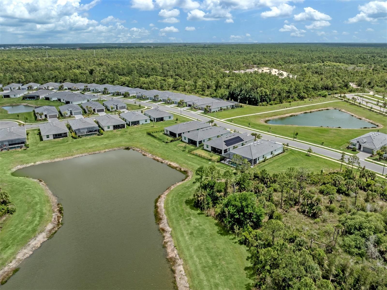 One or more photo(s) has been virtually staged. Wellen Park was named Best Overall Development in Sarasota and Manatee counties during the 2026 Suncoast Builders Association Parade of Homes. Here is your opportunity to purchase a deluxe pool home in Wellen Park at entry level pricing. This property offers maximum privacy with pond and preserve-views from the front, back and side. Watch sunsets from your heated pool and enjoy your spa while sipping a glass of wine on a cool winter day. The saltwater pool and spa make for minimum maintenance, and the heater will have your spa and pool ready to swim in minutes. With electronic remote controls, you can make adjustments right from your hot tub. Grill on your screened lanai with pavered pool deck and eat under cover in this natural oasis. This home offers safety and cost savings with features like sturdy block construction, hurricane impact windows and doors, hip design tile roof with self-adhering secondary water barrier, energy efficiency and a coveted flood zone “X”. Three Bedrooms plus an office and 3 baths, arranged with a split floor plan are the perfect floor plan. The kitchen and great room are the heartbeat of the home with white modern cabinets, stainless steel appliances and a center island. The quartz countertops are white with grey accents and project the elegance you will be proud to show off to guests. The great room offers views of the pool, pond and preserve. The Owner’s Suite with ensuite bath offers a private retreat from guests. The large walk-in shower, dual sinks, quartz countertops, and water closet make this a wonderful hide-a-way. Additional features include paver driveway, interior laundry room, gated community, sidewalks & street lighting, irrigation system with reclaimed water. Offered partially furnished. Don’t miss your opportunity to live minutes from the Brave’s Stadium, shopping and the active lifestyle of Wellen Park!