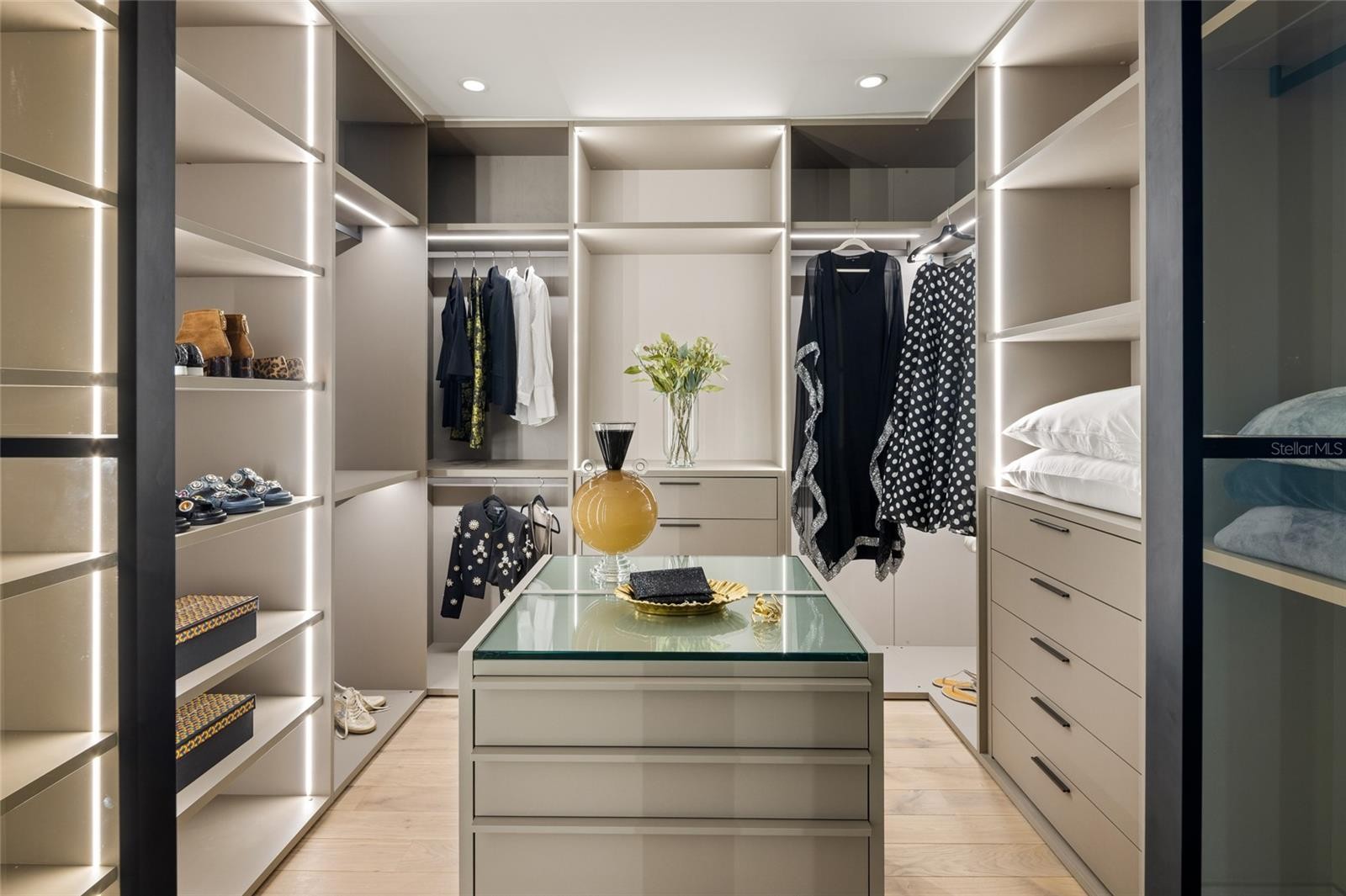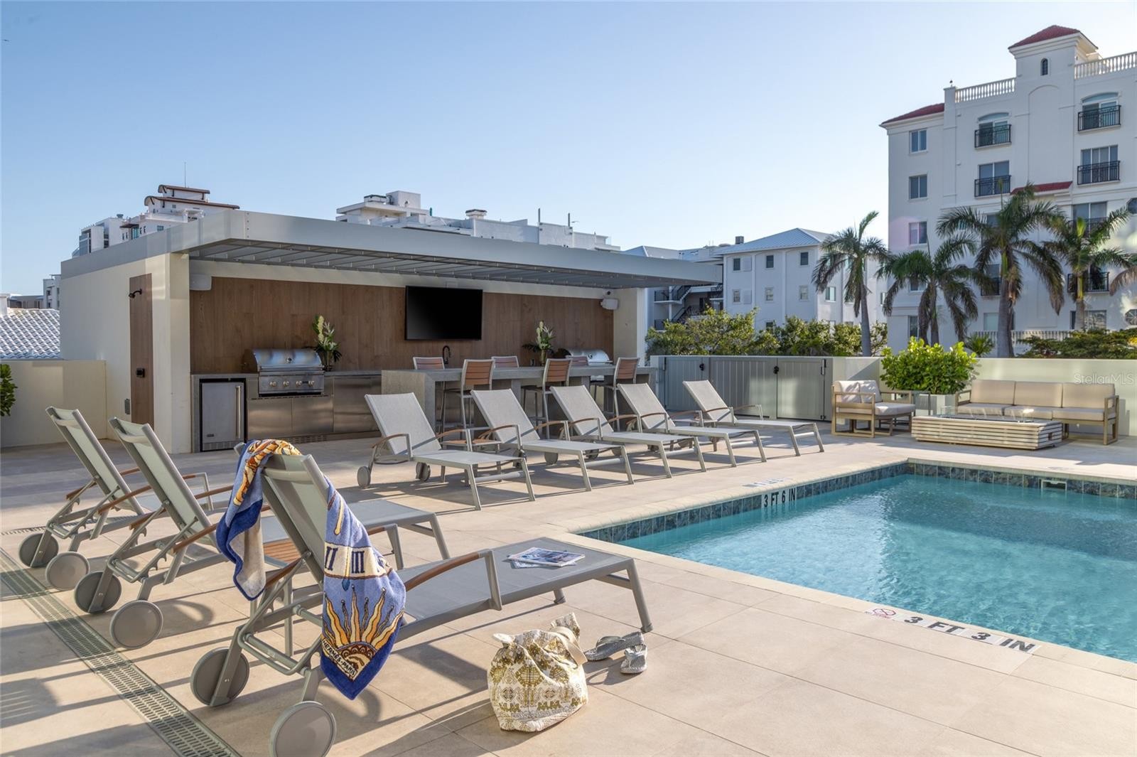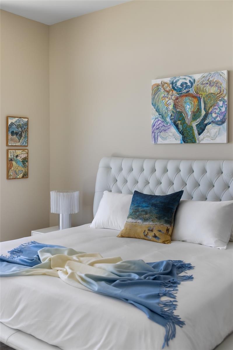 Move-in-ready for annual lease, fully furnished with luxurious Natuzzi Italia furnishings throughout, new construction. Penthouse 702 at The Evolution, where unparalleled views and luxurious living are on Golden Gate Point near downtown Sarasota. Designed by award-winning architect Mark Sultana, principal/founder DSDG, this exquisite four-bedroom, 5.5-bath residence spans 3,460 square feet of interior living space, complemented by 562 square feet of outdoor balconies, for a total of 4,022 square feet. This designer home captures sweeping panoramic views of Sarasota’s marina and Intracoastal Bay waters. From sunrise to sunset, breathtaking eastern-facing views showcase the ever-changing beauty of Sarasota’s waterfront. The home’s interior opens to expansive floor-to-ceiling windows and stacking balcony sliders to seamlessly blend indoor and outdoor spaces, providing exquisite natural light and stunning vistas. Customized, electronic designer shades are featured throughout along with high-end lighting features and fixtures. The open-concept design of this penthouse features collector works of art punctuating an extensive array of Natuzzi Italia hand-crafted Italian furnishings throughout all rooms. The gourmet kitchen, a showpiece of functionality and elegance, includes a 14-foot custom quartz waterfall island with ample space for entertaining or casual dining, while the ITALKRAFT wood cabinetry offers abundant storage to keep the space sleek and organized. Culinary enthusiasts will appreciate the top-of-the-line Sub-Zero and Wolf appliances, including a built-in Wolf coffee station for barista-quality coffee at home. A specially designed walk-in pantry provides additional storage for essentials, ensuring the kitchen remains stylish and practical. The combination of high-end finishes and clever storage solutions makes this kitchen as beautiful as it is functional. A separate full laundry and utilities room enhances practical needs. The expansive, open plan living and dining areas feature exclusive Natuzzi Italia custom, hand-crafted Torsion (limited edition work of art) round dining table that seats eight comfortably. An adjoining custom-crafted library and media viewing area enhance the living room space. The primary, king-bedded suite is designed as a private sanctuary, offering unparalleled water views, an impressive, customized walk-in closet, reclining swivel and desk spaces, and a spa-inspired bath with dual rainfall showers, a soaking tub and double vanities. Three additional bedrooms (one king, two queens), all with en-suite baths, and a media den/home office with additional en-suite bath, complete the 702 penthouse offerings. The Evolution is a boutique community of only 20 residences, offering world-class, resort-style amenities, from a serene lap pool with private cabanas, to an outdoor kitchen with gas grills, a club room, a fitness center, a European-imported sauna, a dog wash station, and a rooftop terrace with additional hot tub/spa and unrivaled sunset views over Sarasota Bay. The community also provides the convenience of a full-time concierge offering a range of personalized services, from managing daily needs to assisting with special requests, ensuring a seamless and luxurious lifestyle. The unit also includes a deeded private two-car garage. Move-in ready, Penthouse 702 delivers the rare opportunity. Schedule your private tour today.
