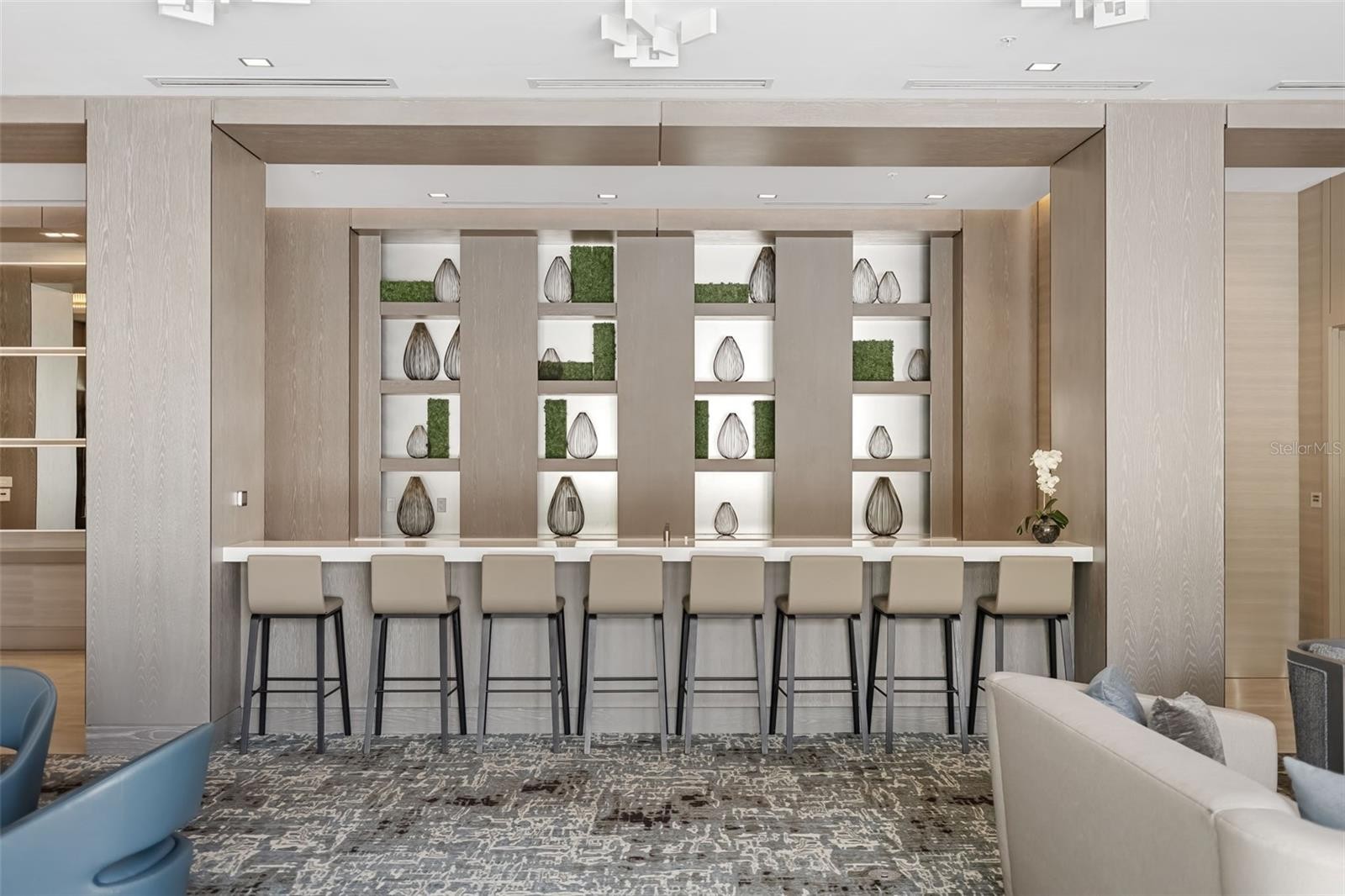 Rare penthouse offering at Mark Sarasota. 111 S Pineapple Ave. #1204 is a one-of-a-kind 12th-floor residence and the largest home in the building, offering 2,845 square feet under air and over 3,600 square feet of total living space including a spacious wraparound covered terrace with uninterrupted views of Sarasota Bay. From the moment you go inside, you’re greeted by 11-foot ceilings, double 8-foot entry doors, and expansive 10-foot impact-rated sliding glass doors that blur the line between indoors and out. Gleaming 24-inch white polished porcelain tile floors run throughout the open-concept interior, where a thoughtfully designed layout integrates the living, dining, and family spaces with a chef-caliber kitchen—complete with high-gloss European cabinetry, quartz countertops, and a suite of premium Jenn-Air stainless steel appliances including a 42-inch built-in refrigerator, convection wall oven, and 36-inch induction cooktop. The primary suite is a private oasis, offering panoramic views, dual walk-in closets by California Closets, and a spa-inspired en-suite bath with double vanities, an oversized walk-in shower, deep soaking tub and sleek Grohe fixtures. Two generous guest suites, each with private baths, custom closets and blackout shades, provide comfort and privacy for visitors or family. Additional interior highlights include a convenient and spacious family room/den, automated roller shades throughout with blackout shades in all bedrooms, a full laundry room with custom cabinetry and Whirlpool HE washer and dryer, water filtration and softener systems for the entire residence, and four deeded garage parking spaces plus a same-floor oversized private storage unit. The wraparound covered terrace is an entertainer’s dream with commanding views of the water and city skyline. Enjoy alfresco dining at the built-in outdoor kitchen, equipped with an electric grill, under-counter refrigerator, stone countertops, and durable exterior cabinetry. Residents of The Mark enjoy exceptional lifestyle amenities including 24-hour concierge service, a resort-style heated saltwater pool and spa, state-of-the-art fitness center with a dedicated spin room, a club room with catering kitchen, fireplace and billiards, as well as outdoor lounging areas with fire pits, grills, and dining spaces—all just steps from Whole Foods, Bayfront Park, shopping, dining, galleries and Sarasota’s renowned cultural venues. This rare penthouse opportunity places you in the heart of downtown Sarasota’s most desirable address, where convenience, comfort and coastal elegance converge.