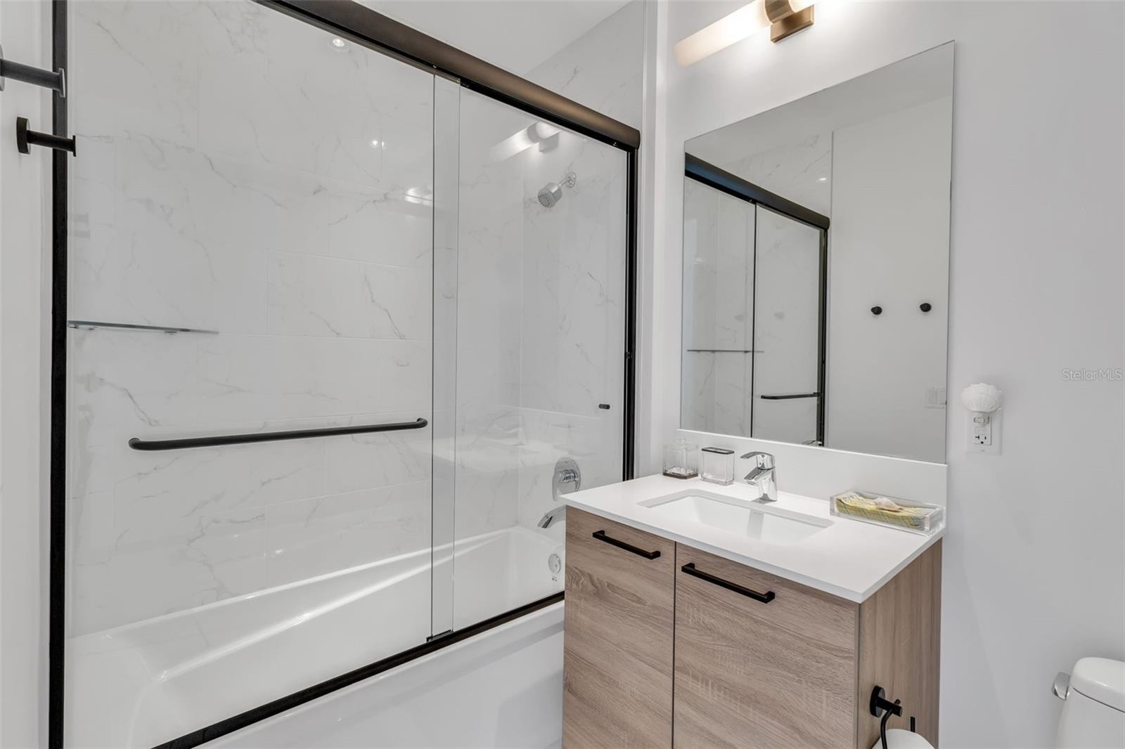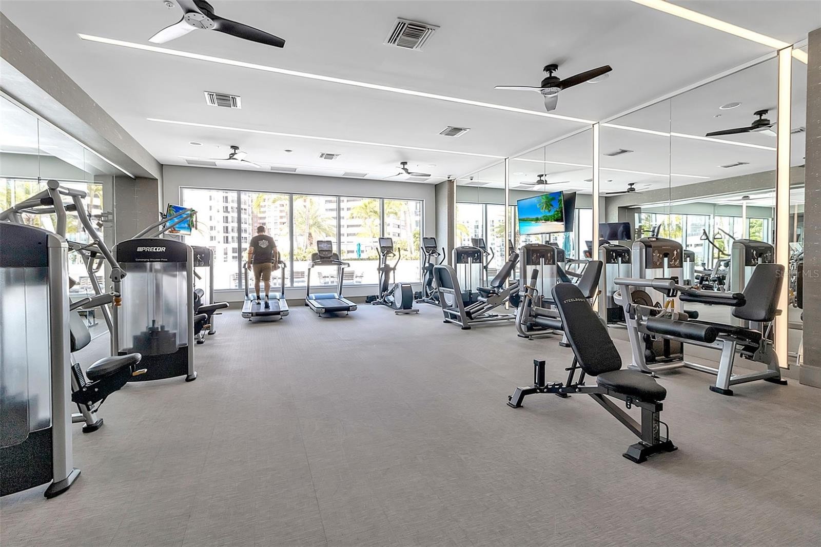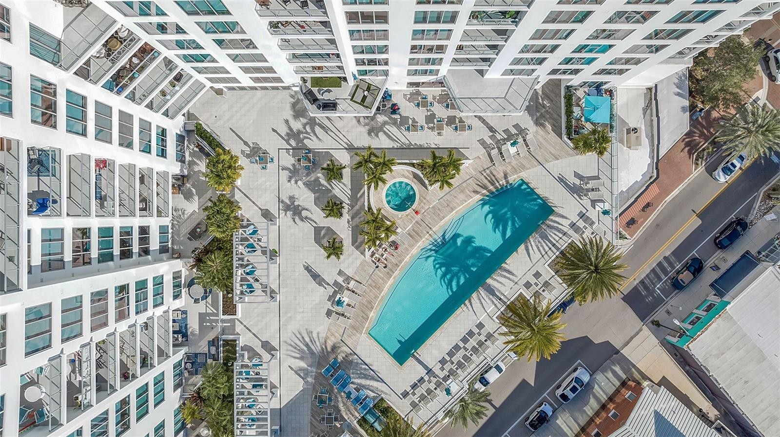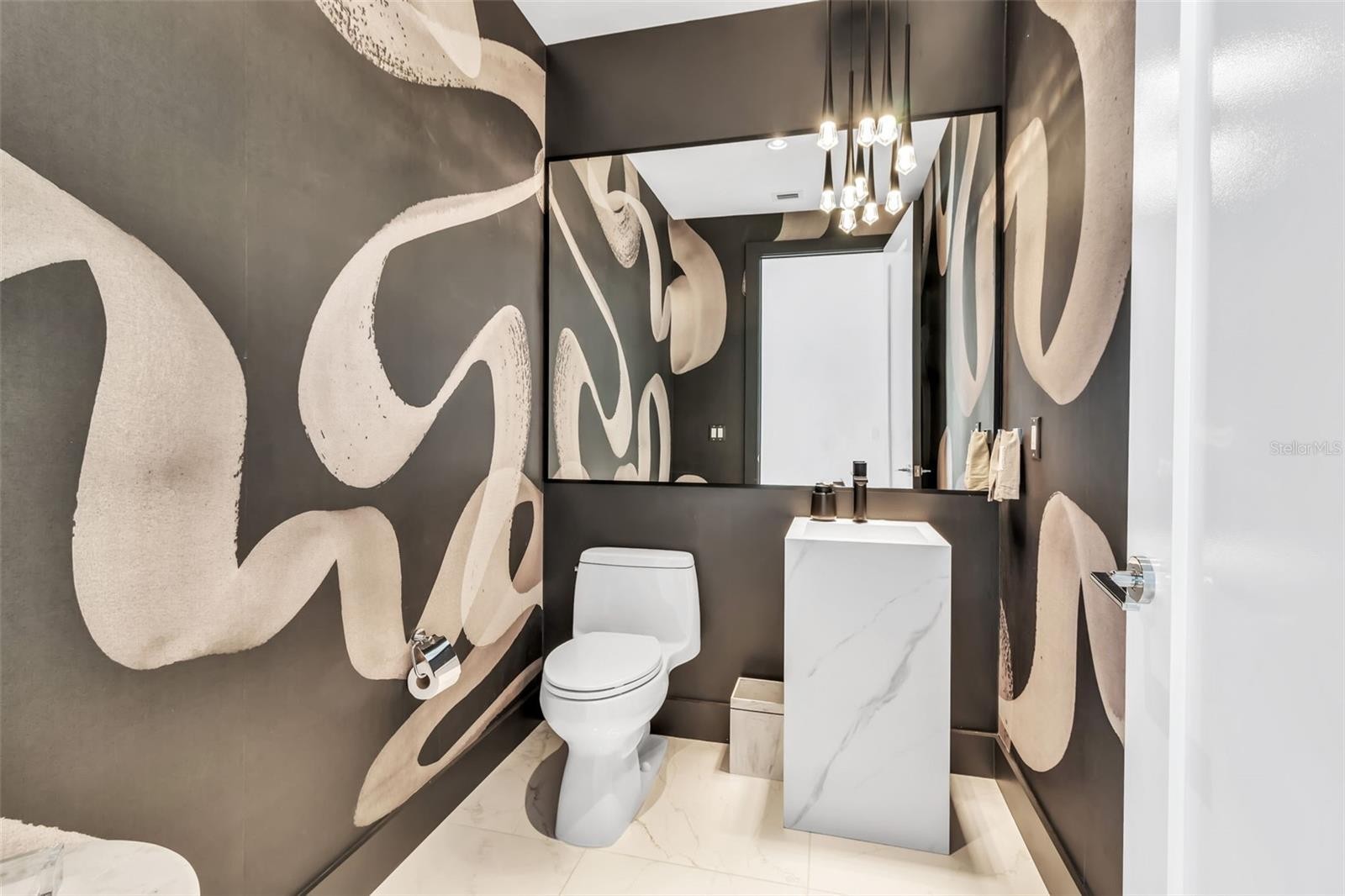 Penthouse level at The Mark Sarasota, featuring a complete cosmetic renovation by the current owners. Enjoy sweeping west-facing views of Sarasota Bay and downtown Sarasota from this refined residence offering 2,485 square feet under air plus 342 square feet of terrace space, for a total of 2,827 square feet. The thoughtfully designed split-bedroom floor plan includes three ensuite bedrooms, a den/office, three full baths, and one-half bath, with a private primary suite wing. Timeless in design, the gourmet kitchen is appointed with Nolte European cabinetry, JennAir stainless steel appliances, upgraded induction range, quartz countertops with a new 6 cm waterfall island, and a modern tile backsplash—ideal for entertaining. Open-concept living and dining areas feature soaring 11-foot ceilings, floor-to-ceiling glass, and large-format porcelain tile flooring, creating a bright, architecturally refined interior. An expansive west-facing terrace extends the living space outdoors with a built-in grill and beverage refrigerator, perfect for sunset dining. The primary suite is a luxurious retreat with two walk-in closets and a spa-inspired bath offering an oversized double vanity, quartz countertops, walk-in shower, and soaking tub. Two guest ensuites include generous closets, while the den off the foyer serves as an ideal home office. New Legno European white oak oil-waxed floors enhance all bedrooms. Additional highlights include all-new lighting fixtures throughout, new full-length mirrors in all bedrooms, new bathroom glass shelving and hardware, a large laundry room with utility sink and new floor to ceiling custom cabinetry, a new smart Lutron system controlling lighting and shades, and a new custom wet bar with Sub-Zero beverage drawers and a Scotsman ice maker. Enjoy abundant natural light and glowing Sarasota Bay sunsets overlooking the tropical pool deck. Two deeded parking spaces, with EV charging, plus a climate-controlled storage unit just steps from the residence. The fifth-floor amenity level offers a resort-style heated saltwater pool and spa, fire pit, lounge areas, grilling pavilion, bar, club room with catering kitchen, billiards, newsroom, and a premier fitness center with yoga and spin studio. Located in the heart of downtown Sarasota, enjoy walkable access to top rated restaurants, the Saturday Farmers Market, galleries, salons, cultural venues, Marina Jack, and Lido Beach just over the Ringling Bridge. With 24-hour concierge service, secure access, on-site management, and pet-friendly living, this residence delivers effortless luxury and coastal sophistication at one of Sarasota’s most coveted addresses.