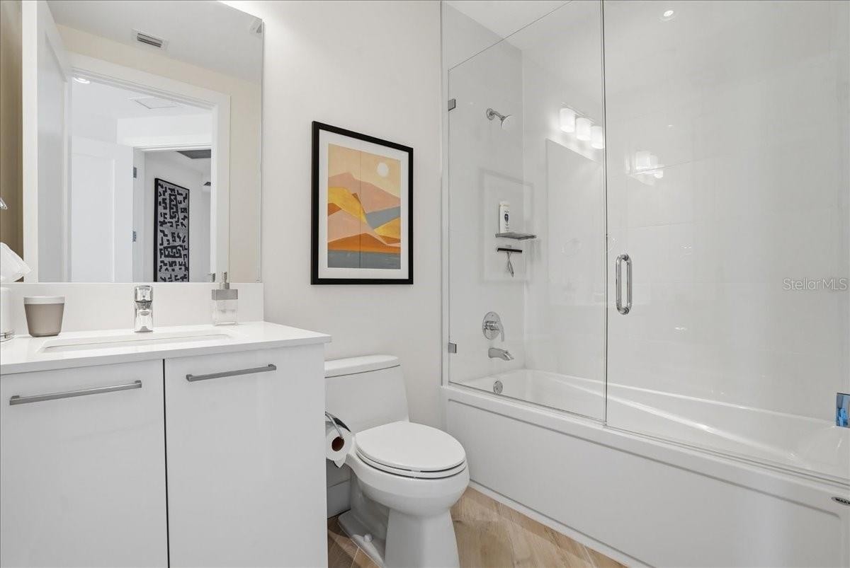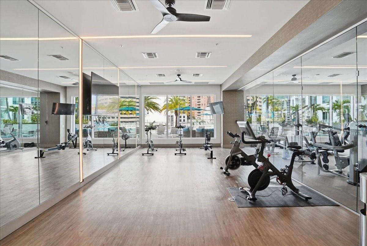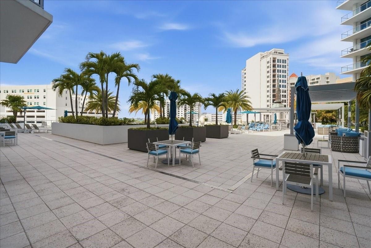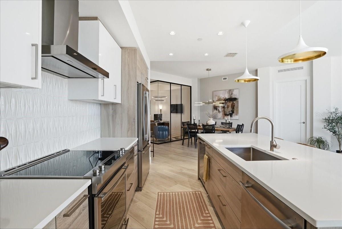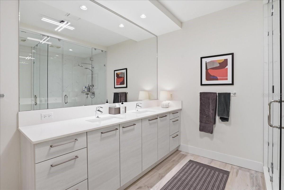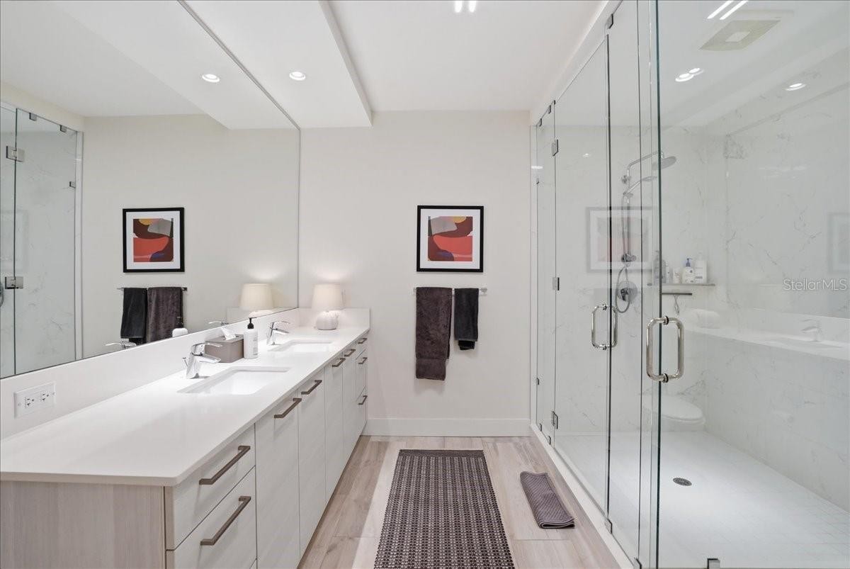 Design forward luxury at The Mark, where elevated living meets refined coastal elegance. This impeccably maintained End unit residence features three-bedroom, three and a half bath with a private office and showcases a seamless blend of sophistication and comfort, all framed by captivating Sarasota Bay views. From the moment you enter, walls of glass invite natural light to pour into the expansive living and dining spaces, creating an airy ambiance with soaring 10-foot ceilings. Breathtaking panoramic views of Sarasota's vibrant skyline and bay vistas from the living areas and bedrooms. Upscale custom remote-controlled window treatments allow you soft daylight with privacy when wanted. The open-concept design flows effortlessly to a generously sized balcony—accessible from both the family room and the primary retreat—offering a serene setting to enjoy morning sunrises or evening sunsets over the Sarasota Bay. A standout feature, the glass-enclosed office provides the perfect balance of privacy and connectivity—ideal for working from home while remaining visually engaged with the main living areas. The chef’s kitchen is both striking and functional, appointed with sophisticated European-style 2-tone cabinetry with soft close drawers, quartz countertops, and a full suite of Jenn-Air stainless appliances. Clean lines and a light, modern palette, and porcelain tile throughout enhance the home’s timeless appeal. The primary suite is a true retreat, featuring private balcony access, two custom walk-in closets with built-ins, and a spa-inspired bath with dual vanities, a frameless glass shower, and refined finishes throughout. Two additional bedrooms with en-suite bathrooms provide comfort and privacy for guests. A stylishly appointed powder bath is ideal for all of your guests and family. Every detail has been thoughtfully curated, from designer lighting to high-quality materials, delivering a polished and cohesive aesthetic throughout the residence. The residence includes 2 premium 3rd floor adjacent parking spaces in the secured parking garage and a storage unit within the building on the same level as unit. Quick access just 2 floors down to the amazing 5th floor amenities Residents of The Mark enjoy world-class amenities, including a large pool deck area, 65 foot resort-style heated saltwater pool and spa, cabana areas, fire pit and lounge area, outdoor grills, state-of-the-art fitness center, club lounge with a fireplace, bar, billiards, catering kitchen, and newsroom cafe, and 24-hour concierge services—all just steps from Sarasota’s vibrant dining, shopping, and cultural scene. A rare opportunity to own a sophisticated bay-view residence in the heart of downtown Sarasota