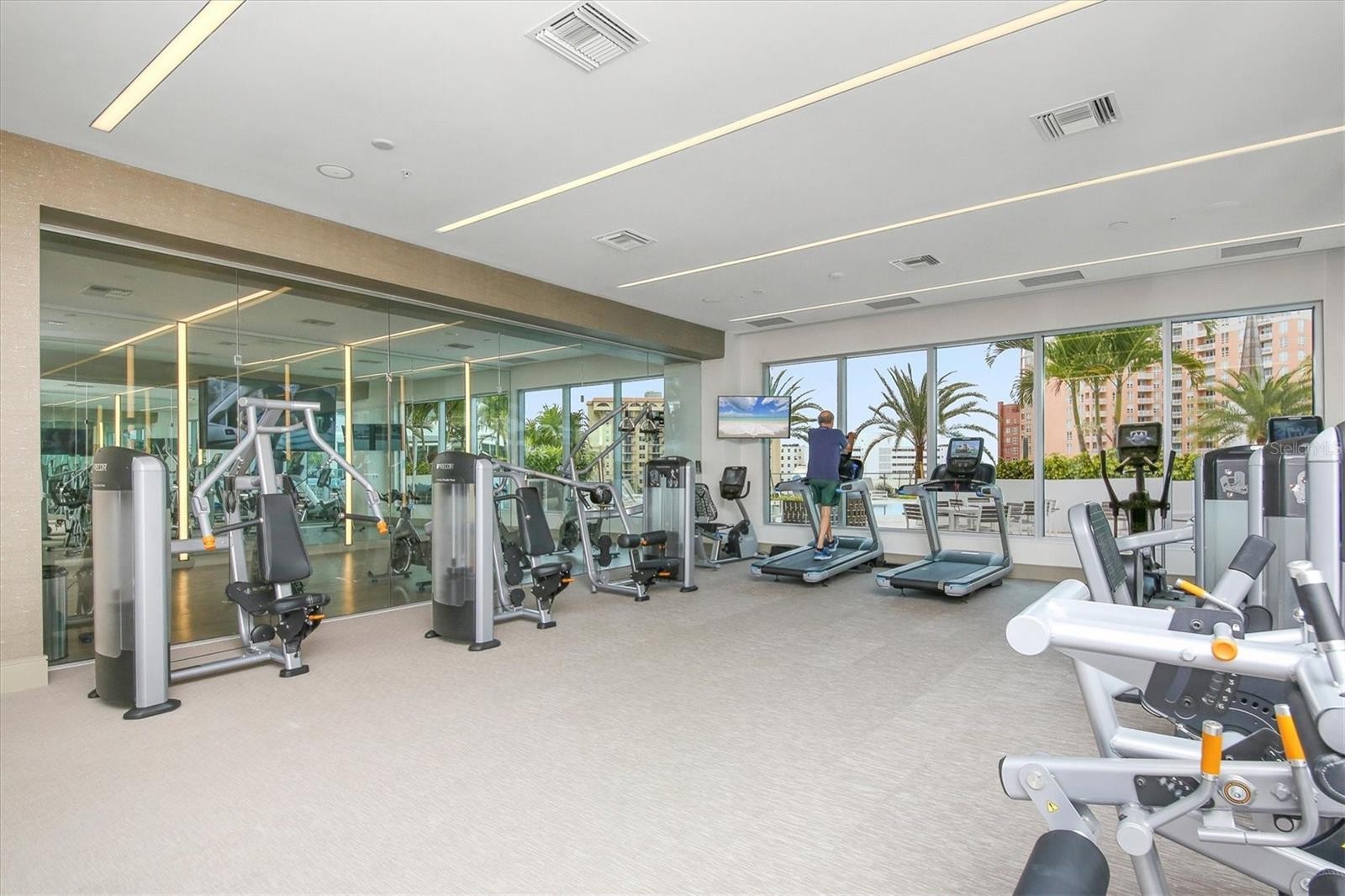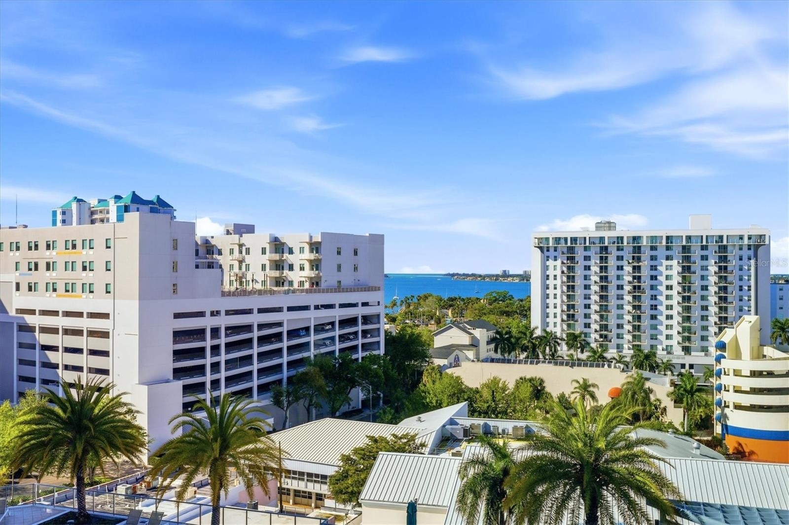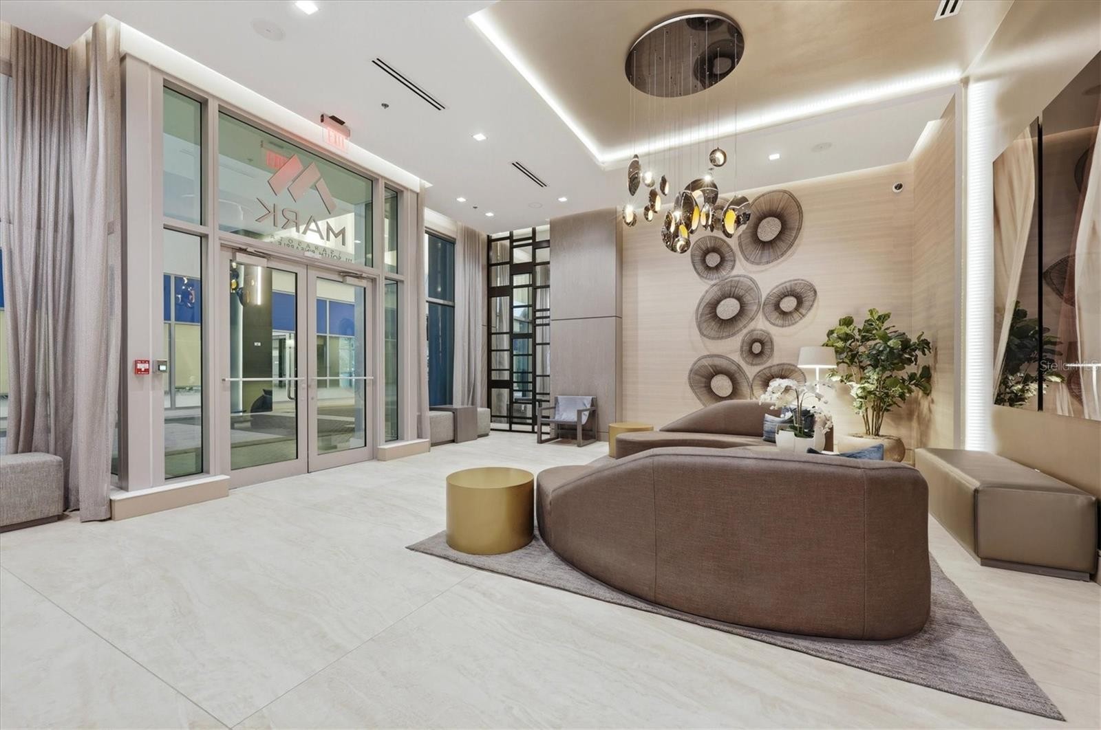 Ideal west-facing 8th floor retreat with views of the beautiful resort style pool and a partial view of the bay. The open concept layout with floor-to-ceiling glass creates a bright and light filled space. While the addition of screen sliders in the great room and guest suite allow gentle bay breezes to flow through. The split-bedroom floor plan gives privacy, complemented by a separate den featuring a built-in closet and custom lighting, perfect for a home office or separate living space. Functional perks include an in unit laundry room with built-in cabinetry, a convenient powder room adjacent to the kitchen, a climate-controlled storage unit, and TWO TANDEM PARKING SPACES in the secure garage. Mark Sarasota offers a luxurious, walkable downtown lifestyle with an expansive fifth floor amenity deck. Residents enjoy a heated saltwater infinity lap pool and spa, private cabanas, fire pits, and an outdoor kitchen. Inside, the offerings continue with a fireplace lounge, a premier fitness center with yoga and spin studios, billiards, and a club room with a catering bar. Step outside to find the city's best restaurants, the Farmer's Market, and cultural venues at your doorstep, with Marina Jack and Lido Beach just across the Ringling Bridge. Offering 24-hour concierge service, secure access, and on-site management, this pet-friendly residence defines vibrant urban living at one of Sarasota's most distinguished addresses.