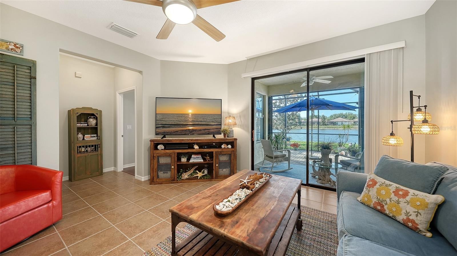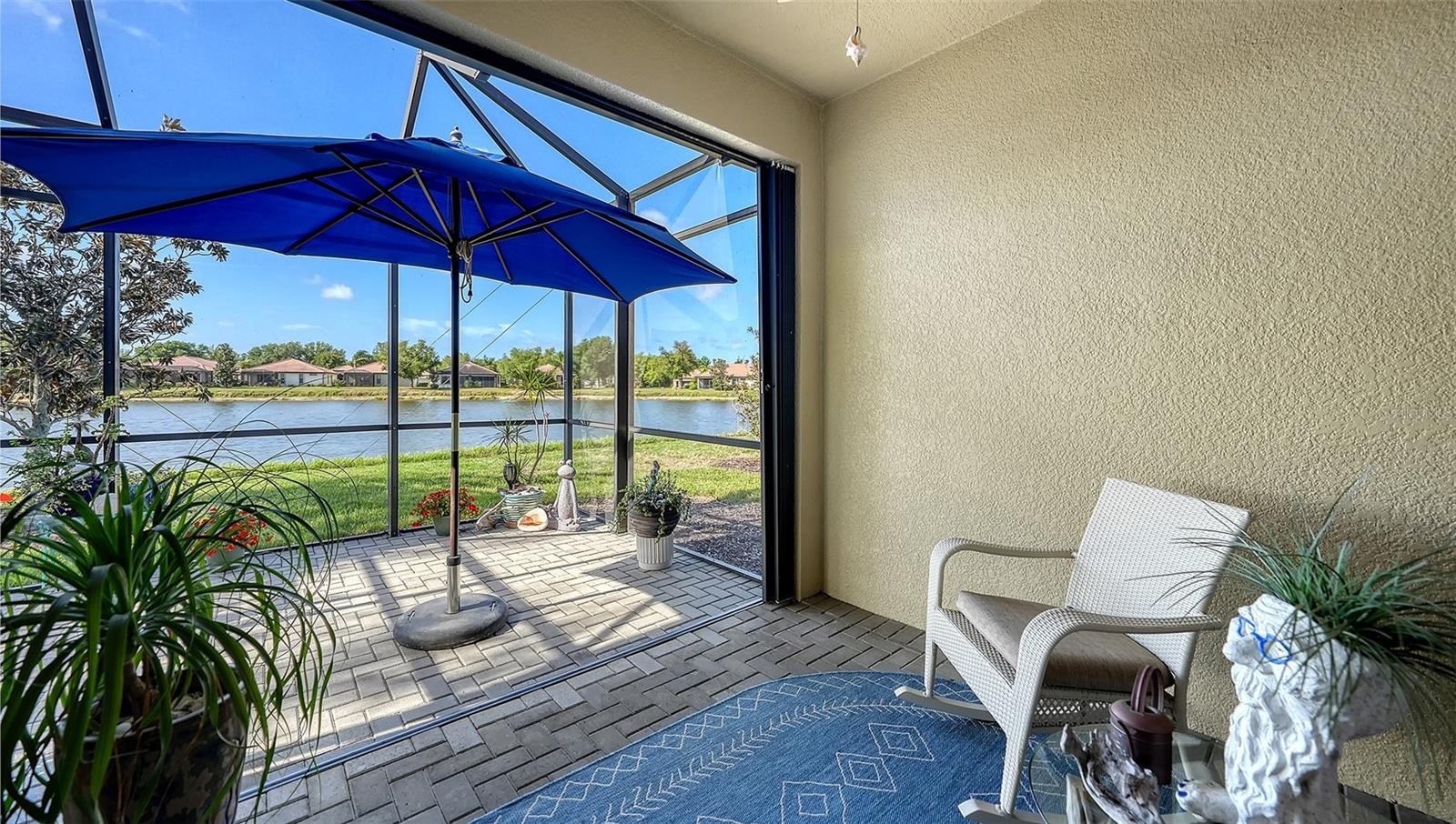 Peaceful, easy living in the resort-style community of Venetian Falls. Beautifully maintained 2-bed + den attached villa with sparkling LAKE views. An inviting open floorplan designed for comfort and effortless living. Tile flooring throughout the main living areas and engineered hardwood in the bedrooms. Stylish plantation shutters and easy to use accordion hurricane shutters. Two-car attached garage with epoxy-coated flooring, workbench, storage cabinets plus drop down shelving. Stone paver driveway, walkway and lanai. Well-appointed kitchen with granite countertops, breakfast bar, solid wood cabinetry, pantry closet and Whirlpool stainless steel appliances. Versatile den with French doors provides space for a home office, media room, or additional guest accommodations. Primary suite with large walk-in closet and ensuite bath featuring dual vanity and walk-in shower. Both bathrooms have Corian countertops. in-unit LG washer and dryer. Extended lanai with serene lake views and enhanced with no-see-um screens, ideal for year-round enjoyment. You will be love watching the birds and wildlife frolicking around the lake. Venetian Falls offers an exceptional lifestyle with a 16,000 SF clubhouse featuring a grand ballroom, fitness center, billiards room, craft and card rooms, internet café, and meeting spaces. Residents enjoy a heated lap pool and spa, resistance walking pool, bocce ball courts, a 9-hole putting green, and scenic walking and biking paths throughout the community. A full-time activity director ensures a vibrant social calendar, while on-site management provides added convenience. The reasonable HOA fee includes lawn maintenance, trimming, mulching, irrigation, cable TV, internet, exterior paint scheduling, and roof power washing—allowing for truly low-maintenance living with reasonable fees. Ideally located just minutes from Wellen Park and historic downtown Venice for shopping, dining, entertainment, everyday conveniences, and the beautiful Gulf beaches.
