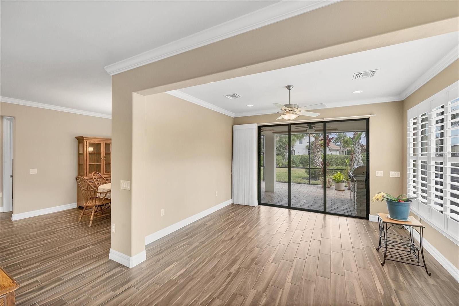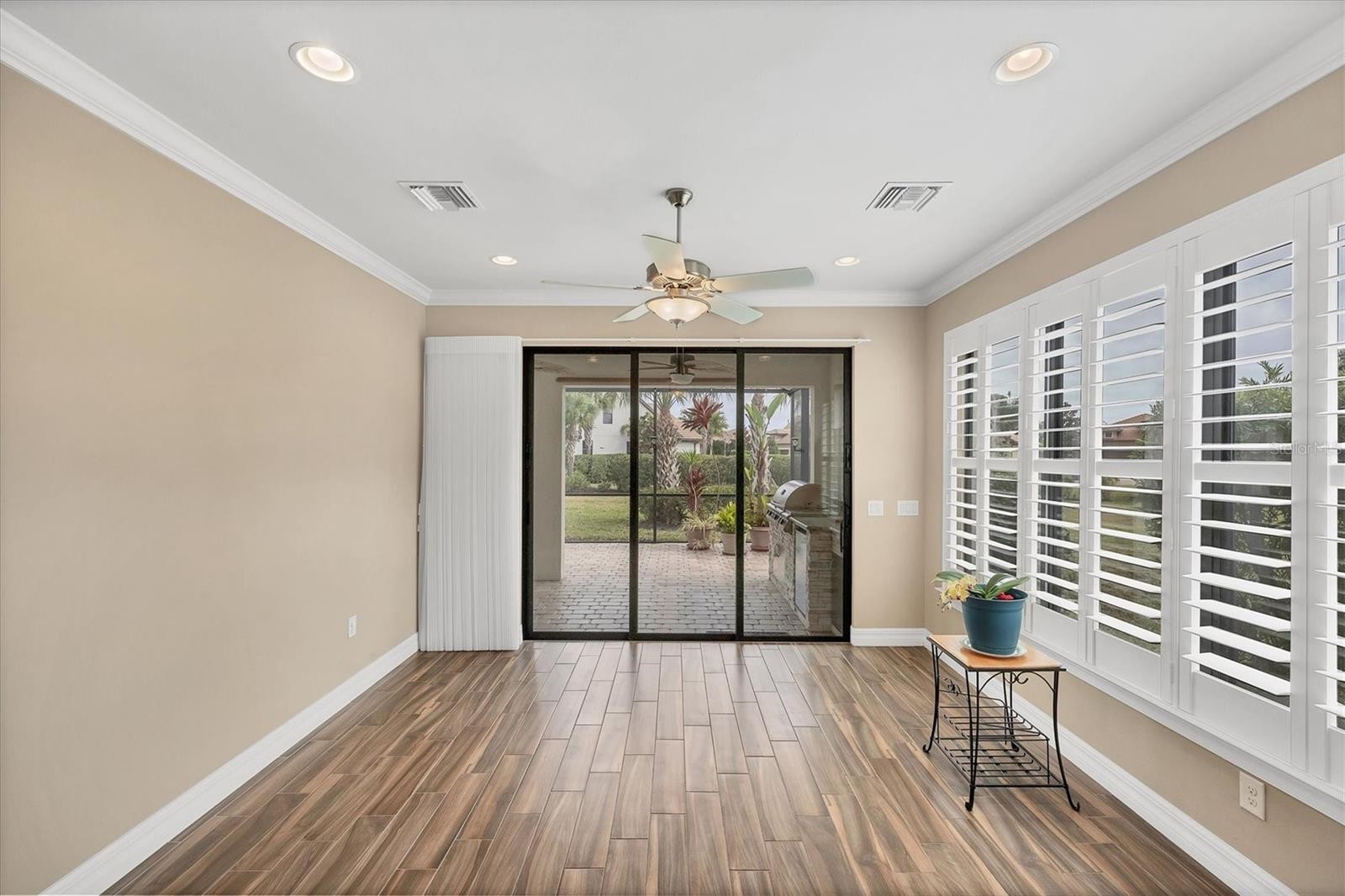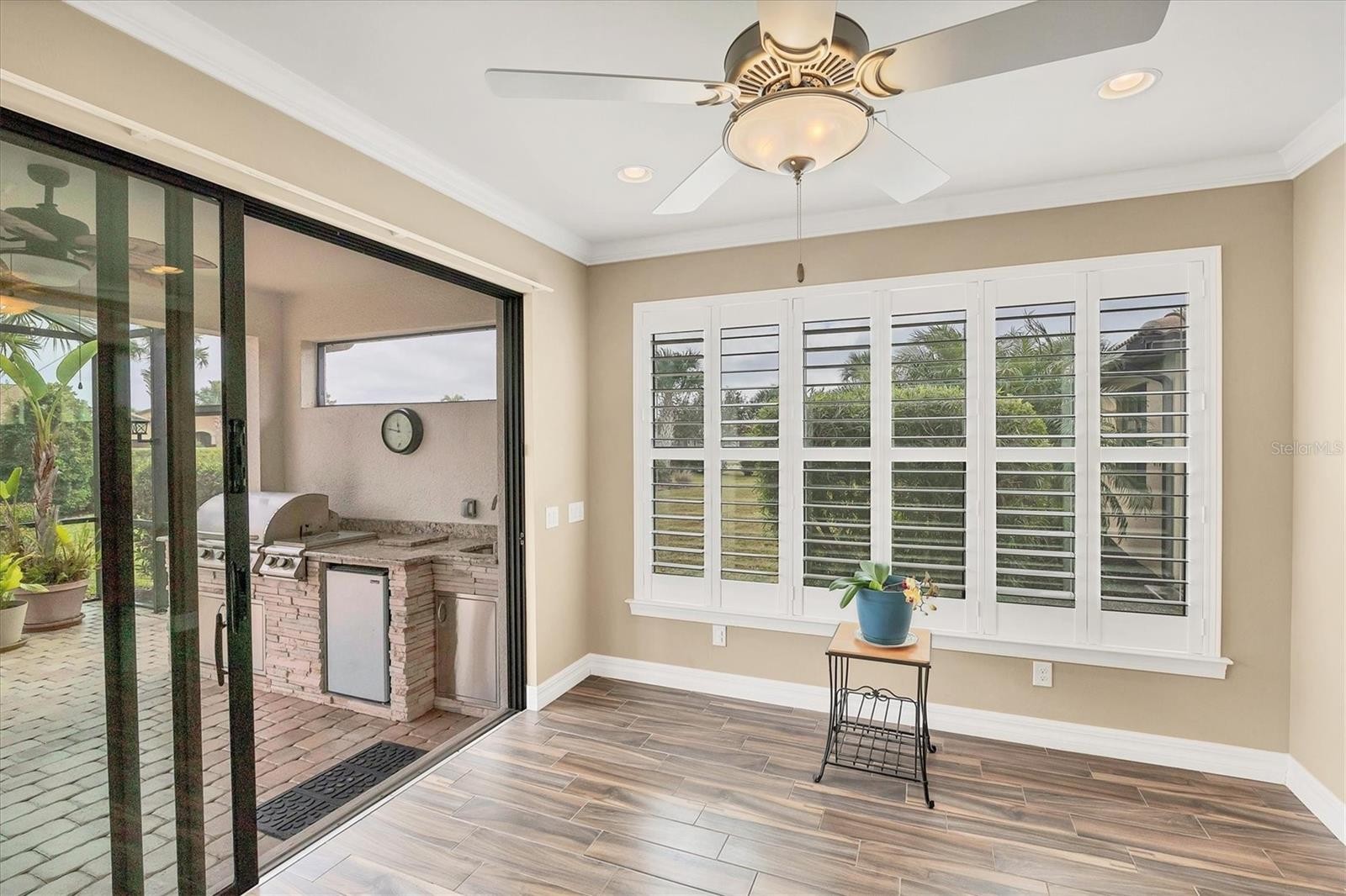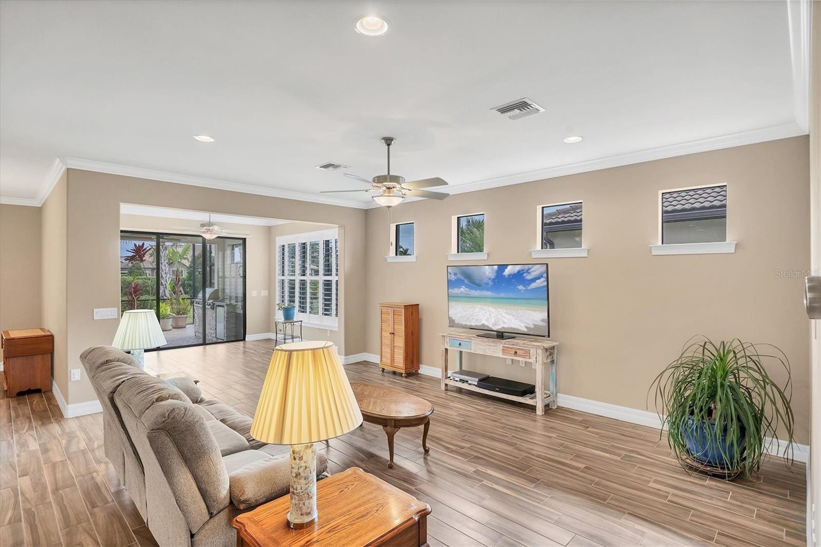WOW!! PUT THIS HOME ON YOUR LIST TO SEE! Popular SUMMERWOOD floor plan with all the bells and whistles. OVER $105,000 in upgrade options were put in to this home. PLUS many additional after market upgrades. Sitting on a pretty lot surrounded by Tropical landscaping. Change in front style adding the stones upgrade done after market. Pavered driveway and sidewalk. Leaded Glass front door. Open floor plan with kitchen, dining, and living room provides a great functionality of space while having a casual elegance. Windows on the South side of home create a nice natural light space letting the sunshine flow through the home. Sunroom was added extending the indoor living space. Step out onto your MARVELOUS and PRIVATE EXTENDED LANAI. Lots of space for all of your outdoor activities. OUTDOOR KITCHEN great for entertaining or casual grilling. Tons of open area yard space for your enjoyment MOUNTED TV stays. Back inside, the GOURMET kitchen offers QUARTZ countertops, STAINLESS STEEL appliances ( all replaced in the last couple of years, with a brand new stove just days ago), TILE BACK SPLASH, 42" cabinets, pendant lighting, extra recessed lights, and under cabinet lighting. EXTENDED ISLAND with finished ends for extra storage. All cabinets are Dove Tailed and SOFT CLOSE. PLANK STYLE TILE FLOORING throughout main areas and den. SEPARATE DEN with FRENCH DOORS offers a versatile space for many options from office to over flow sleeping. SPACIOUS master bedroom with en suite bathroom. Bathroom includes dual sinks, walk in shower, Roman tub, and large walk in closet. CUSTOM mirrors in bathrooms were hung with extra support for heavy mirrors. Guest bedrooms at other end of home for privacy. CROWN MOLDING, PLANTATION SHUTTERS, and 8FT DOORWAYS ADD TO THE AMBIANCE OF THE HOME. The upgrades don't stop with the living space. Garage with EXTENDED 4FT OPTION and an EV CHARGER both inside and outside. SOLAR PANELS ON ROOF for using clean energy. Owners electric bill is next to nothing. Hurricane Shutters. JOIN THE COMMUNITY! You won't regret it . This Quaint community has a PRIME LOCATION in the HEART OF PALMER RANCH, the most exceptional area in Sarasota. Minutes to WORLD FAMOUS SIESTA KEY. Shopping is right around the corner. More of a Boater? Minutes to NOKOMIS BEACH and it's Boat Launch. Tons of activities from restaurants to theaters to kayaking are waiting for you. Close to both 41 and 75. However, there are plenty of things to do right here in the neighborhood. RESORT STYLE amenities at HOME include Clubhouse, swimming pool and spa, tennis courts, pickleball courts, fitness center, BAREFOOT BAR, and Fire Pit. BBQ area for grilling. ALL LOCATED ON YOUR DOORSTEP! Come see this SPECTACULAR home and start living YOUR FLORIDA LIFE STYLE!! VETERANS- assumable loan with 2.25% interest- for eligible Veterans only. NEW PHOTOS COMING SOON.