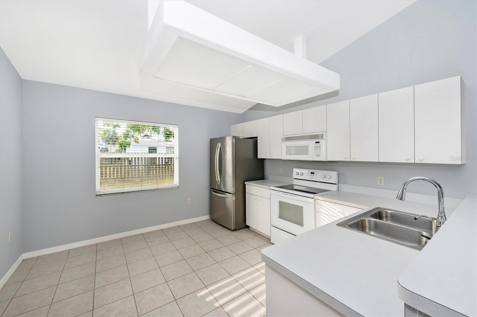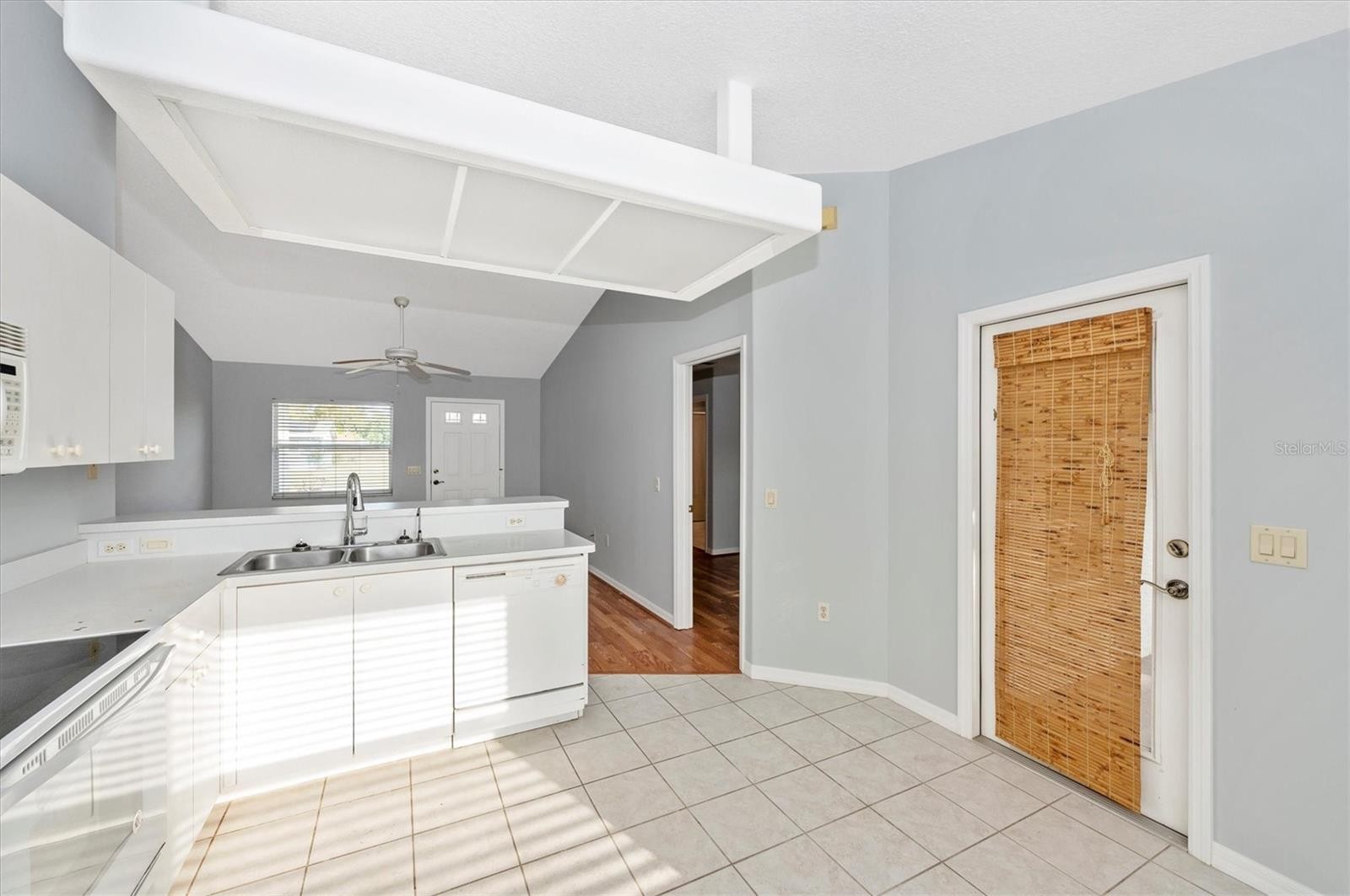 One or more photo(s) has been virtually staged. Welcome home to this adorable and well-maintained 2-bedroom, 2-full-bath split floor plan offering an inviting open layout and thoughtful updates throughout. The main living area features a spacious living room open to the eat-in kitchen, highlighted by a dramatic cathedral ceiling that enhances the sense of space and fills the home with natural light. Laminate flooring flows through the living room and bedrooms, while neutral, durable ceramic tile accents the kitchen and baths. The entire interior has been freshly painted, making this home truly move-in ready. A NEW ROOF provides added peace of mind. The primary bathroom has been updated and offers handicap-accessible features if desired. The kitchen opens directly to a screened-in lanai, perfect for enjoying Florida living year-round. Ideally located near shopping and restaurants, just 13 minutes to charming downtown Venice and approximately 15 minutes to Venice Beach. This home is a wonderful blend of comfort, convenience, and easy living.