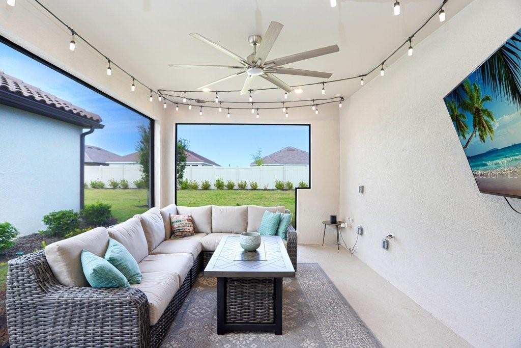 NO YARD MAINTENANCE & BETTER than NEW Construction! This newly built home is full of upgrades! The lawn care & landscaping maintenance as well as cable TV & internet are ALL INCLUDED in the HOA!! This home features 2 bedrooms, plus a large den/office that could be the perfect 3rd bedroom or hobby/craft space. As you walk into this home you will see the OVERSIZED, OPEN floorplan that is perfect for entertaining as well as daily living. High ceilings, an abundance of natural light, and beautiful tile flooring throughout are sure to catch your attention. This kitchen is EVERY COOK'S DREAM! The MASSIVE (approx) 7.5'x5' center island is the showpiece of the kitchen! Stainless steel appliances including, built in oven & microwave & walk in pantry add to the appeal. The primary bedroom suite has a large walk-in closet, bathroom with separate vanities, large shower and separate water closet. As you walk out the large sliders to the screen enclosed lanai you will realize this is the perfect spot for your morning coffee or your evening dinner. All of this is an AMAZING neighborhood with 2 pools, a clubhouse, fitness center, pool tables, tennis, parks and much more all while being conveniently located to I75 and I275 to enjoy the beaches, shopping, restaurants and all that Central Florida has to offer!