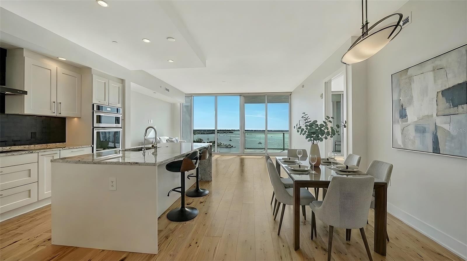 Some pictures are virtually staged. Exquisite water views from this 15th floor unit at The Vue! Ready for immediate occupancy, come and enjoy this vibrant lifestyle that downtown Sarasota has to offer. This coveted floor plan with southern exposure features floor-to-ceiling impact glass, beautiful wood floors throughout, 2 en-suite bedrooms, an office/den or a 3rd bedroom, an extra powder room, and a large laundry room. The elevator opens directly into your private foyer. As you enter, you will be amazed by the gorgeous views of Sarasota Bay, the marina, the Ringling bridge, and the Gulf of Mexico. Admire the spectacular sunsets every night from the spacious balcony that is accessible from the living room and the primary bedroom. Several great finishes include a gourmet kitchen with high-end stainless-steel appliances, granite countertops, induction cooktop, European white cabinetry, beautiful backsplash, a large island with extra sitting, and lots of storage. The primary bedroom provides a large customized walk-in closet and a second double closet. The primary bath has 2 sinks, a water closet, and a large walk-in shower. The guest suite features a bathroom with a soaking tub & shower. 2 parking spaces, and a climate control storage are included. The residents enjoy 24-hour concierge service, exclusive amenities including valet parking, sparkling lap pool & spa, an outdoor kitchen with 2 gas grills and bar, fitness center, a gorgeous club room, and a dog park with grooming station. Surrounded by restaurants, shops, theaters, the Ritz Carlton, the Westin Hotel, and the bayfront, makes The Vue the finest place to live downtown Sarasota.