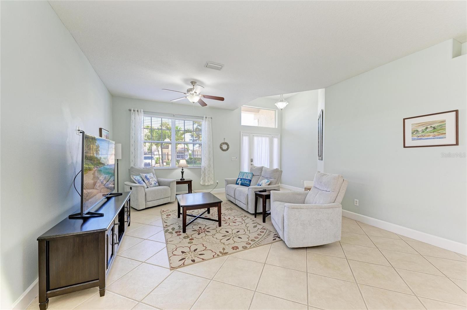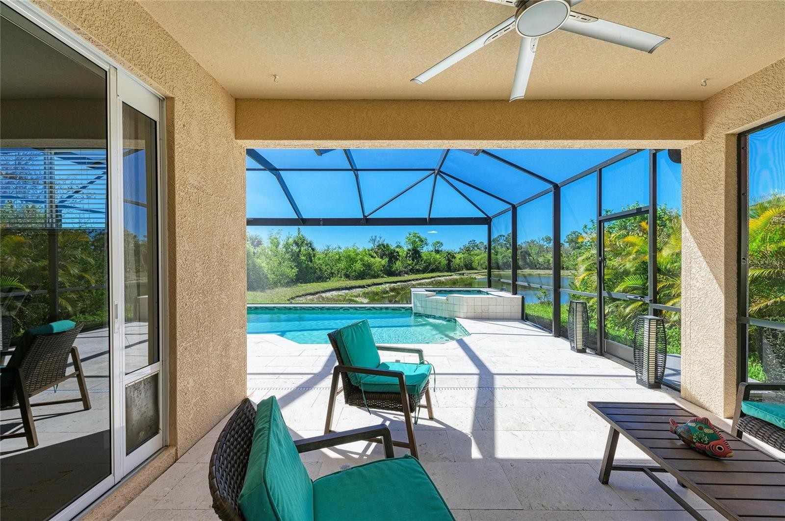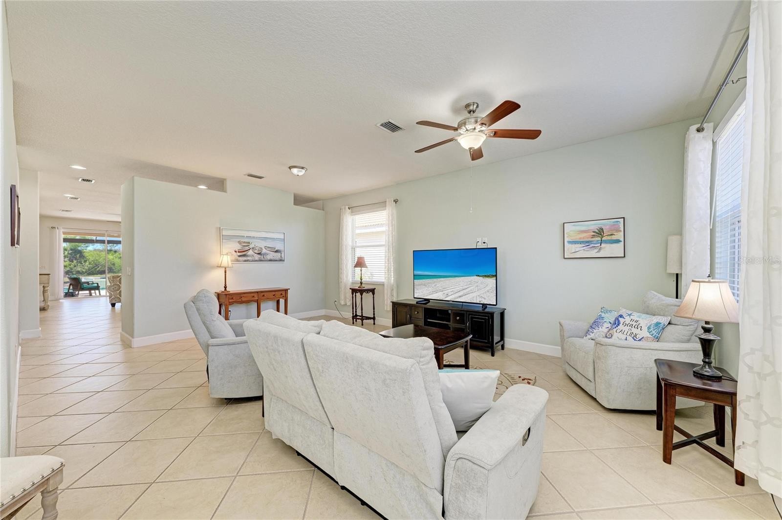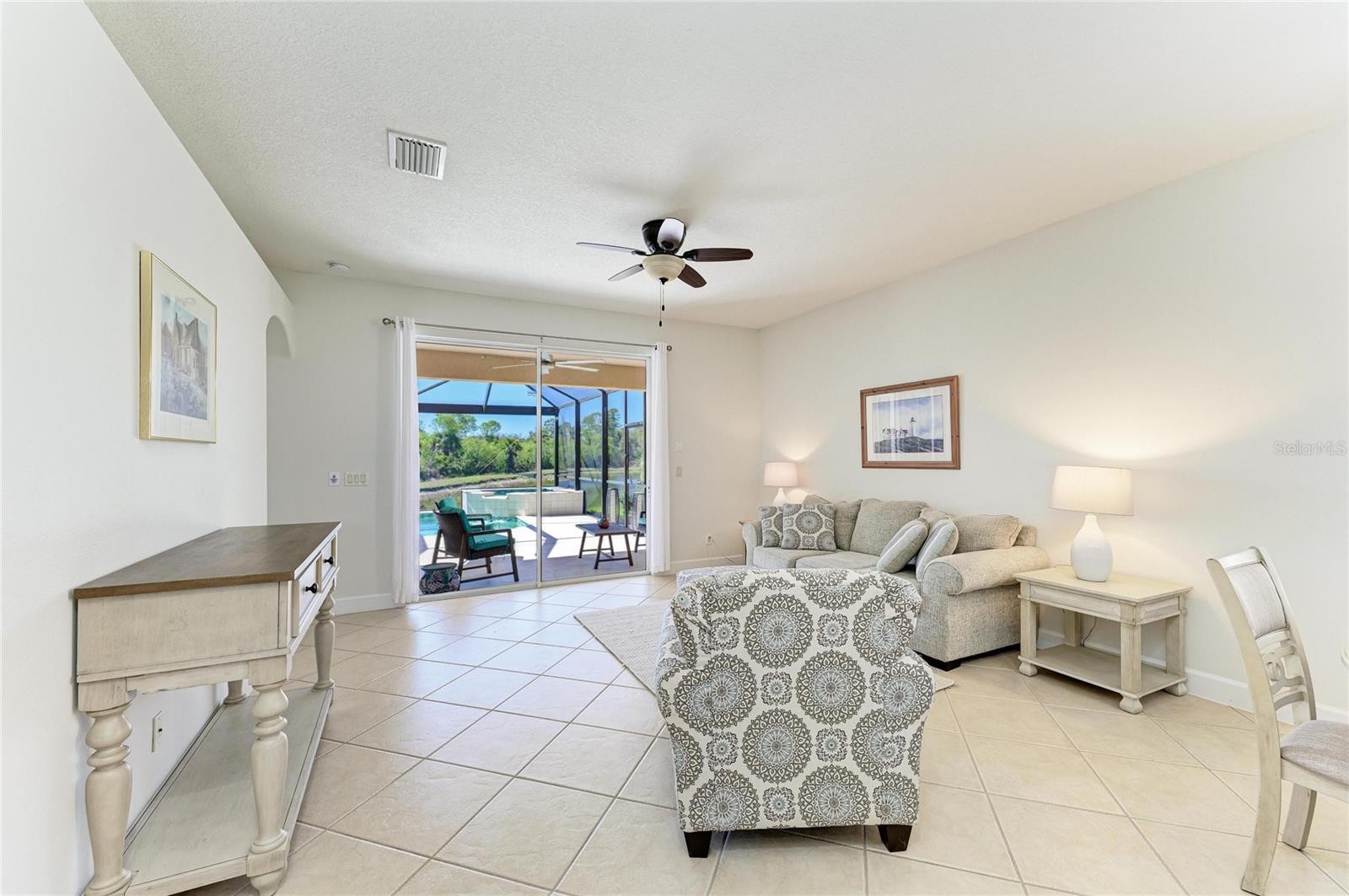 Great pool home in Stoneybrook! This well-maintained residence features 3 bedrooms, 2 bathrooms, and two spacious living areas, offering plenty of room to relax and entertain. Situated on a premium water and preserve lot, the home provides exceptional privacy along with serene views of nature and wildlife. The newer heated saltwater pool and spa create the perfect setting to unwind—whether you're enjoying peaceful mornings or beautiful sunset evenings. Picture cage with travertine tile creates the ultimate outdoor living space. UPDATES: HW HEATER 2025, ROOF 2024, HVAC 2022, POOL 2022, Water OSMOSIS System. Upon entry, you’re welcomed by a bright living and dining room. The kitchen is centrally located and overlooks a second living area, all with views of the backyard oasis. The split floor plan offers two guest bedrooms and a full bath on one side of the home for added privacy. The primary suite is thoughtfully designed with a versatile bonus space—ideal for a home office, fitness area, or nursery. The en-suite bathroom features dual vanities, a soaking tub, walk-in shower, and a generously sized walk-in closet. The kitchen is spacious and opened to the dining room/living room with views of the pool and private water view. There is a small desk built into the kitchen. Located in the gated community of Stoneybrook, residents enjoy a wide array of amenities including a resort-style pool, clubhouse, movie room, fitness center, basketball courts, tennis and pickleball courts, hockey rink, and sand volleyball court.