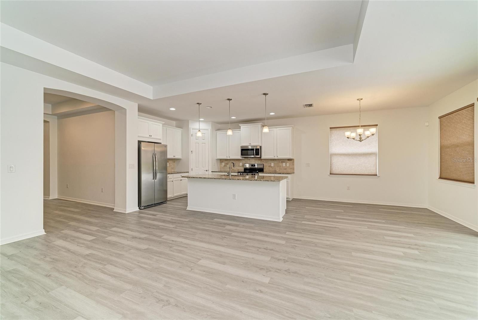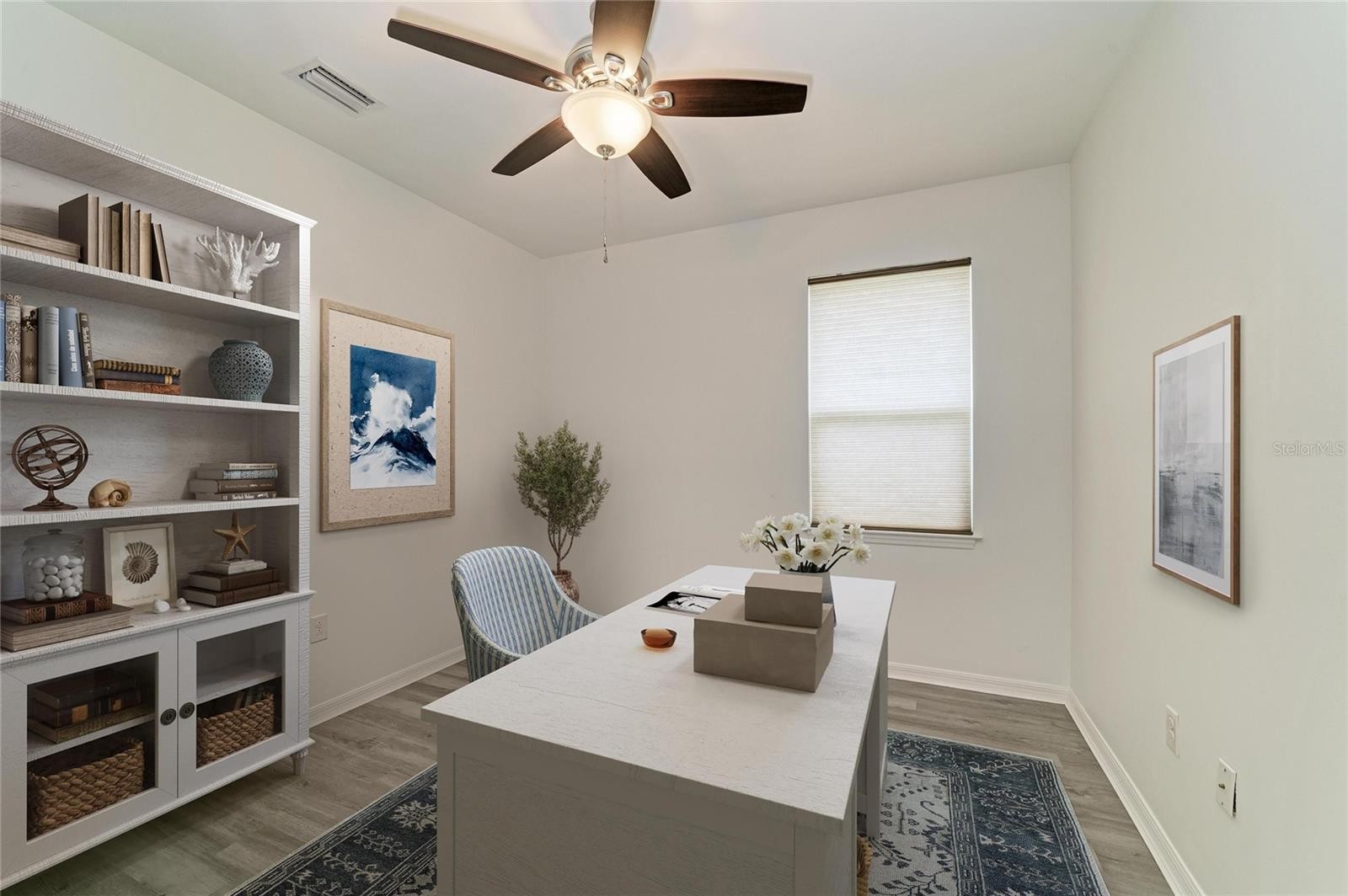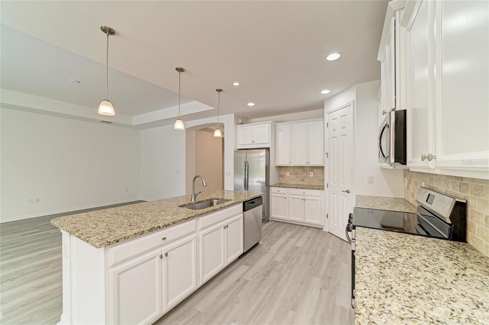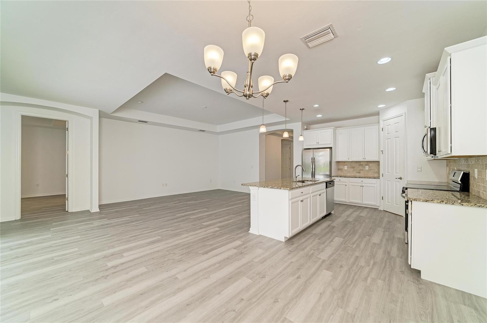 Move-in ready in the gated community of Caribbean Village, this residence delivers a relaxed Florida lifestyle with no CDD fees and a low HOA fee that includes a clubhouse, fitness center, resort-style pool and grounds maintenance. Designed for everyday living and entertaining, the open-concept floor plan features high ceilings and seamless flow throughout. The kitchen overlooks the main living area and offers a large island, pantry, abundant cabinetry, new stainless-steel appliances, and generous counter space. Recent updates include all-new LVT flooring, fresh interior paint and power blinds throughout. The home is also accessible, featuring two wheelchair ramps and multiple grab bars for added convenience and functionality. The primary suite serves as a comfortable retreat with dual walk-in closets and a private bath featuring a double vanity, soaking tub and separate walk-in shower with shower seat. Two additional bedrooms, a second full bath, and a den/office with French doors provide flexibility for guests or work-from-home needs. Hurricane shutters, a tile roof and a two-car garage complete the home. A standout feature is the extended 28-by-34-foot clear-panel screened lanai, offering tranquil pond views and ample space to add a pool, creating a setting for outdoor living and entertaining. Ideally with easy access to Interstate 75, this home is just minutes from downtown Venice, Gulf beaches, and Wellen Park, home to dining, shopping, community events and the Atlanta Braves spring training ballpark. A well-positioned opportunity combining comfort, accessibility and best of Florida living.