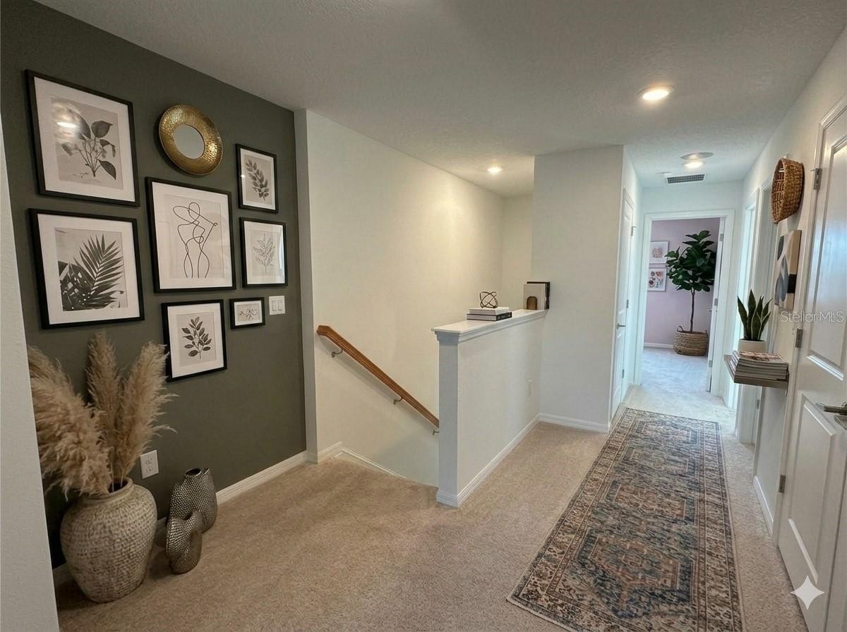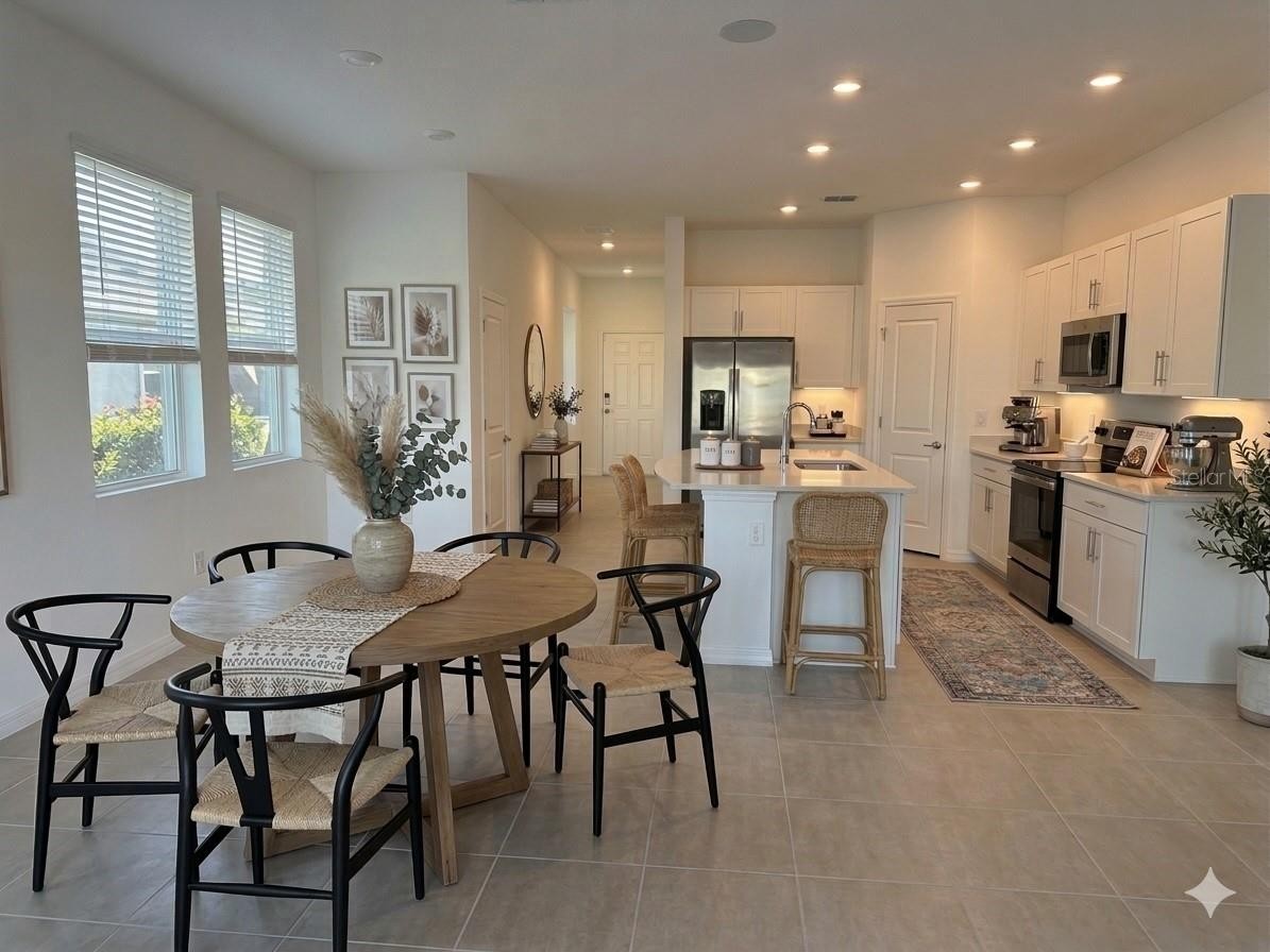 One or more photo(s) has been virtually staged. Welcome to this modern, brand-new 3-bedroom, 2.5-bathroom townhome with a 1-car garage in Edgestone at Artisan Lakes, Palmetto, FL! Enter through the front porch into the open living area and kitchen. The living room is perfect for relaxing/entertaining guests. The kitchen features a large island, beautiful cabinets, a pantry, and brand-new stainless-steel appliances. Built-in speakers in the living area connected to your TV or home theatre for entertainment and great sound. Downstairs also includes a half bathroom, a 1-car garage, and a large patio with a peaceful, private view perfect for relaxing outside. Upstairs, there are three bedrooms, a loft, and a laundry room with a washer and dryer for your convenience. The main bedroom-owner’s suite has a walk-in closet and a private bathroom with two sinks and a walk-in shower. The two other bedrooms have a full bathroom. This home includes luxury upgrades and has a beautiful Lake view. The community offers a resort style pool with cornhole, grilling area and walking paths for enjoying the weather. A community pool is next to the house, making it very convenient. This is a corner lot that offers more privacy. It’s close to highways for easy commuting, and Publix, shops, and restaurants are just minutes away. Don’t miss your chance—come see this beautiful home today and make it yours!