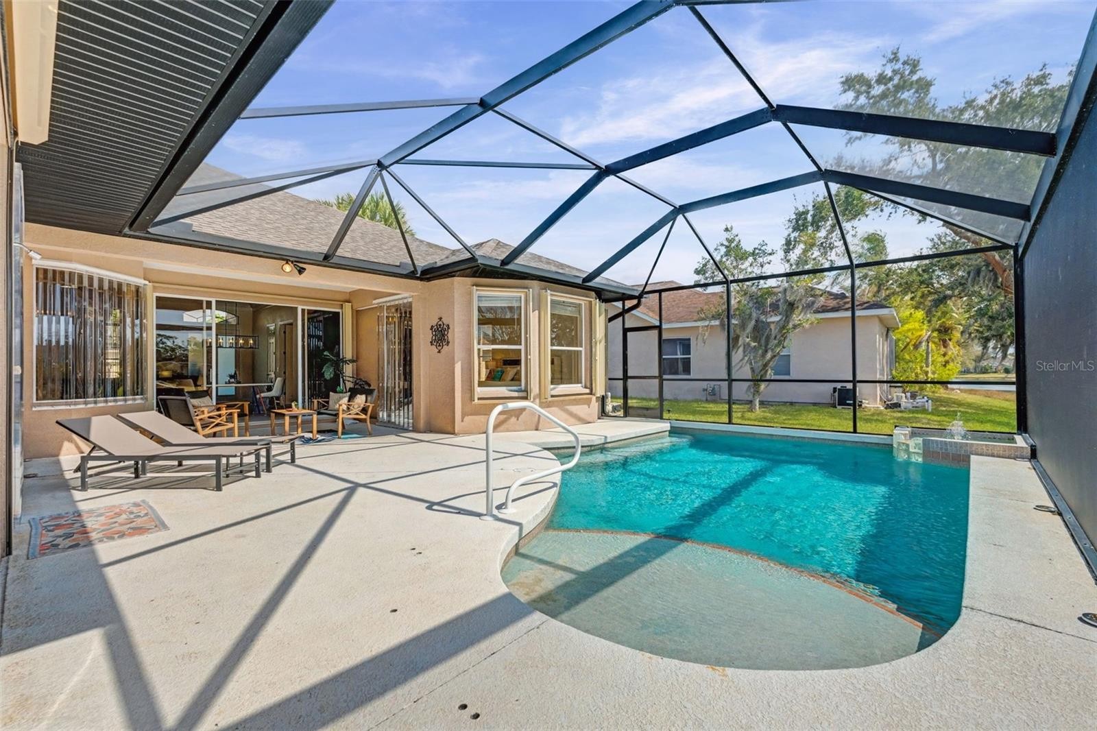 This custom Lee Wetherington residence in Summerfield Villages offers a rare sense of getaway within a peaceful neighborhood. Tucked away on a generous lot with quiet lake views, the house feels fresh and inviting, featuring a spacious layout filled with natural light and elegant crown molding. The kitchen is a standout for anyone who enjoys cooking, equipped with a 6-burner stove, stainless steel appliances, quartz counters, and plenty of storage to keep things organized. The outdoor space centers around a refreshing pool that looks out over the water—an ideal spot for quiet afternoons or weekend get-togethers. Practical updates offer peace of mind, including a roof from 2021, a new front door (2023), vinyl flooring, and a rescreened lanai. The three-car garage even comes with a generator transfer switch and a portable generator included. With an office for focused work and a guest suite that provides extra flexibility, this home makes daily life easy. Living here means being part of a community with quick access to local shops, dining, and parks, all while having a quiet retreat to call your own. Schedule your private showing today!