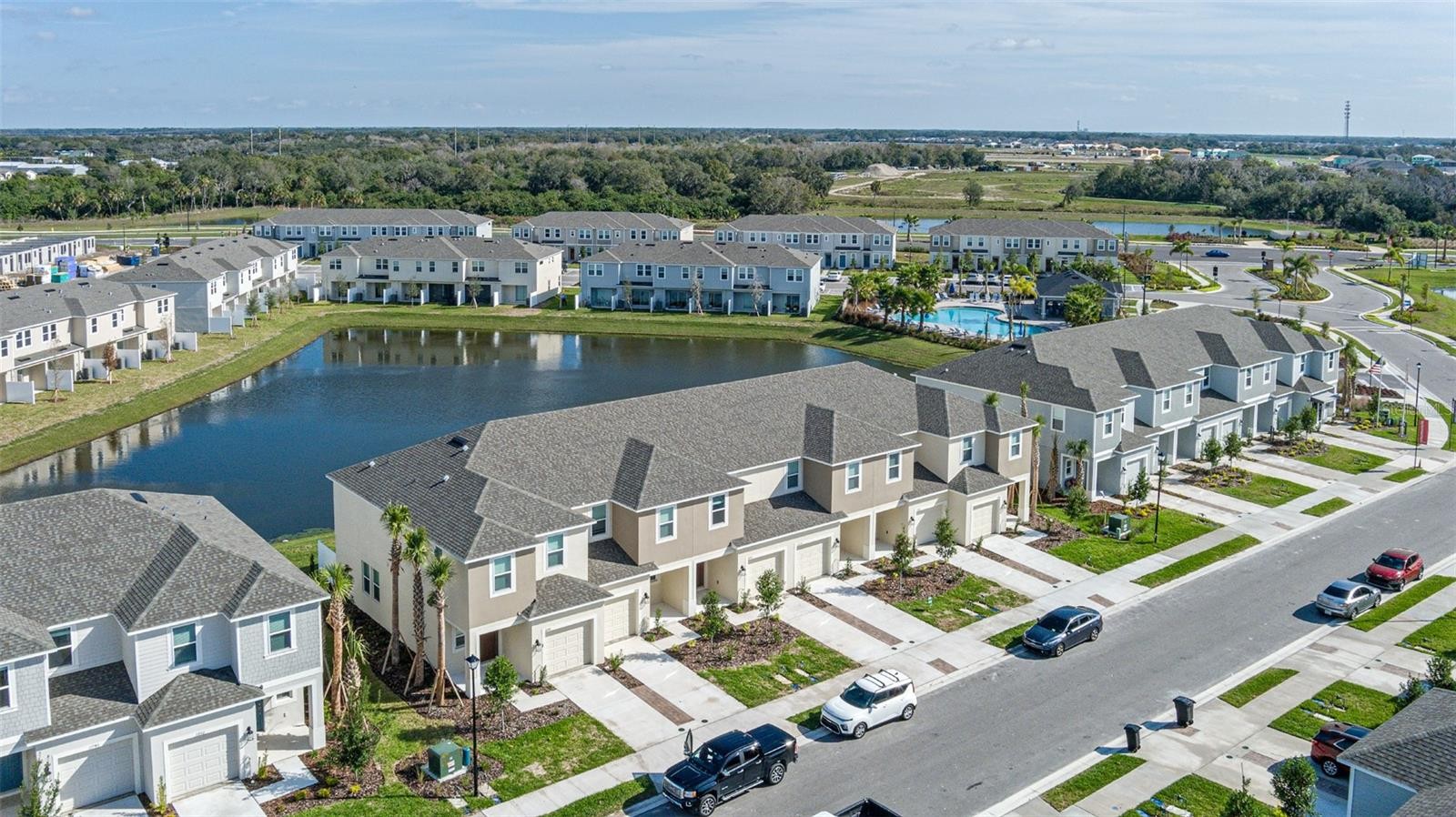 Experience modern comfort and effortless living in this beautifully designed townhome located in the desirable Edgestone at Artisan Lakes community. Offering nearly 1,400 square feet of thoughtfully planned living space, this home strikes the perfect balance between style, space, and everyday functionality. The main level welcomes you with a one-car garage, an open and airy living area ideal for relaxing or entertaining, a convenient half bathroom, and a sleek, contemporary kitchen. Featuring quartz countertops, light cabinetry, and stainless steel appliances, the kitchen serves as the heart of the home—perfect for cooking, gathering, and hosting. Upstairs, retreat to the spacious primary suite, complete with a walk-in closet and a private ensuite bathroom. Two additional bedrooms, a full guest bathroom, and an upstairs laundry room provide comfort and convenience for everyone. Step outside to enjoy peaceful pond views from the back porch, offering a calm and scenic setting to unwind after a long day. Residents also enjoy access to a resort-style community pool, perfect for soaking up Florida sunshine. Ideally located just minutes from I-75, this home offers quick access to Ellenton shopping and dining, with Gulf Coast beaches only 30–40 minutes away. Easy drives to Sarasota, St. Petersburg, and Tampa make this an excellent home base for work, play, and weekend adventures. Well-located. Stylish. Move-in ready. This townhome offers everything today’s renters are looking for—schedule your showing before it’s gone!