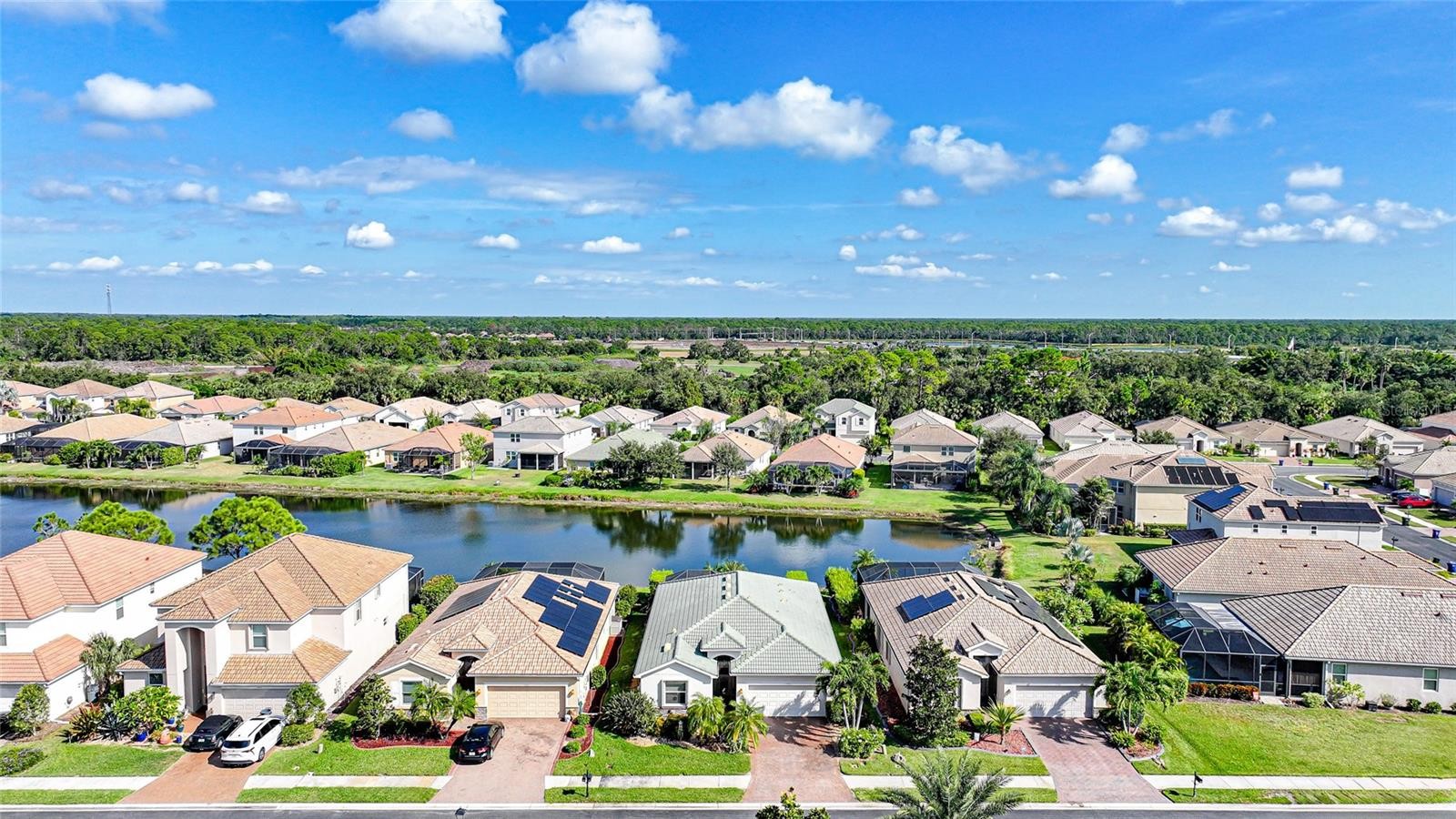 Welcome to this stunning 4-bedroom, 3-bathroom home with a 2-car garage, perfectly positioned on a serene lake in the desirable gated community of Stoneybrook at Venice. Offering over 2,000 square feet under air, this home combines spacious living with elegant finishes and resort-style amenities. Step inside to find 10-foot ceilings with crown molding that create an open, airy feel throughout the main living areas. The diamond pattern tile flooring in the main spaces provides a clean, modern look, while carpeted bedrooms offer comfort and warmth. The kitchen is a true centerpiece, featuring granite countertops, a stylish tile backsplash, pendant lighting over the island, and a large pantry—perfect for both entertaining and everyday living. Enjoy beautiful lake views from the living room through the 8-foot sliding glass doors that opens to a screened-in lanai, ideal for relaxing mornings or peaceful evenings outdoors. An added electrical outlet on the lanai for an outdoor kitchen while another outlet at the BBQ Grill area for the rotisserie. An additional outlet at the front of the home is perfect for holiday decorating. Low voltage wiring has been installed for accent lighting in the front yard. A screened in front entry allows you to open your front door without flying insects entering. The spacious primary suite offers a private retreat with a luxurious ensuite bathroom featuring a garden tub, walk-in shower, and dual vanities. Additional upgrades include attic stairs and plywood flooring for easy attic storage, and a generator wired directly into the electrical panel—simply flip a switch to power your home during an outage. Residents of Stoneybrook enjoy a vibrant, active lifestyle with access to a state-of-the-art fitness center, resort-style pool, tennis and pickleball courts, basketball, volleyball, and playgrounds—plus a full calendar of community events and social gatherings. Located just minutes from Downtown Venice, Downtown Wellen Park, and the Gulf beaches, this home offers the perfect blend of comfort, convenience, and Florida lifestyle.