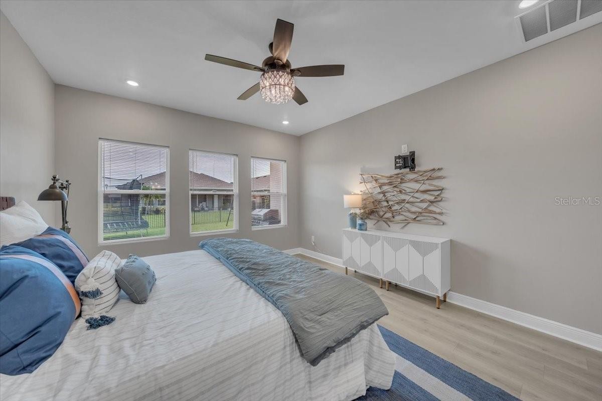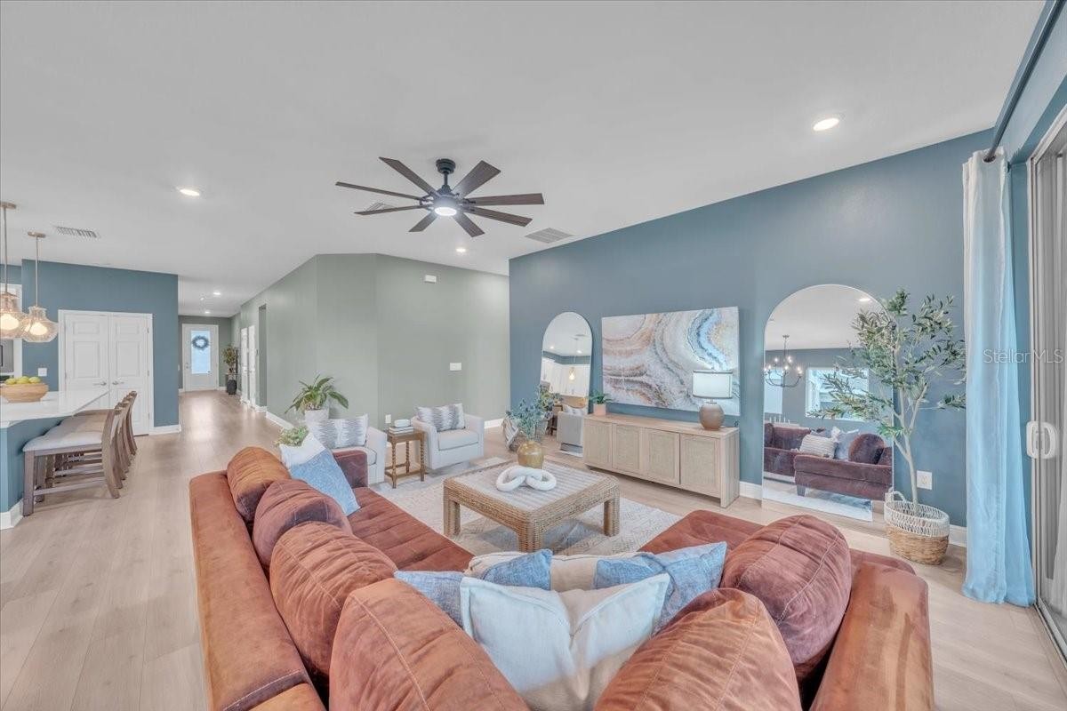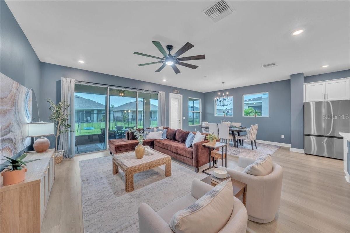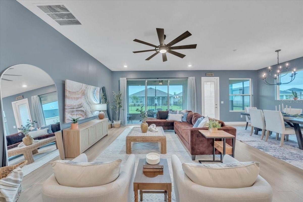 Welcome to Riverfield, North River Ranch’s gated, intimate enclave offering privacy, community charm, and refined Florida living. This move-in-ready, nearly new home is ideally positioned on an oversized, fenced lot with a privacy-enhancing side easement for exceptional space in a high-demand area. This 2,417 SF single-family home features 4 bedrooms, a versatile den/flex space, 3 bathrooms, and a 3-car tandem garage with an epoxy-finished floor—perfect for vehicles, golf cart, home gym, or workshop. The split-bedroom layout includes two bedrooms and a full bath at the front, an en-suite guest bedroom in the middle, and a private owner’s retreat with a luxury bath featuring an oversized walk-in shower, dual vanities, and a customizable walk-in closet. Inside, enjoy high-end upgrades: luxury vinyl plank flooring, tile in baths and laundry, upgraded stainless appliances, quartz countertops, modern cabinetry with upgraded hardware, elegant pendant and dining lighting, extra can (high-hat)lighting in every room, custom paint and feature walls, and room-appropriate ceiling fans throughout, including the lanai. Peace-of-mind features include a whole home water filtration system, water softener, an upgraded HVAC with air scrubber, UV light, Aerosealed ductwork, new supply/return vents, updated thermostat/humidistat, generator hook-up, ADT security system with two exterior cameras and doorbell camera, plus a whole-home camera system. Outdoor living is exceptional with a fully fenced yard, xeriscaped landscaping, reclaimed irrigation, and a screened lanai with custom pavers and ceiling fans for year-round enjoyment. Riverfield offers a gated, intimate feel within North River Ranch’s master-planned community. Enjoy resort-style amenities for just $111/year HOA, including Riverfield Verandah with pool and covered patio, Brightwood Pavilion’s 4,100 SF clubhouse with pool, FitPod, Fitness Center, and game room, plus Camp Creek’s 12+ acres of luxury with vintage-inspired clubhouse and café, workspaces, game rooms, the Headwaters Swim Center with double-loop slide, pickleball courts, bike pump park, challenge course, open lawns, shaded nooks, EV charging, and bike-share hubs. North River Ranch is booming with new schools, shopping, dining, and medical facilities while maintaining exceptional value. Perfectly located between Sarasota, St. Petersburg, Tampa, and Orlando, this area offers small-town charm and convenience with quick access to world-class beaches, airports, culture, sports, and theme parks—without the big-city price tag. If you’re seeking refined, move-in-ready luxury with room to grow, this Riverfield home delivers it all—without the wait!