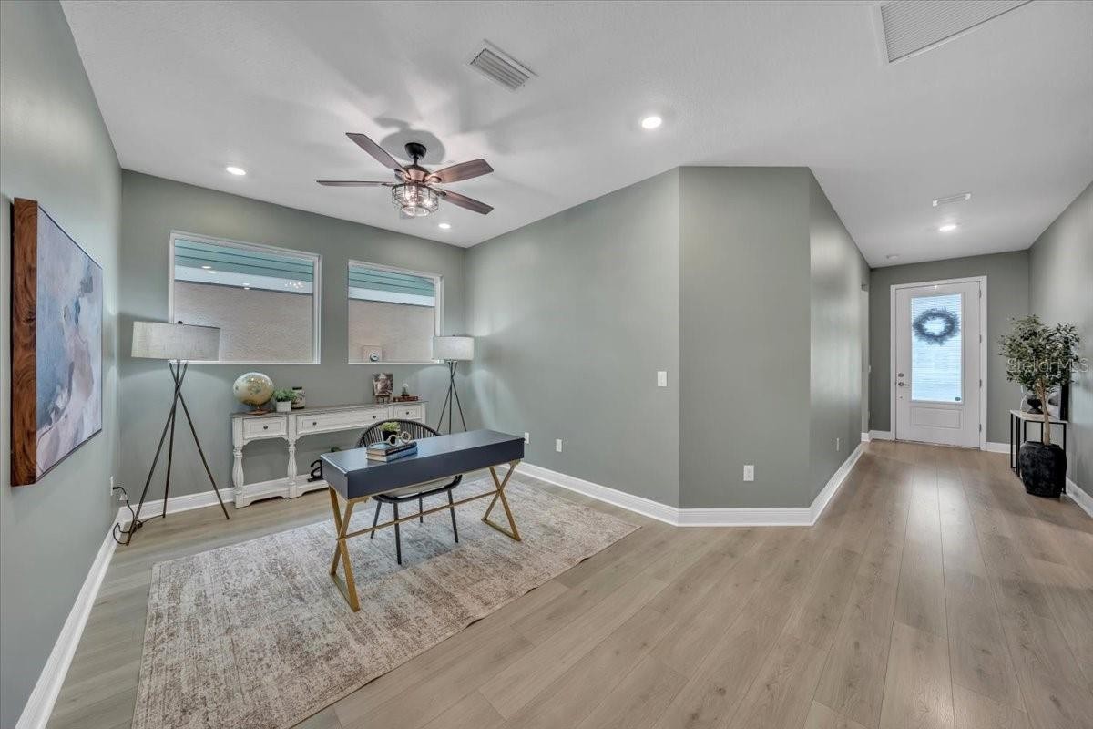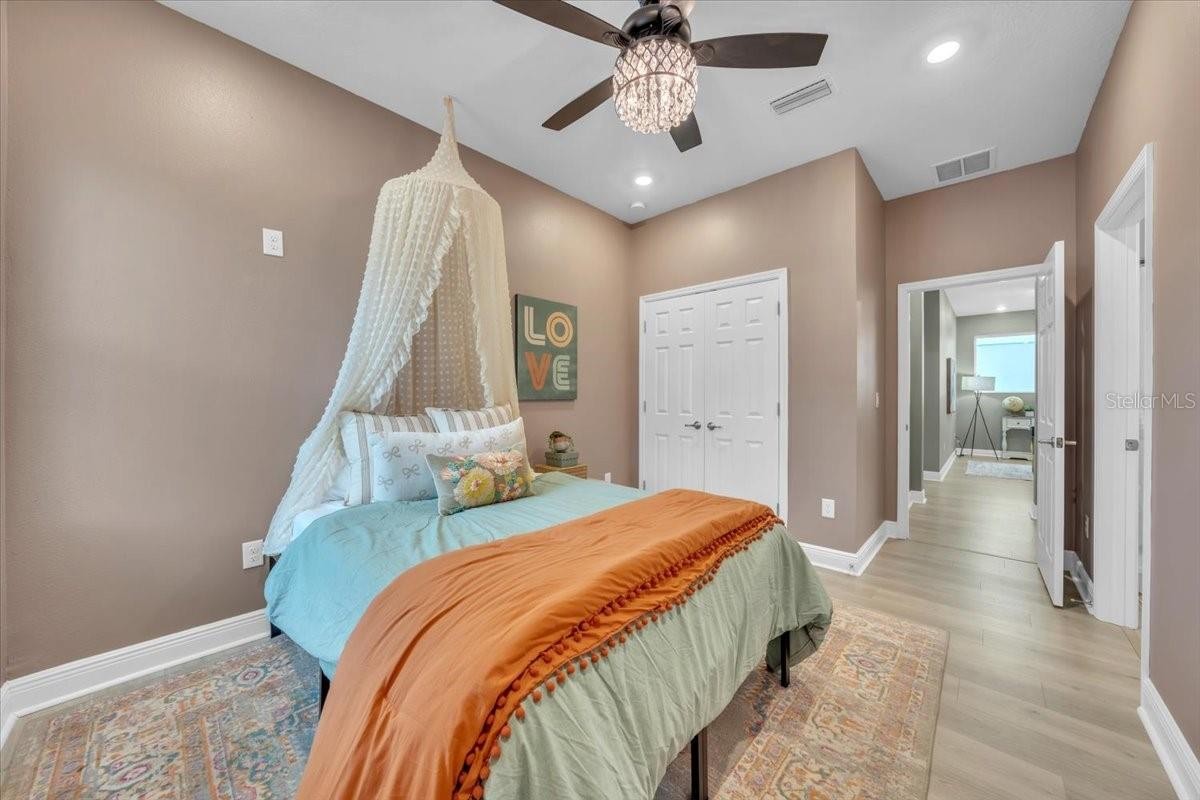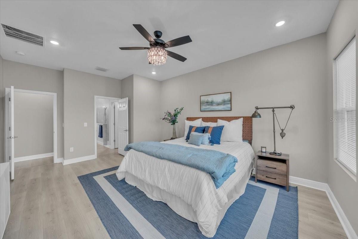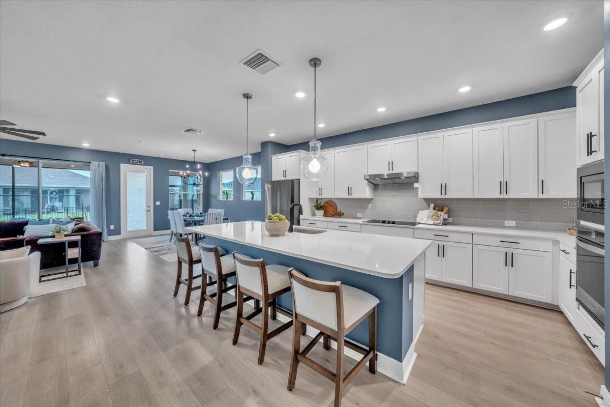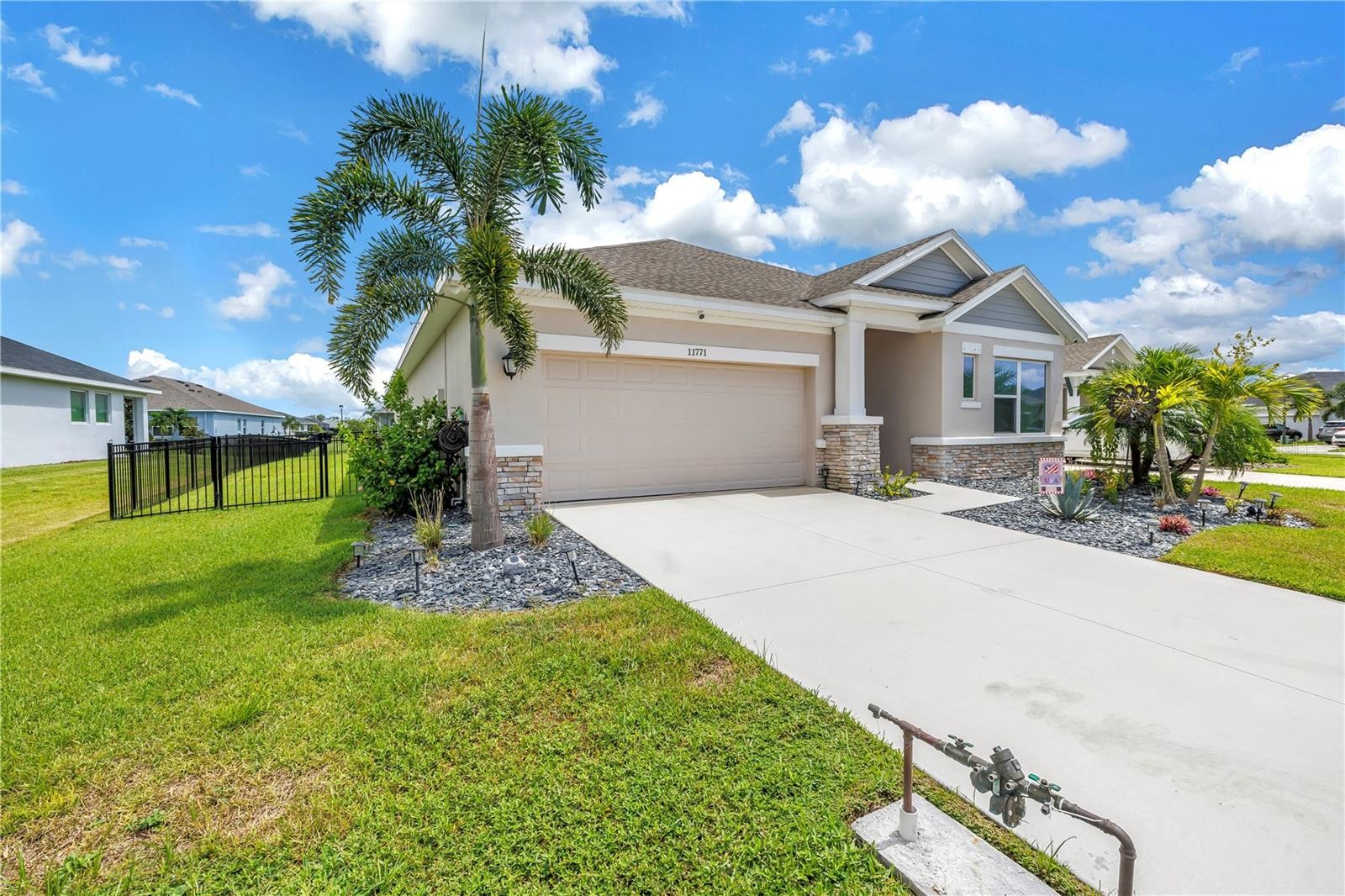 Welcome to Riverfield, North River Ranch’s gated, intimate enclave offering privacy, community charm, and refined Florida living. This move-in-ready, nearly new home is ideally positioned on an oversized, fenced lot with a privacy-enhancing side easement for exceptional space in a high-demand area. This 2,417 SF single-family home features 4 bedrooms, a versatile den/flex space, 3 bathrooms, and a 3-car tandem garage with an epoxy-finished floor—perfect for vehicles, golf cart, home gym, or workshop. The split-bedroom layout includes two bedrooms and a full bath at the front, an en-suite guest bedroom in the middle, and a private owner’s retreat with a luxury bath featuring an oversized walk-in shower, dual vanities, and a customizable walk-in closet. Inside, enjoy high-end upgrades: luxury vinyl plank flooring, tile in baths and laundry, upgraded stainless appliances, quartz countertops, modern cabinetry with upgraded hardware, elegant pendant and dining lighting, extra can (high-hat)lighting in every room, custom paint and feature walls, and room-appropriate ceiling fans throughout, including the lanai. Peace-of-mind features include a whole home water filtration system, water softener, an upgraded HVAC with air scrubber, UV light, Aerosealed ductwork, new supply/return vents, updated thermostat/humidistat, generator hook-up, ADT security system with two exterior cameras and doorbell camera, plus a whole-home camera system. Outdoor living is exceptional with a fully fenced yard, xeriscaped landscaping, reclaimed irrigation, and a screened lanai with custom pavers and ceiling fans for year-round enjoyment. Riverfield offers a gated, intimate feel within North River Ranch’s master-planned community. Enjoy resort-style amenities for just $111/year HOA, including Riverfield Verandah with pool and covered patio, Brightwood Pavilion’s 4,100 SF clubhouse with pool, FitPod, Fitness Center, and game room, plus Camp Creek’s 12+ acres of luxury with vintage-inspired clubhouse and café, workspaces, game rooms, the Headwaters Swim Center with double-loop slide, pickleball courts, bike pump park, challenge course, open lawns, shaded nooks, EV charging, and bike-share hubs. North River Ranch is booming with new schools, shopping, dining, and medical facilities while maintaining exceptional value. Perfectly located between Sarasota, St. Petersburg, Tampa, and Orlando, this area offers small-town charm and convenience with quick access to world-class beaches, airports, culture, sports, and theme parks—without the big-city price tag. If you’re seeking refined, move-in-ready luxury with room to grow, this Riverfield home delivers it all—without the wait!