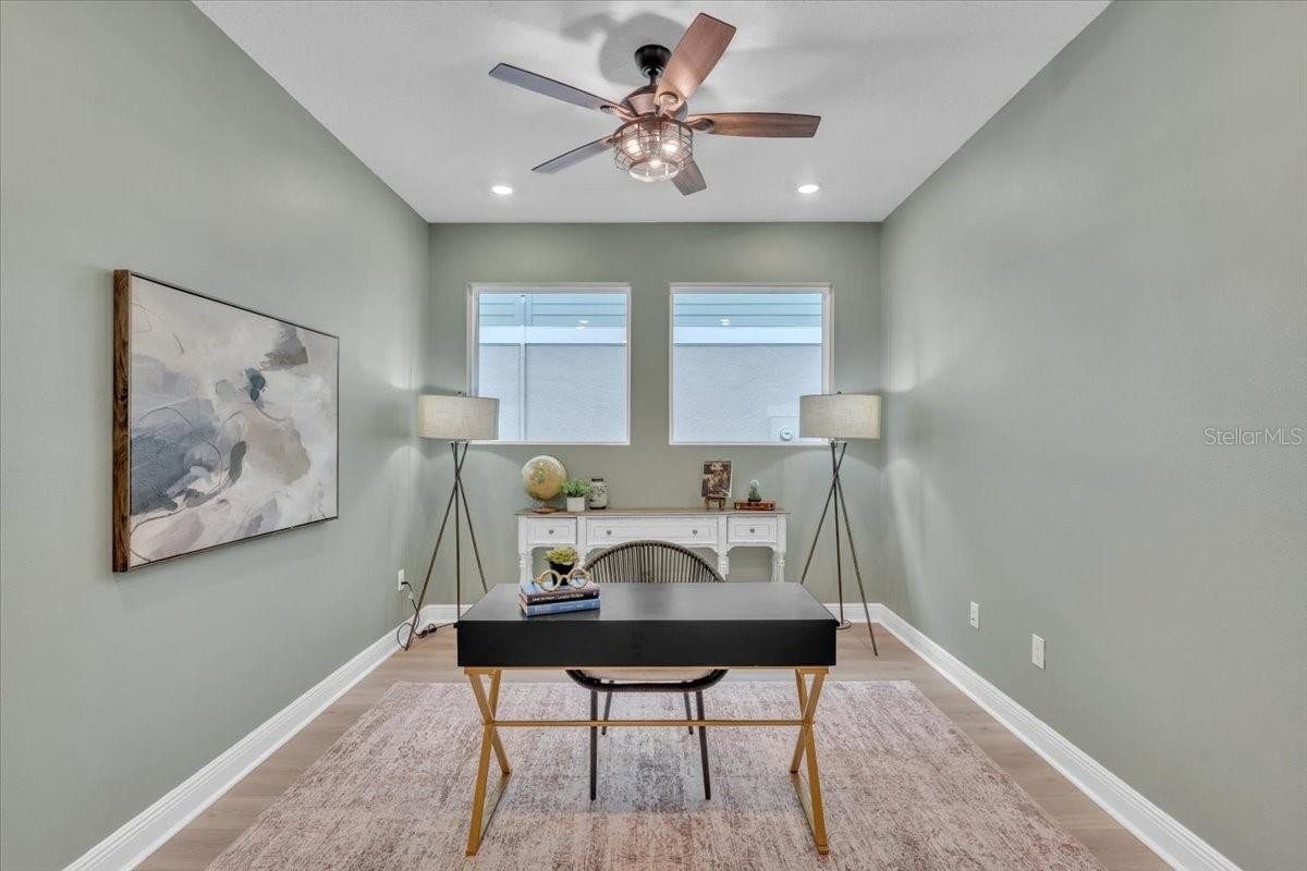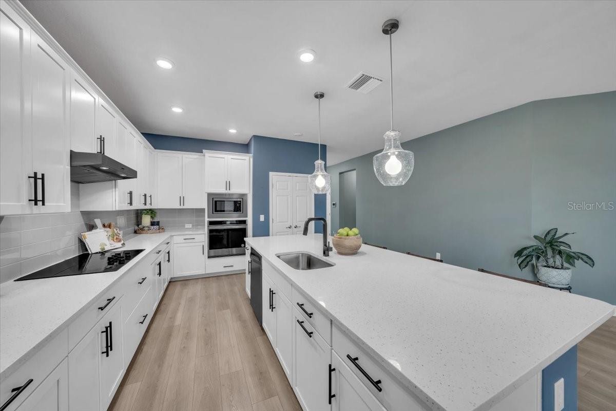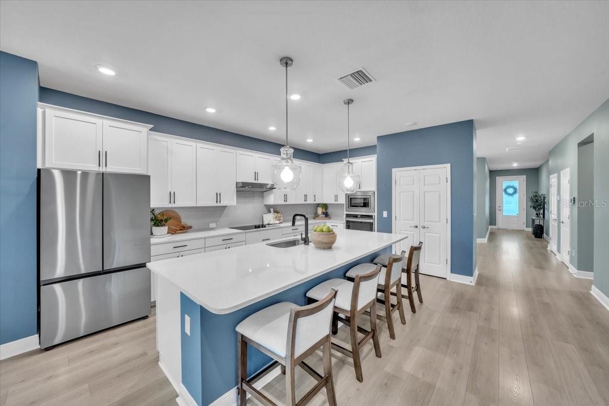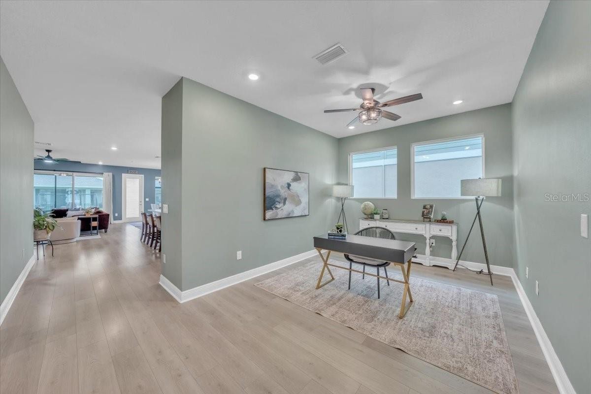 Welcome to Riverfield, North River Ranch’s gated, intimate enclave offering privacy, community charm, and refined Florida living. This move-in-ready, nearly new home is ideally positioned on an oversized, fenced lot with a privacy-enhancing side easement for exceptional space in a high-demand area. This 2,417 SF single-family home features 4 bedrooms, a versatile den/flex space, 3 bathrooms, and a 3-car tandem garage with an epoxy-finished floor—perfect for vehicles, golf cart, home gym, or workshop. The split-bedroom layout includes two bedrooms and a full bath at the front, an en-suite guest bedroom in the middle, and a private owner’s retreat with a luxury bath featuring an oversized walk-in shower, dual vanities, and a customizable walk-in closet. Inside, enjoy high-end upgrades: luxury vinyl plank flooring, tile in baths and laundry, upgraded stainless appliances, quartz countertops, modern cabinetry with upgraded hardware, elegant pendant and dining lighting, extra can (high-hat)lighting in every room, custom paint and feature walls, and room-appropriate ceiling fans throughout, including the lanai. Peace-of-mind features include a whole home water filtration system, water softener, an upgraded HVAC with air scrubber, UV light, Aerosealed ductwork, new supply/return vents, updated thermostat/humidistat, generator hook-up, ADT security system with two exterior cameras and doorbell camera, plus a whole-home camera system. Outdoor living is exceptional with a fully fenced yard, xeriscaped landscaping, reclaimed irrigation, and a screened lanai with custom pavers and ceiling fans for year-round enjoyment. Riverfield offers a gated, intimate feel within North River Ranch’s master-planned community. Enjoy resort-style amenities for just $111/year HOA, including Riverfield Verandah with pool and covered patio, Brightwood Pavilion’s 4,100 SF clubhouse with pool, FitPod, Fitness Center, and game room, plus Camp Creek’s 12+ acres of luxury with vintage-inspired clubhouse and café, workspaces, game rooms, the Headwaters Swim Center with double-loop slide, pickleball courts, bike pump park, challenge course, open lawns, shaded nooks, EV charging, and bike-share hubs. North River Ranch is booming with new schools, shopping, dining, and medical facilities while maintaining exceptional value. Perfectly located between Sarasota, St. Petersburg, Tampa, and Orlando, this area offers small-town charm and convenience with quick access to world-class beaches, airports, culture, sports, and theme parks—without the big-city price tag. If you’re seeking refined, move-in-ready luxury with room to grow, this Riverfield home delivers it all—without the wait!