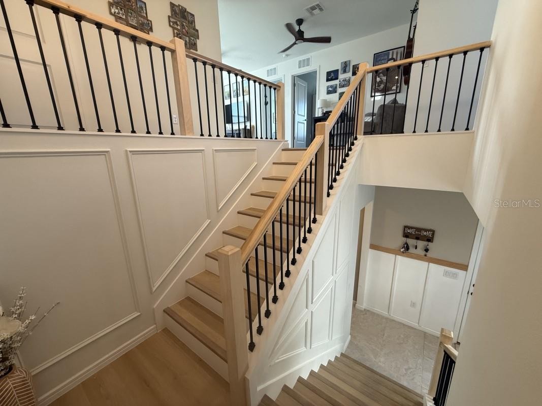 Centrally located just 35 minutes to Tampa and 25 minutes to both St. Pete and Sarasota, with I-75 access less than 5 minutes away, this exceptional 5-bedroom, 3-bath home offers refined design, privacy, and effortless indoor-outdoor living. Situated on a pie-shaped lot backing to a conservation area, the property provides rare privacy and a peaceful natural backdrop. Inside, abundant natural light fills the home, highlighting an open, airy floor plan anchored by a striking open staircase and a custom fireplace TV wall that serves as the focal point of the main living space. The spacious primary suite is a true retreat, featuring impressive bedroom, bathroom, and closet dimensions, along with the added convenience of a laundry room located just off the primary bedroom. Step outside to your private backyard oasis, complete with a heated saltwater pool and a convenient sidewalk providing direct access to the driveway, perfect for entertaining and everyday functionality. Rounding out the home is a climate-controlled garage with epoxy floors, ideal for a home gym, workshop, or additional flex space. This home deliver's location, privacy, and thoughtful upgrades—an exceptional opportunity in Parrish.
