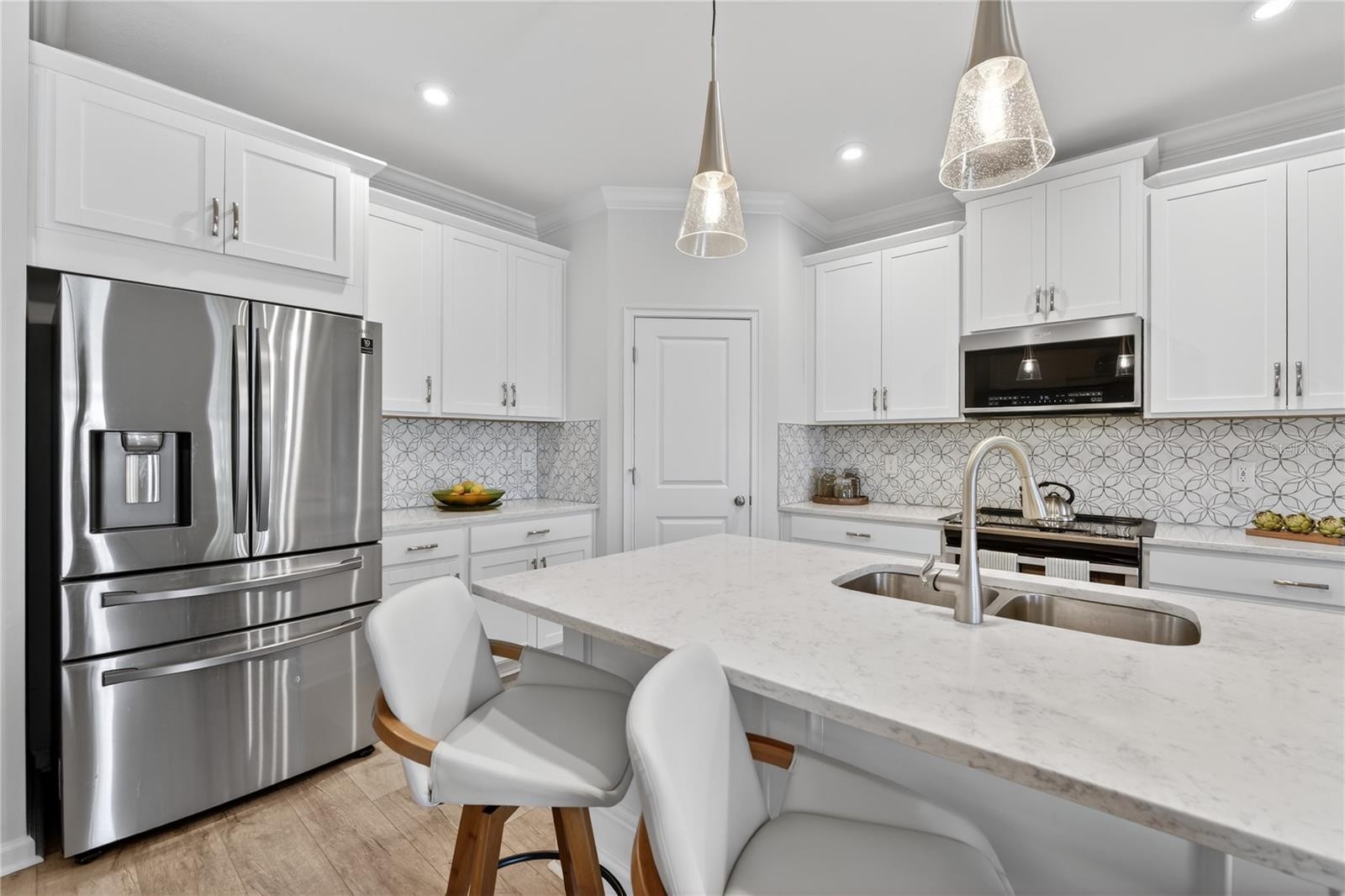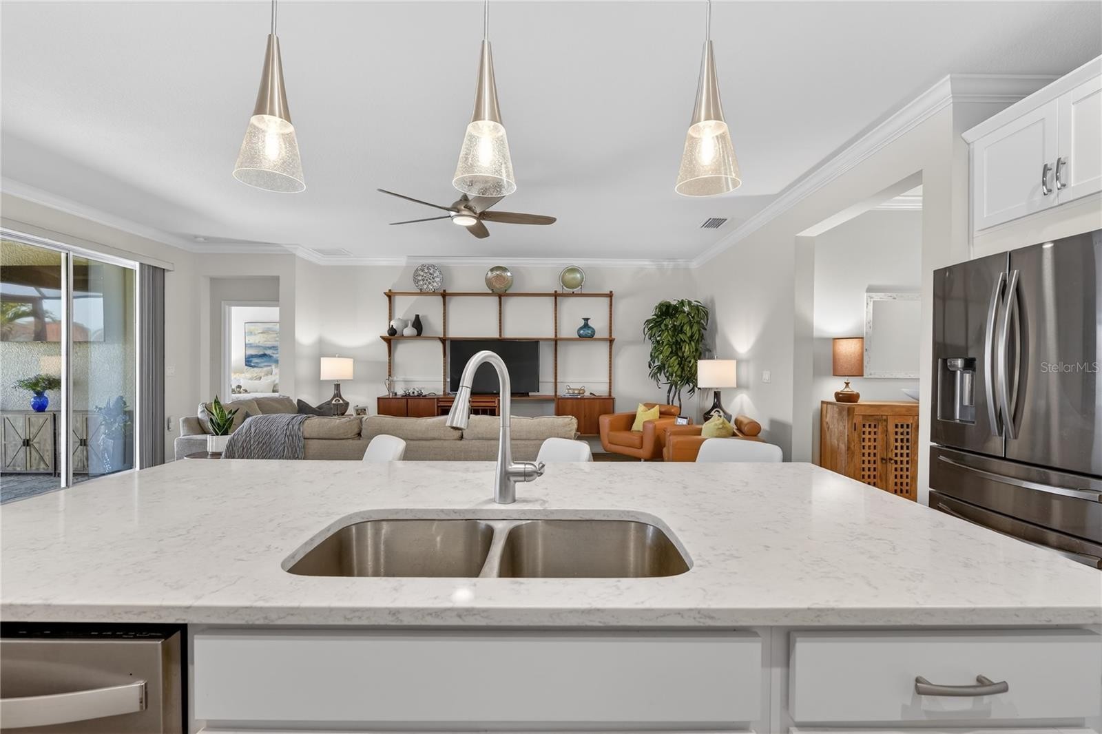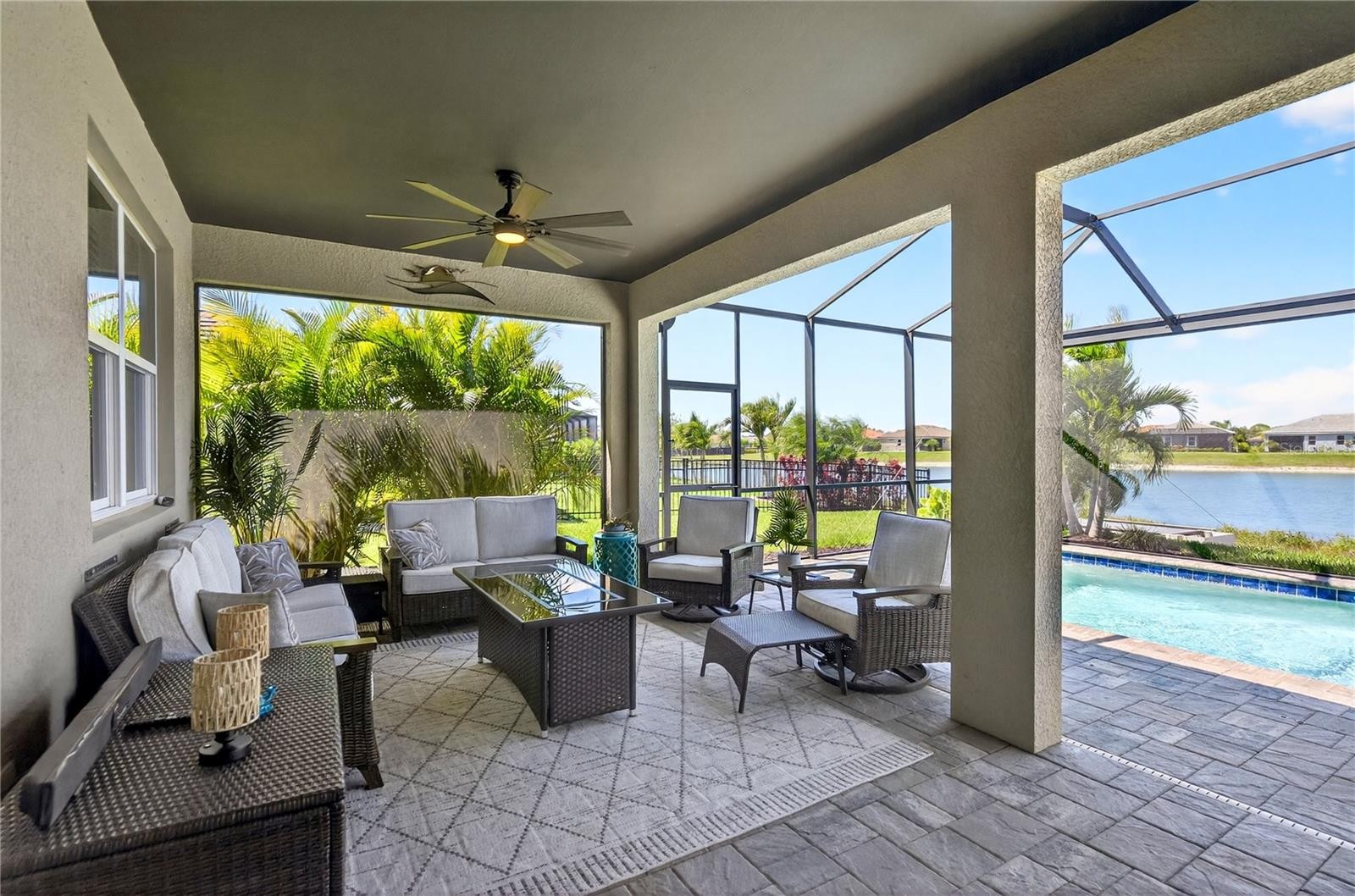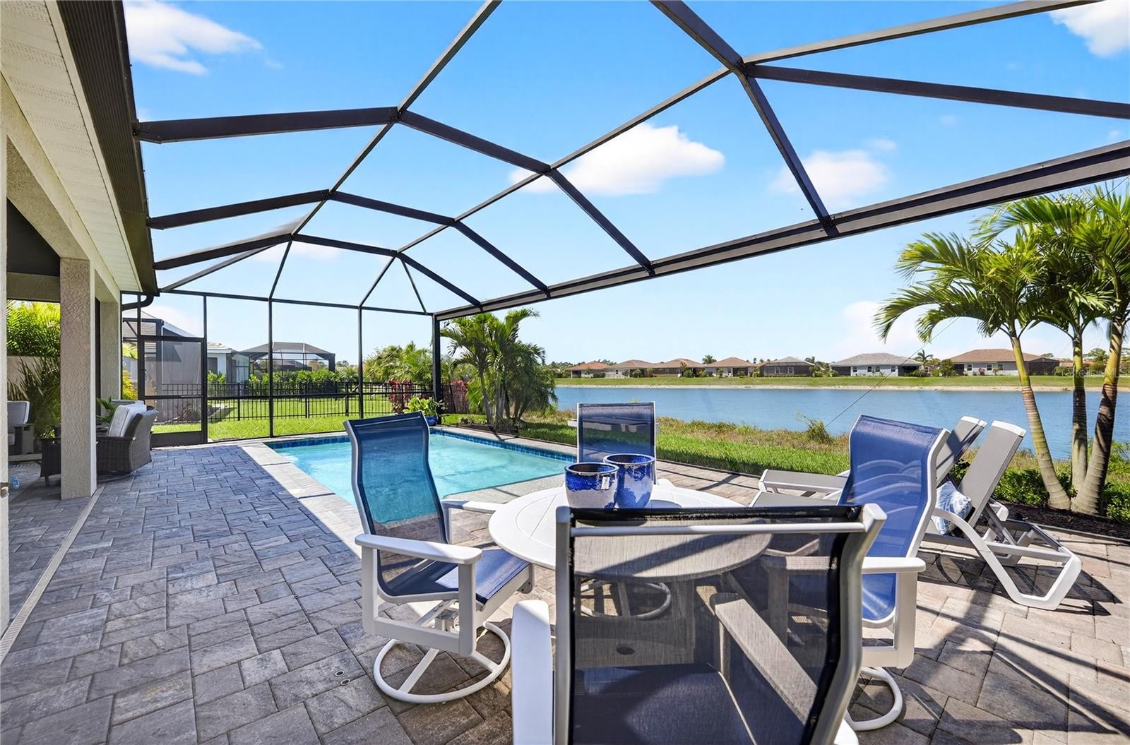 EXPERIENCE THE ULTIMATE IN FLORIDA LIVING WITH THIS STUNNING WATERFRONT POOL HOME featuring an extended lanai in the highly sought-after Renaissance at Wellen Park—where serene views, resort-style amenities, and timeless design come together in perfect harmony. This beautifully appointed residence offers 2,098 square feet of thoughtfully designed living space, featuring three bedrooms, two bathrooms, and a versatile den ideal for a home office or guest retreat. From the moment you step inside, you’ll notice the elevated finishes that create a cohesive and elegant atmosphere, including luxury vinyl flooring throughout the main living areas and crown molding throughout. At the heart of the home is a stunning, chef-inspired kitchen showcasing light cabinetry, quartz countertops, a decorative tile backsplash, and a custom wood-accented island. A vented hood that exhausts to the exterior—an uncommon and highly desirable upgrade—adds both style and functionality. The open-concept layout flows seamlessly into your private outdoor oasis, highlighted by the extended lanai that offers ample space for lounging, dining, and entertaining. Enjoy a saltwater heated pool complete with a sun shelf—perfect for relaxing in the water—along with a clear-view screen that provides unobstructed water views. It’s an ideal setting for morning coffee, relaxing afternoons, or hosting guests while taking in Florida’s breathtaking sunsets. The primary suite provides a peaceful retreat, while the additional bedrooms and flexible den space easily accommodate guests and evolving lifestyle needs. Located within the gated community of Renaissance, residents enjoy an amenity-rich lifestyle featuring a resort-style pool, clubhouse, fitness center, pickleball courts, and a vibrant calendar of social activities. Just minutes away, Wellen Park offers an array of dining and shopping options, scenic trails, and the Atlanta Braves Spring Training facility, along with convenient access to the Gulf Coast’s renowned beaches. This is more than a home—it’s a lifestyle. Don’t miss your opportunity to experience the very best of Renaissance at Wellen Park.