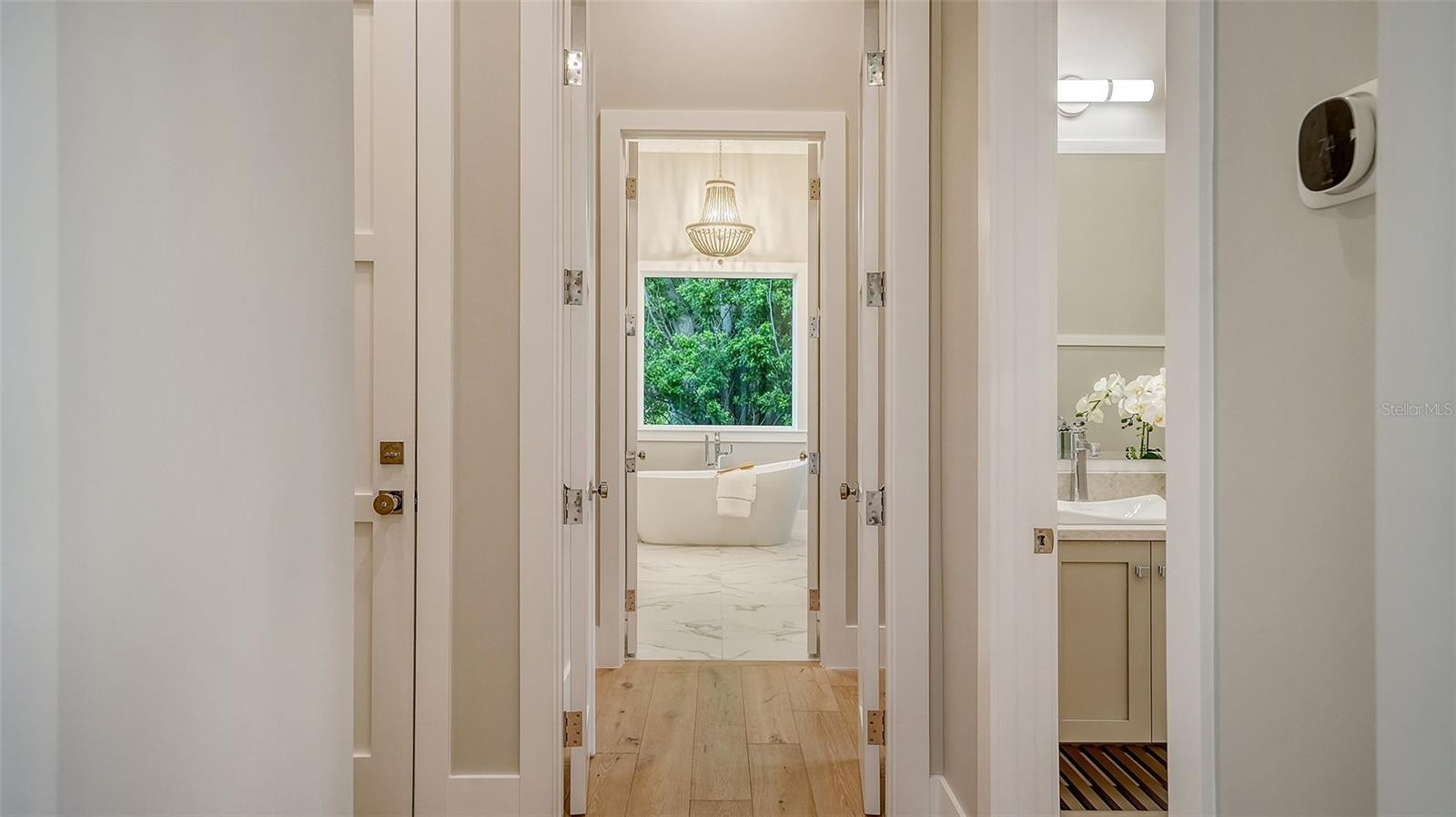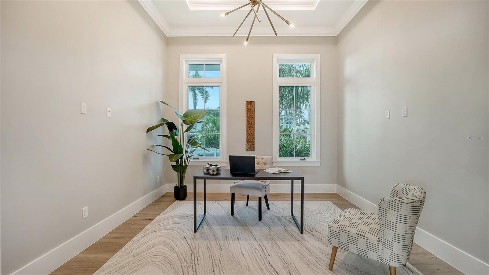 Heritage Builders proudly presents The Sand Dollar, a truly one-of-a-kind waterfront estate located in the prestigious, gated community of Bird Key. This architectural masterpiece blends timeless Caribbean-inspired design with the best of modern luxury and functionality. Spanning 4,594 sq. ft. of living space and 6,952 sq. ft. under roof, this expansive custom residence offers 4 bedrooms, 4 full baths, and a half bath. A 3.5-car garage provides ample room for vehicles plus a golf cart—perfect for quick trips to downtown Sarasota or the world-renowned St. Armand's Circle. Upon entering through the wide gallery with soaring 12-foot ceilings, you’re greeted by elegant oak flooring and a striking quartz-clad fireplace, setting the tone for the home’s warm yet sophisticated ambiance. The heart of the home is the chef’s-grade kitchen, featuring Thermador appliances, a wine column, polished stainless steel hood with standing seams, and a grand center island—all seamlessly integrated into the open living and dining areas. A dramatic wall of 10-foot sliding glass doors fully retracts to reveal a spacious covered patio, infinity-edge pool, and sweeping long water views—a breathtaking backdrop for relaxing or entertaining. The outdoor living space is curated for coastal luxury, with dedicated lounge areas, conversation nooks, and al fresco dining zones. Upstairs, the second level offers a private guest master suite, a guest lounge, a flexible library or media room with balcony access, a second study or home gym, and an expansive rear terrace overlooking Sarasota Bay. Additional features include a private boat dock, jet ski lift, and direct water access to Sarasota Bay and the Gulf of Mexico. Located in one of Sarasota’s most coveted neighborhoods, Bird Key offers unmatched proximity to Lido Key’s award-winning beaches, downtown arts and dining, and St. Armand's Circle’s boutique shopping and entertainment.