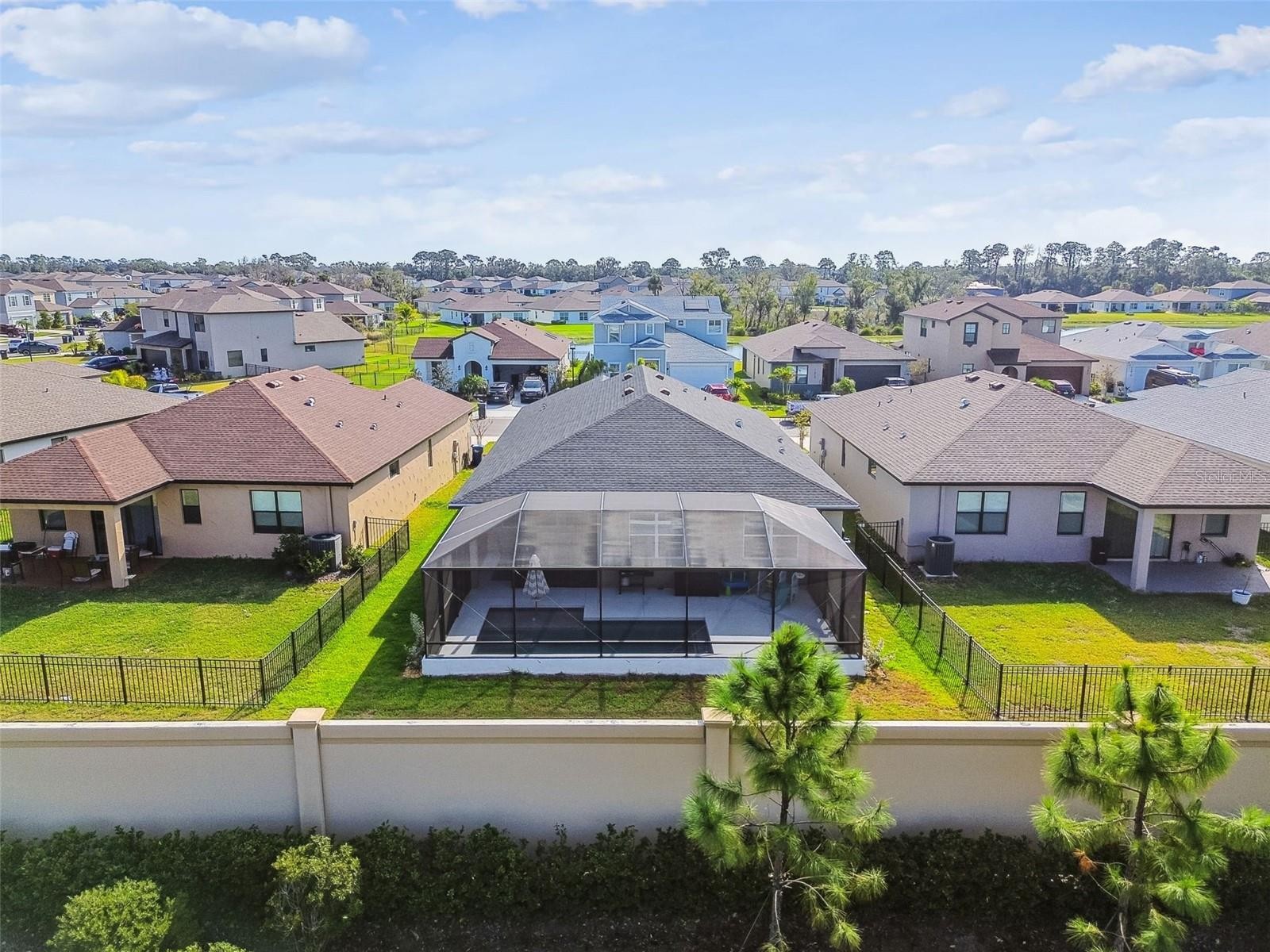 A Rare Opportunity — Better Than New, 2024 built by Inland Homes Welcome to a residence that surpasses the appeal of new construction, with the exceptional benefit of a private pool from day one. Whether the air is crisp or the Florida sun is at its peak, the combination heater and chiller system ensures your pool is always the perfect temperature. With required safety alarms and gates already in place, peace of mind comes built in. The sundeck provides an inviting space for relaxation and play, making this outdoor retreat a true extension of the home. Inside, the attention to detail continues. The chef-inspired kitchen blends style and function with a generous walk-in pantry and an intuitive layout ideal for both everyday living and elevated entertaining. Enjoy memorable evenings in the screened-in lanai, perfectly suited for dining alfresco during the cooler months. The expansive open-concept living area effortlessly accommodates everything from casual gatherings to relaxing sit down dinner parties. Just off the main living space, a beautifully appointed pocket office offers an elegant solution for managing the household, organizing daily life, or creating a serene work-from-home environment. The primary suite is a luxurious sanctuary, featuring an ensuite bath with dual sinks, a dedicated vanity area, and an exceptionally spacious walk-in closet—large enough to rival a boutique dressing room. A thoughtfully designed split floor plan enhances privacy, placing the primary suite on one side of the home while guests or family enjoy their own wing, complete with a well-appointed full bath featuring a tub. Additional notable features and upgrades include: • Interior laundry room for added convenience • Water softener • Expanded driveway offering graceful entry and practicality • Light fixtures and ceiling fans that elevate each space • Custom interior shutters in the living area for a refined, timeless aesthetic • Generator transfer switch ensuring effortless preparedness This exceptional residence offers the ease of a turnkey home with the elevated feel of a thoughtfully refined living experience. For buyers seeking comfort, beauty, and premium enhancements without the wait of new construction, this home stands in a class of its own.