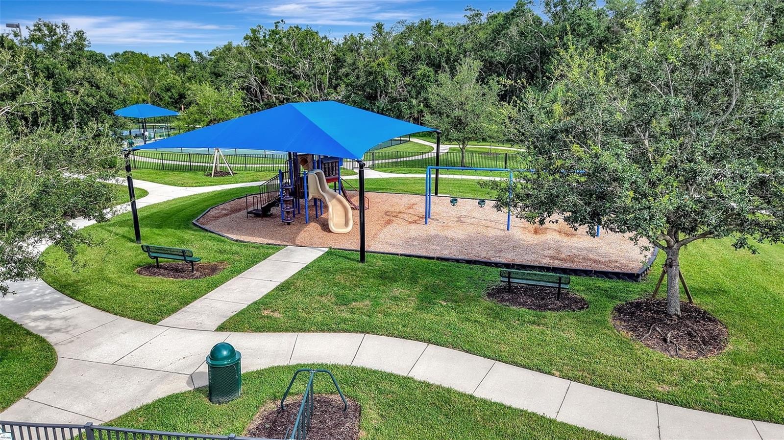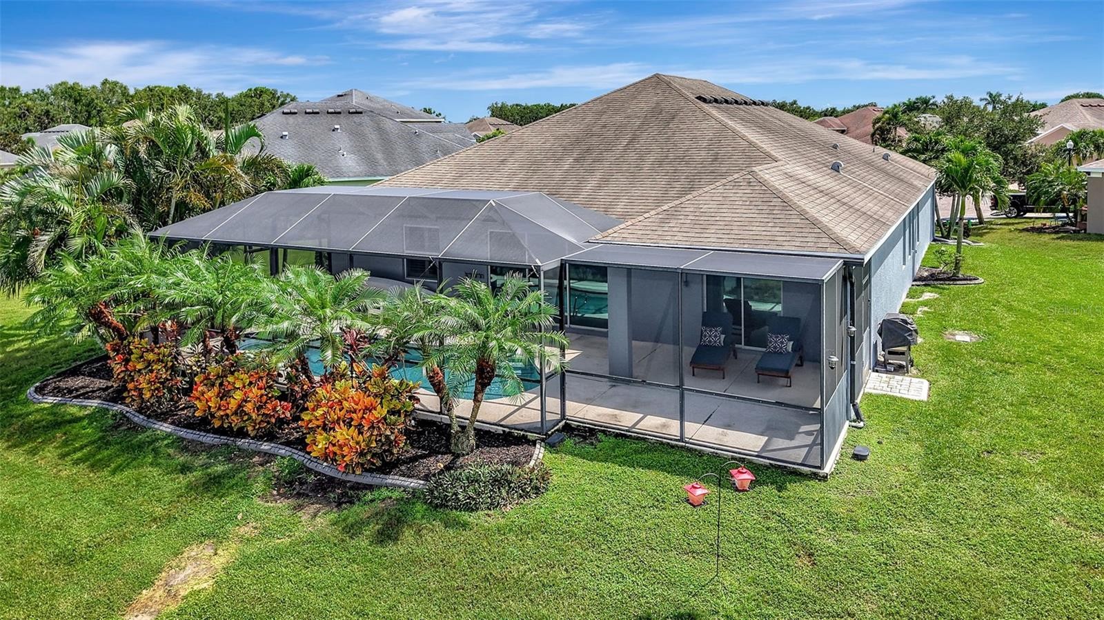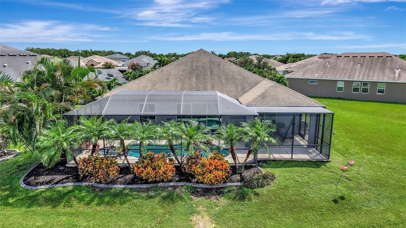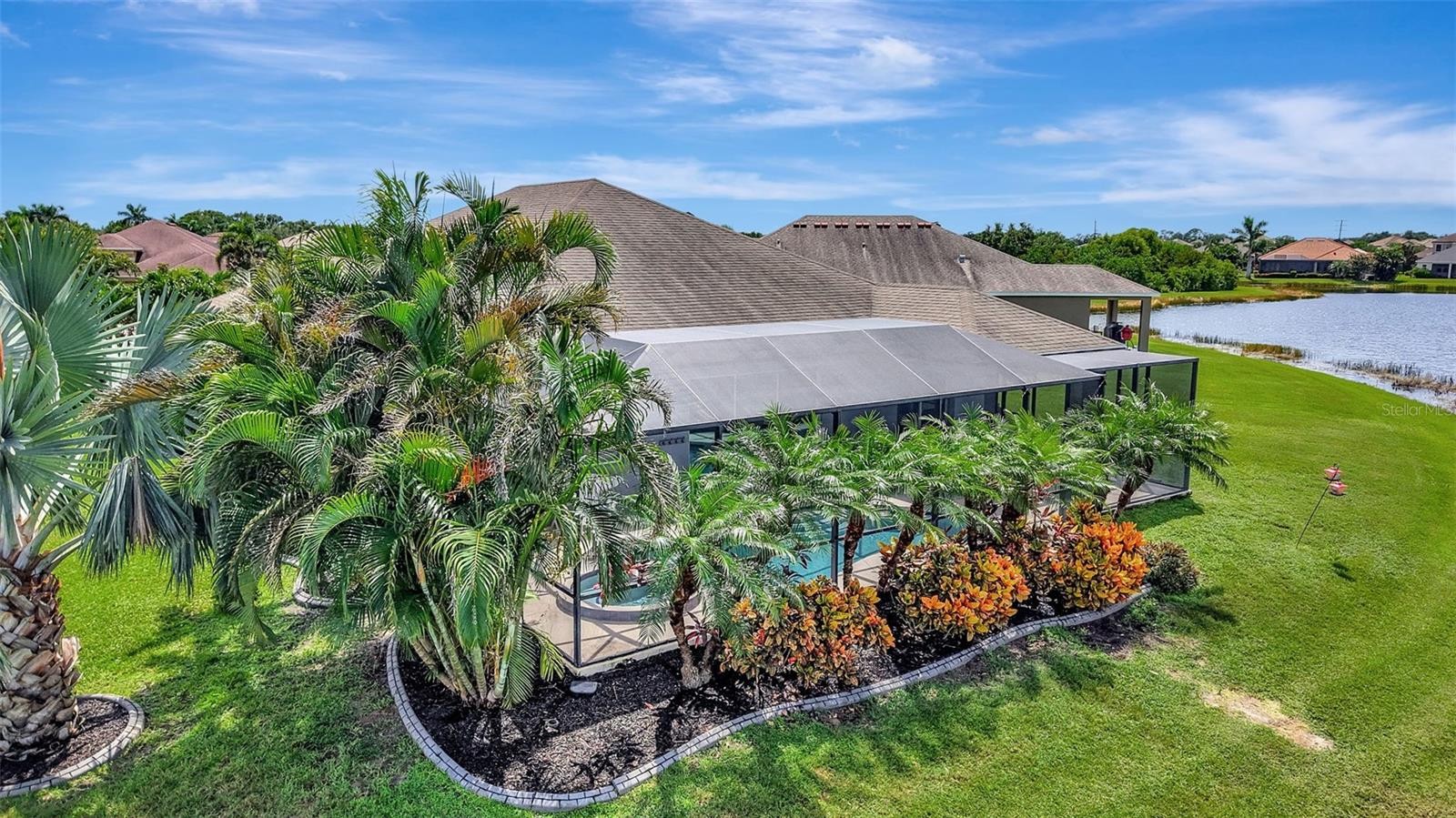Delightful setting in the amazing community of Greyhawk Landing West. Freshly painted inside and outside, with ceramic tile throughout the whole house. This four-bedroom, three and a half bath home is designed for gathering with friends and family, but has equally private rooms for more peaceful moments. A gated community with fabulous amenities and walking paths. Set on a quiet cul-de-sac lot. Entering this lovely home thru a decorative glass front door, you have double window French doors flex front room. The shared full-bathroom across the hall with two bedrooms. Additional guest half-bath in the hall. The centerpiece kitchen has a long "T" granite single counter breakfast bar with sink, gas stove and several cabinets. Wired for surround sound and shiplap walling. Looking out through the three-panel slider, into the open floor plan forward onto the lanai, pool, spa and pond view. Just off the kitchen a great dining space for long table dining. The master suite to the rear left of the home, with tray ceiling and sliders for slipping out to the pool. Master bathroom with double sinks, garden style tub and walk-in shower. The other half of the home holds the fourth bedroom with walk-in closet, full-bath shared into an additional flex room with built-in desk and shelving creating an ensuite or additional office. The utility room is larger with wall shelving. Two-car garage with a larger closed storage room and full house water softener. Paver driveway. The lanai has a covered area for shade for dining or laying back. Pool and hot tub all with view of a wonderful pond behind. The lot is premium with large distances from the neighbors. Greyhawk Landing has treasured landscaping, resort-style amenities including two larger pools, splash park, tennis, basketball court, fitness room and biking trails. Close to grocery, shopping and restaurants. LOW HOA! Community is centered between St. Pete to the North, Sarasota to the South, next to Lakewood Ranch and Anna Maria Island your direct Gulf Coast beaches. A must see, but don't think this will last long. See you soon:)