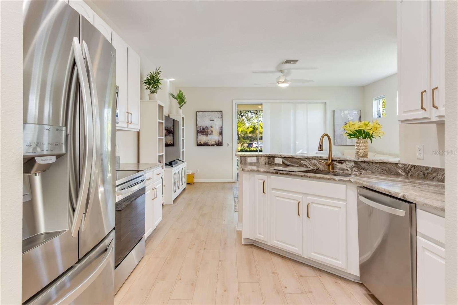 ** PLEASE TAKE A WALK THROUGH YOUR NEW HOME WITH THE 3D INTERACTIVE VIRTUAL TOUR. ** Impeccably updated and thoughtfully curated, this completely remodeled (2022) contemporary END-UNIT townhome offers 3 bedrooms, 2.5 baths, an attached 1-car garage, and a 2020 roof. Can be sold fully furnished, this home is truly move-in ready and lives like new. This property welcomes you with lush tropical landscaping, fresh mulch, palm trees, decorative accents, and irrigation to maintain vibrant curb appeal year-round. A retractable front screen and the subtle fragrance of blooming hibiscus set the tone as you enter your new home. Inside, a warm and inviting foyer leads to a well-designed floor plan. The main level showcases newer luxury vinyl plank flooring, creating a seamless and sophisticated flow throughout the living spaces. The kitchen is both functional and stylish, featuring professionally painted cabinetry, updated hardware and finishes, and newer stainless-steel appliances (2022). A well-positioned breakfast bar is perfect for casual dining or entertaining. The dining area is open and elegant, highlighted by a modern chandelier and architectural archways that add character and dimension. Upstairs, the split-bedroom layout offers privacy and comfort. The primary suite serves as a serene retreat with a generous walk-in closet and a beautifully updated en-suite bath, complete with a walk-in tiled shower, upgraded fixtures, and stunning Turkish tile finishes. Two additional guest bedrooms are well-appointed with ceiling fans, ample closet space, and natural light. Bedroom three features a charming built-in window bench—an ideal nook for reading or relaxing. The guest bathroom includes a tub/shower combination for convenience. All bedrooms feature stain-resistant carpeting. Extensive upgrades include fresh interior paint, custom window treatments, LED lighting, updated fixtures, counters, and flooring—demonstrating true pride of ownership throughout. Sliding glass doors open to a private screened lanai, offering a peaceful outdoor retreat. Enjoy morning coffee, al fresco dining, or simply unwind while taking in the tranquil backyard setting. The lanai also includes a convenient storage closet. Located in the highly desirable Lakeside Plantation, residents enjoy low-maintenance living with an HOA of just $175/month, with the CDD already included in the property tax bill—adding exceptional value. Community amenities include a heated Olympic-size pool, fitness center, clubhouse with fireplace, basketball, pickleball and tennis courts, playground, and gazebo—providing something for everyone. Ideally situated with easy access to I-75, commuting to Sarasota or Fort Myers is effortless. You’re also just minutes from shopping, dining, golf courses, parks, and the beautiful Gulf beaches of Venice and Manasota Key. This exceptional home offers the perfect blend of style, comfort, and convenience. Schedule your private showing today.
