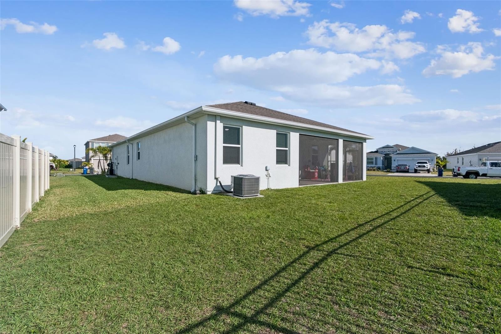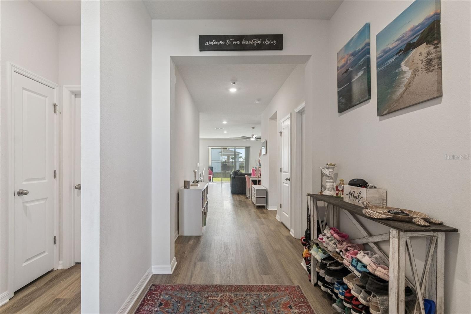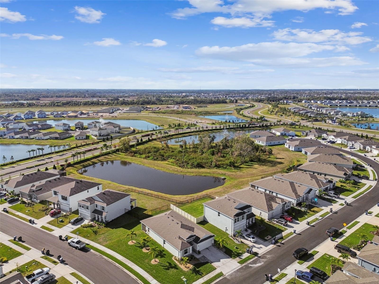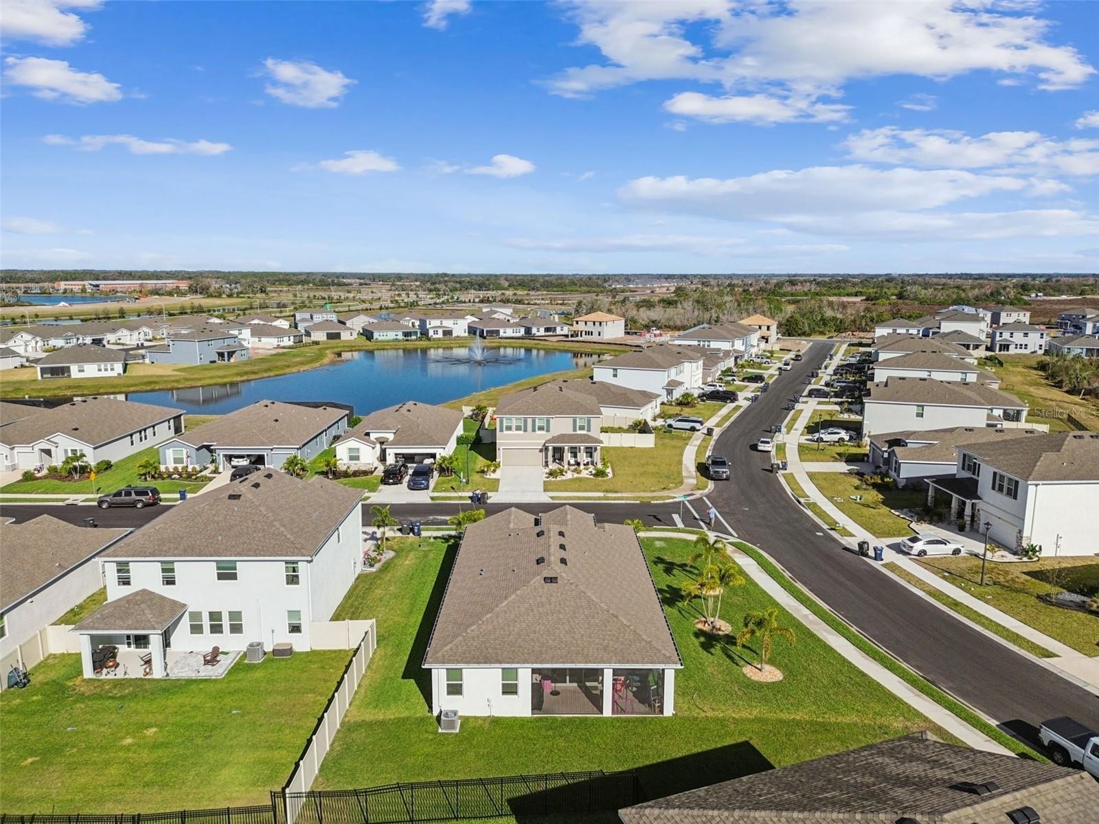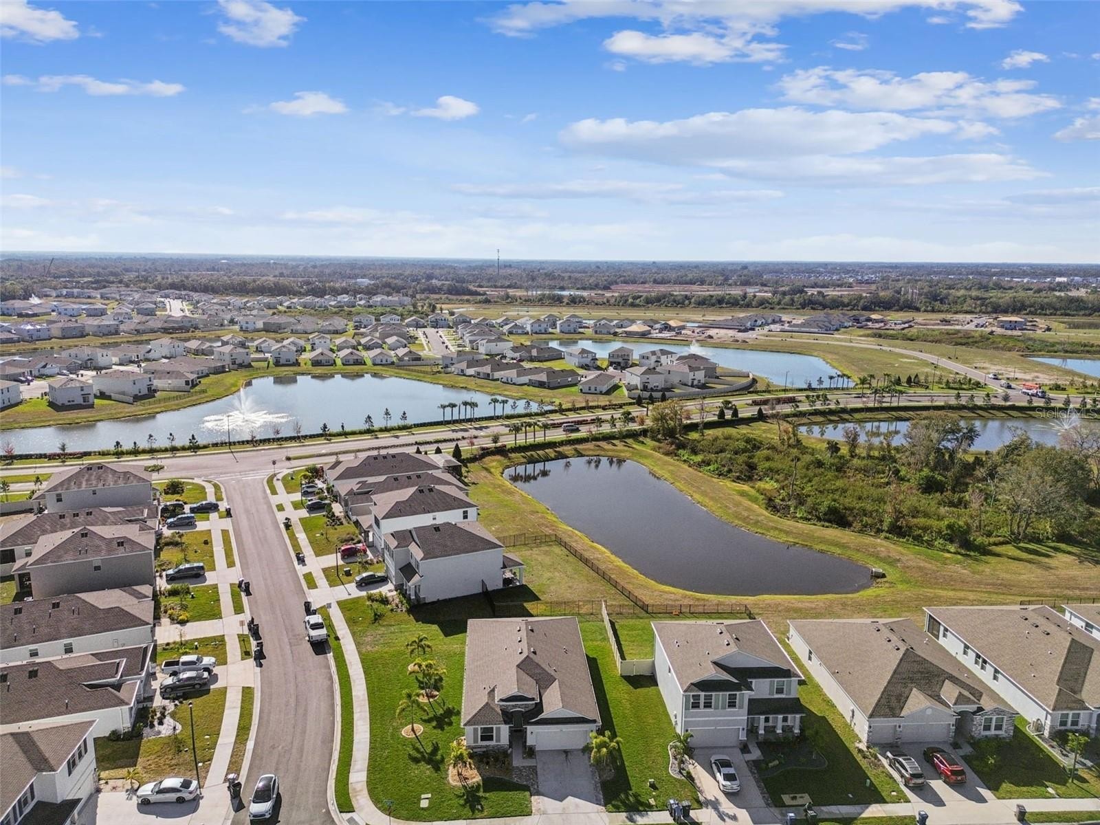 Welcome to easy Florida living in Bella Lago. This beautifully maintained one-story, all-concrete-block home offers the perfect blend of comfort and open-concept design across 2,045 sq. ft. of thoughtfully used space. Step inside to a bright, flowing layout where the open floor plan connects the living, dining, and kitchen areas—ideal for both everyday living and entertaining. The kitchen features white cabinetry, quartz countertops, and a clean, modern feel that continues into the bathrooms with matching quartz finishes. The primary suite is a true retreat with a tray ceiling, his-and-hers walk-in closets, and a spacious ensuite bath complete with dual sinks, an extra-large vanity, garden tub, separate shower, and private water closet. At the front of the home, you’ll find two secondary bedrooms sharing a full bath, offering a smart layout for guests or family. A fourth bedroom and half bath provide added flexibility for an office, nursery, or flex space. Enjoy Florida’s indoor-outdoor lifestyle with sliding glass doors that lead to a screened-in lanai overlooking peaceful pond views. Updated landscaping and palm trees enhance the curb appeal and tropical feel. Located in the highly desirable Bella Lago community, residents enjoy access to two resort-style pools, a fitness center, a playground, and a dog park. A spacious 2-car garage, quality concrete block construction, and a corner lot make this home as practical as it is beautiful. This one checks all the boxes for comfort, style, and location!
