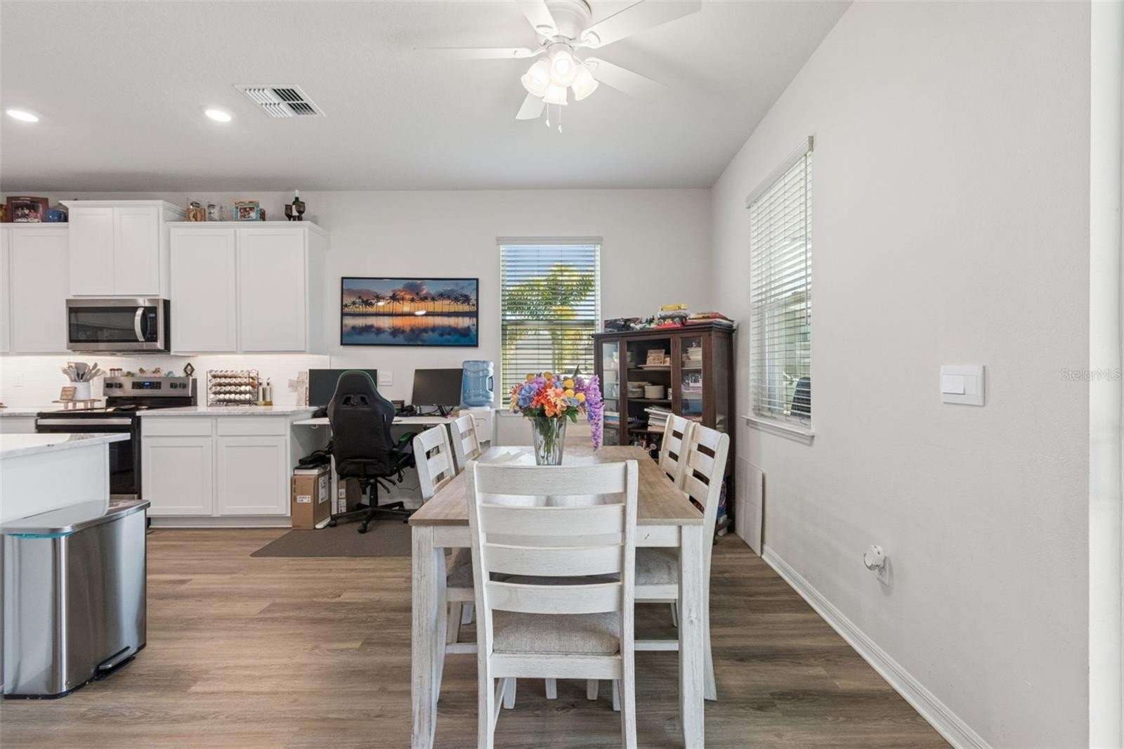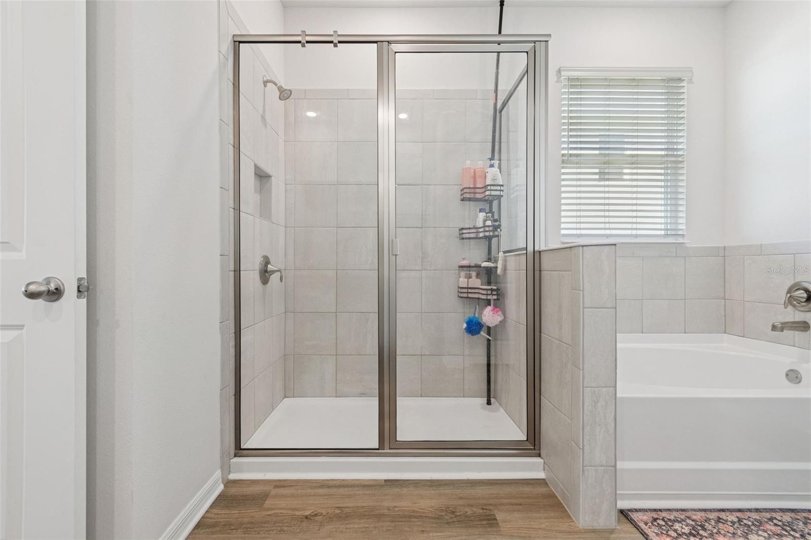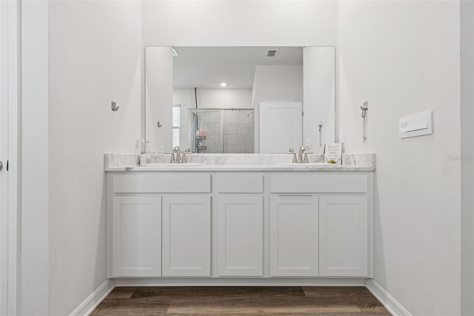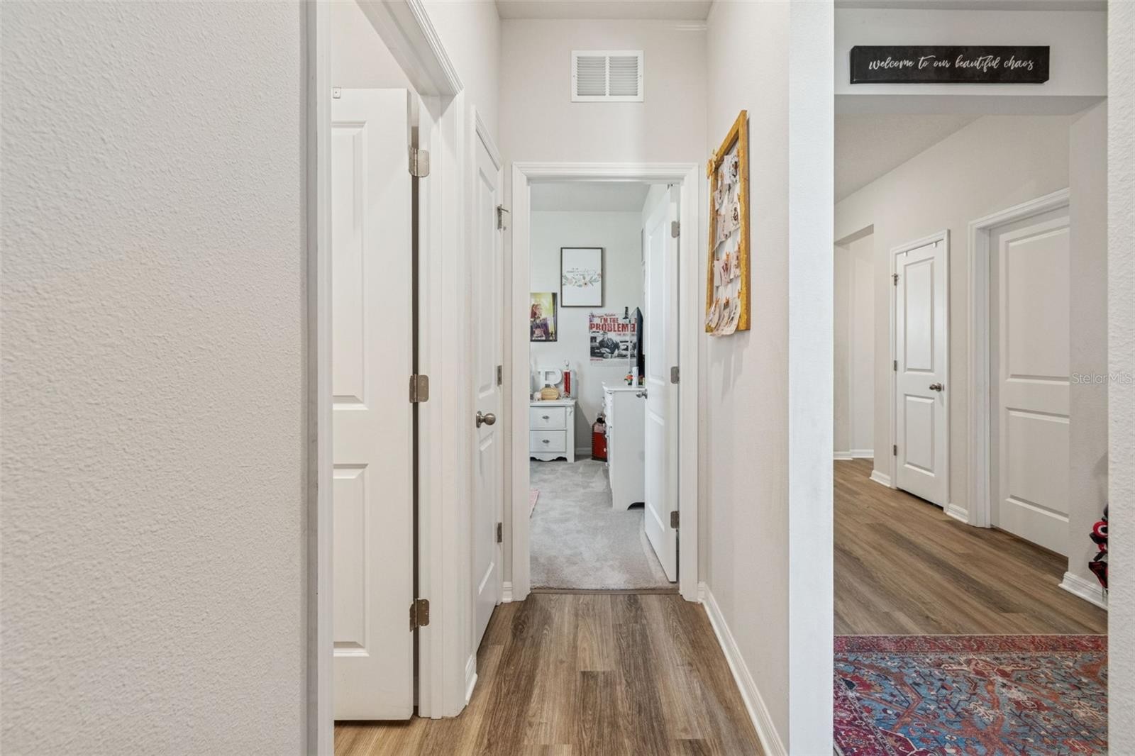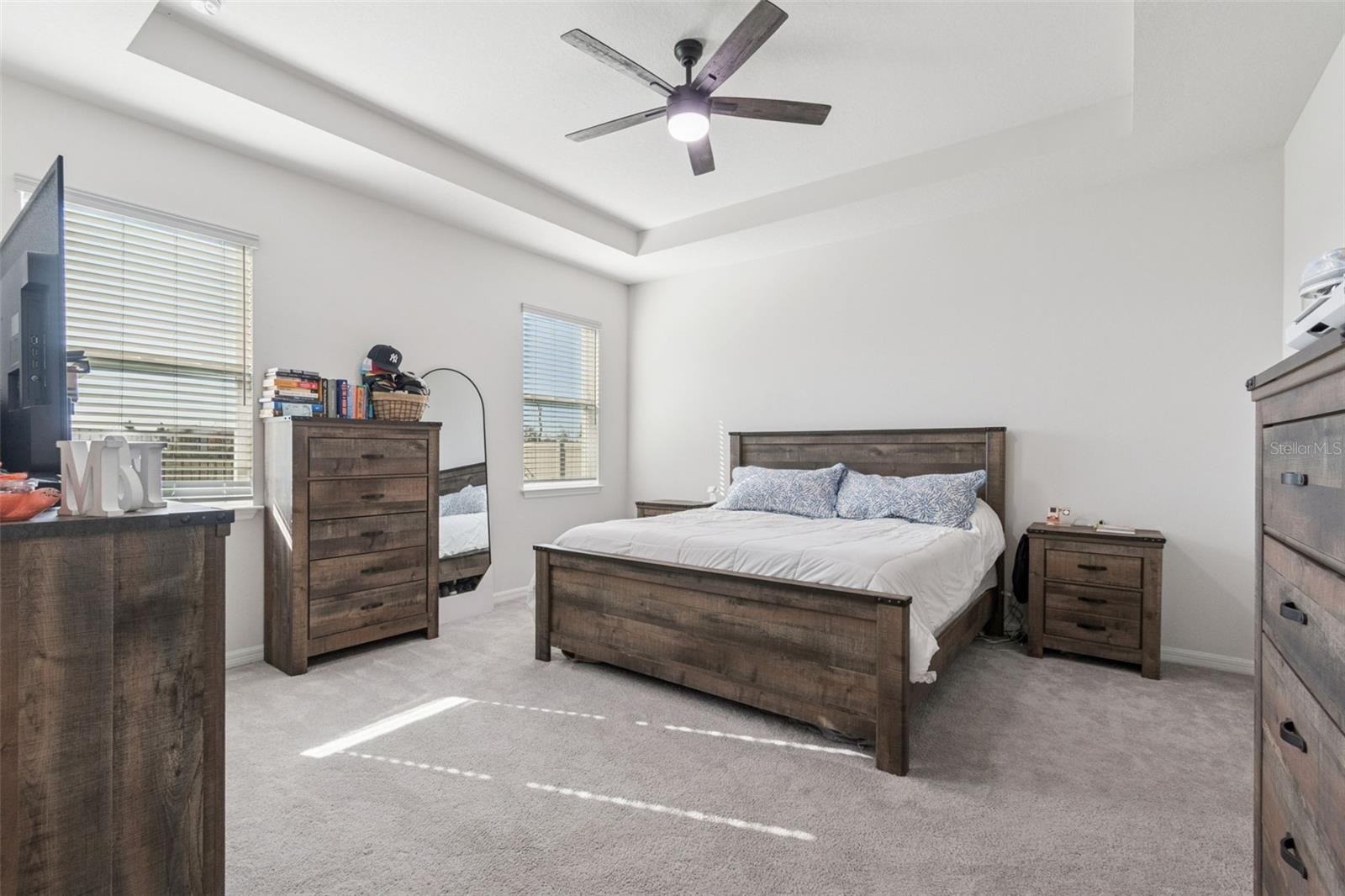 Welcome to easy Florida living in Bella Lago. This beautifully maintained one-story, all-concrete-block home offers the perfect blend of comfort and open-concept design across 2,045 sq. ft. of thoughtfully used space. Step inside to a bright, flowing layout where the open floor plan connects the living, dining, and kitchen areas—ideal for both everyday living and entertaining. The kitchen features white cabinetry, quartz countertops, and a clean, modern feel that continues into the bathrooms with matching quartz finishes. The primary suite is a true retreat with a tray ceiling, his-and-hers walk-in closets, and a spacious ensuite bath complete with dual sinks, an extra-large vanity, garden tub, separate shower, and private water closet. At the front of the home, you’ll find two secondary bedrooms sharing a full bath, offering a smart layout for guests or family. A fourth bedroom and half bath provide added flexibility for an office, nursery, or flex space. Enjoy Florida’s indoor-outdoor lifestyle with sliding glass doors that lead to a screened-in lanai overlooking peaceful pond views. Updated landscaping and palm trees enhance the curb appeal and tropical feel. Located in the highly desirable Bella Lago community, residents enjoy access to two resort-style pools, a fitness center, a playground, and a dog park. A spacious 2-car garage, quality concrete block construction, and a corner lot make this home as practical as it is beautiful. This one checks all the boxes for comfort, style, and location!