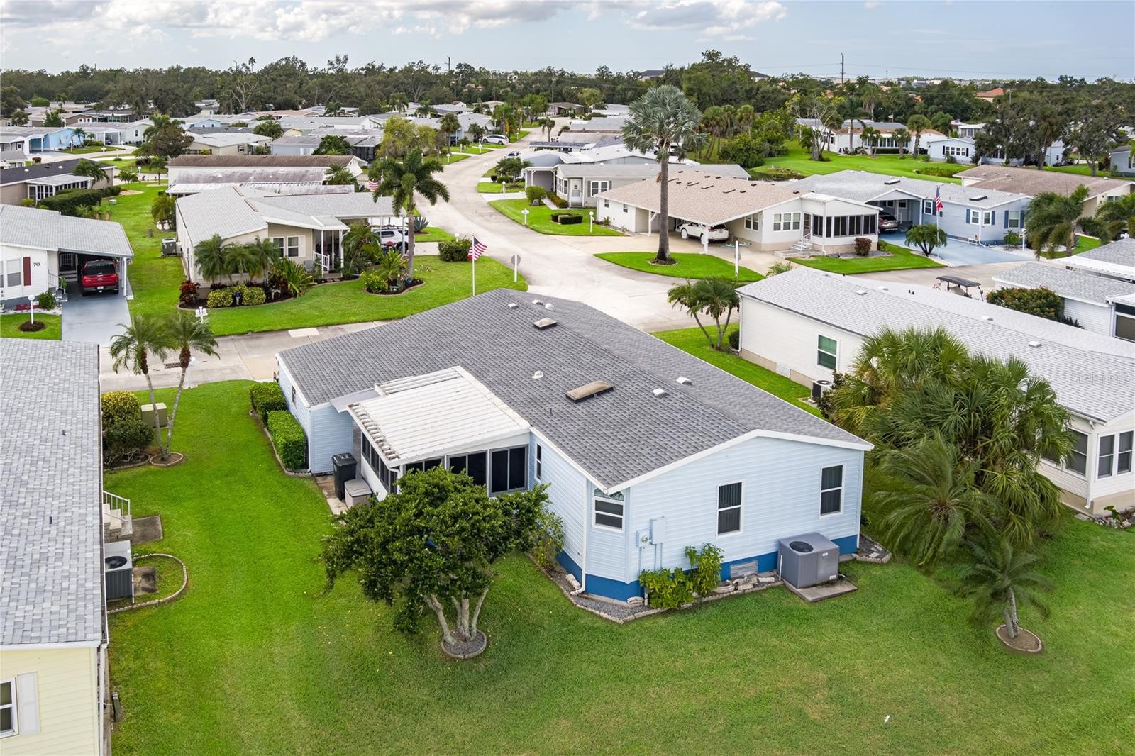 Serene water views and beautifully maintained, this turnkey furnished home is freshly painted inside and out ready for its new owners. Move-in ready with 2 bedrooms, 2 bathrooms and perfectly situated on a quiet pond lot in the desirable 55+ land-owned community of Ridgewood Oaks. The home offers great curb appeal with a custom driveway, LeafFilter gutter guards guaranteed for life, and a welcoming front porch finished in elegant porcelain tile. Inside, the open floor plan features vaulted ceilings, abundant natural light, skylights and beautiful laminate flooring in key areas. The spacious living and dining areas flow seamlessly together, with built-in dining room storage and plenty of room for entertaining. The eat-in kitchen is both stylish and functional, showcasing newer stainless-steel appliances, freshly painted cabinets, new kitchen faucet, beautiful counters and large windows that create a bright, cheerful space. The primary suite is generously sized with a king bed, a large walk-in closet, and an updated ensuite bathroom featuring a Bath Fitter tiled shower installed in 2018. The second bedroom is perfect for guests or a home office, while the separate laundry room offers newer appliances, extra cabinetry, and a convenient folding station. A fully enclosed all-weather lanai off the laundry room provides a relaxing spot to enjoy tranquil water views and Florida’s natural beauty. Additional highlights include a newer roof (2022), newer AC and ductwork (2018) and an oversized workshop/storage shed offering ample workspace and storage options. With low quarterly fees that cover internet, cable and lawn maintenance this home provides easy, low-maintenance living. Residents of Ridgewood Oaks enjoy resort-style amenities including a clubhouse, pool, spa, tennis and pickleball courts, shuffleboard, and an outdoor fitness area. The community is golf cart and small-pet friendly, with 24-hour gated security and convenient access to I-75 and I-275 to Sarasota, Tampa, St. Pete, Clearwater and Tampa as well as a multitude of new restaurants, shopping, the Ellenton Outlet Mall, and the beautiful beaches of Anna Maria Island.
