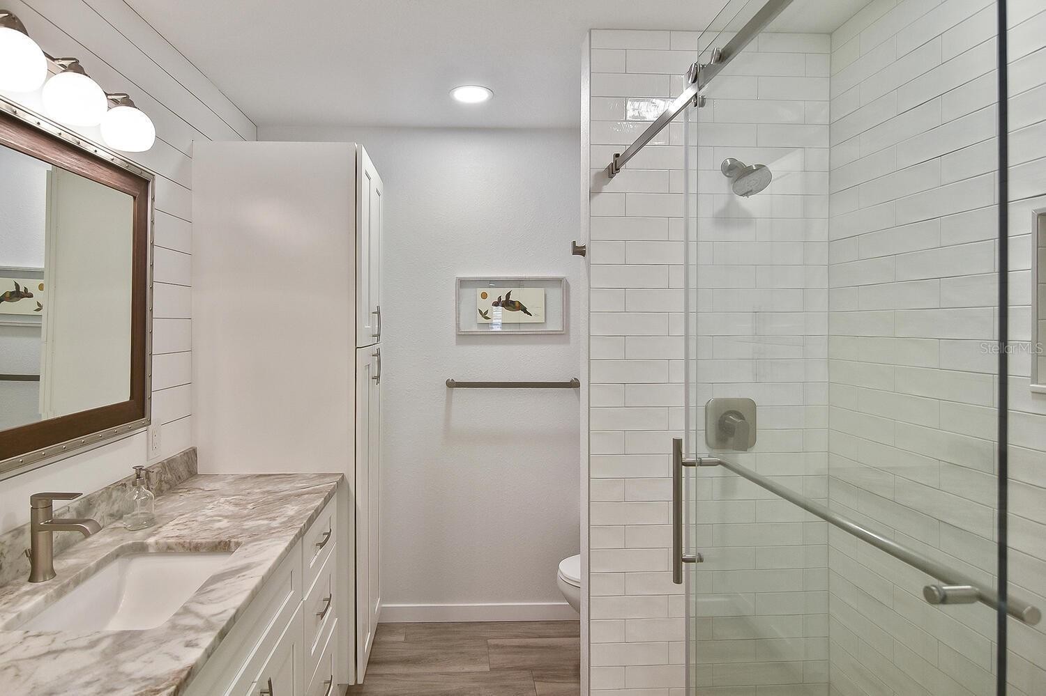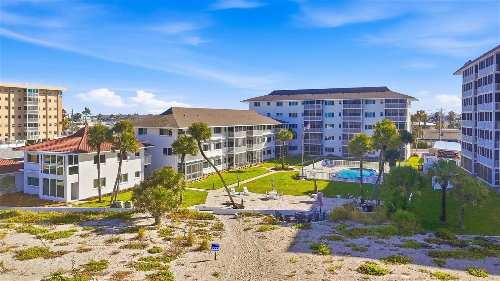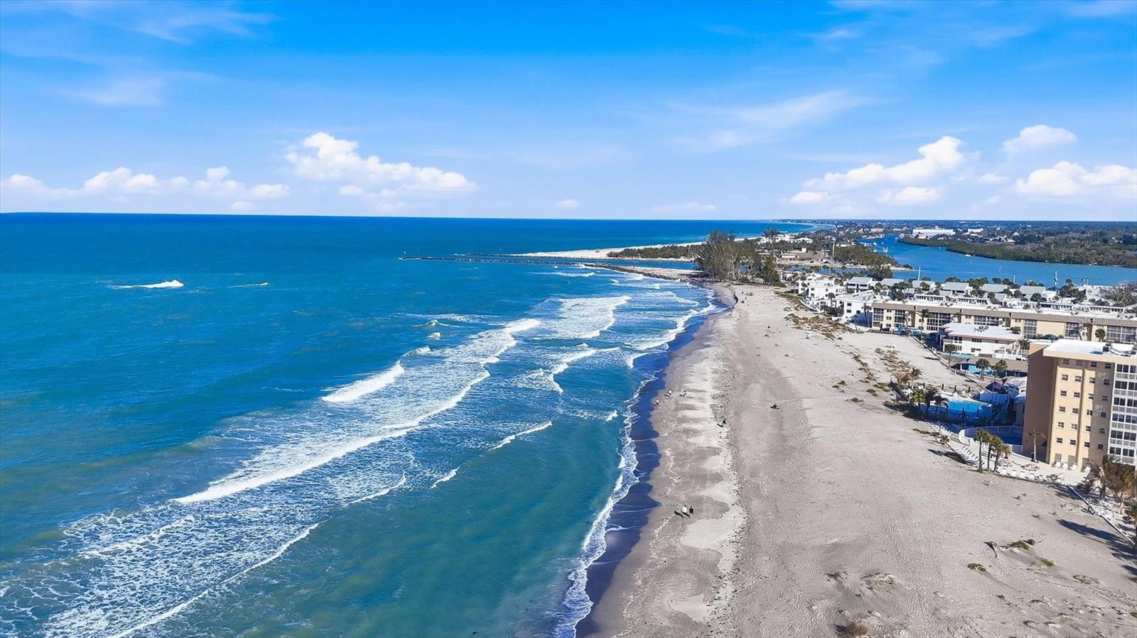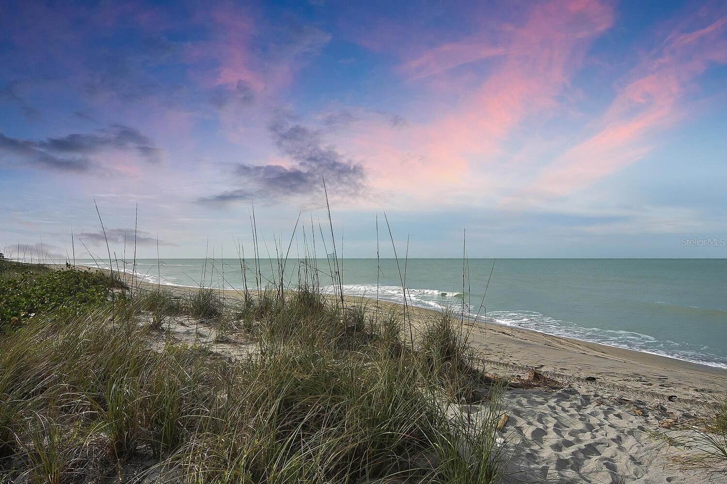 Looking for a great location & no maintenance? Come take a look! Close to everything, including the beach & downtown Venice. Bright & light, this ground floor corner unit was completely renovated in 2021. With no storm damage at all from the last 3 hurricanes, this is a rare find! The complex boasts of all new hurricane windows & interior sliders in the past year. The building has a fresh new look with new paint, landscaping, & new pool! This unit boosts of wood-look tile floors though-out, Plantation shutters & blinds on all windows, new lighting, ceiling fans & new pantry. The kitchen was renovated a couple of years earlier with granite countertops, white cabinets & large pass-through opening from the kitchen with breakfast bar. Both new bathrooms feature showers as well as new vanities, faucets, & granite countertops. Ceilings were raised & all walls painted in the makeover. The hurricane windows & door on the lanai has new roll blinds for turtle season & new tile flooring. The primary bedroom walk-in closet features a barn door & built-ins. The storage closet inside the condo has ample storage, and there is a dedicated storage closet in the three-story building. The electrical has been updated, all new plumbing supply lines, drains & HVAC duct work has been replaced. Do all your laundry at one time! The laundry center is right down the walk, with 3 industrial sized washers & dryers at your disposal. The newly renovated pool is heated in the winter & on the enlarged patio are grills & tables for alfresco dining. The firepit is an added bonus when the air is slightly chilly! As you look out the condo, through the lanai, the yard, pool, patio & beach is your own “backyard”, like being in a house but with no maintenance for you! This is the place memories can be made, days spent with friends, evenings on the beach watching the sun set over a toast. With only 34 units, it is easy to get to know others. During the winter months there are always activities: between food trucks, games, parties, book clubs, pot-lucks, firepit nights and celebrations. And the beach is right out your “back door”, no elevator required! Easy to get to downtown, Freedom Boat Club, Venice Yacht Club, Higel Marine Park, Crow’s Nest and the South Jetty!