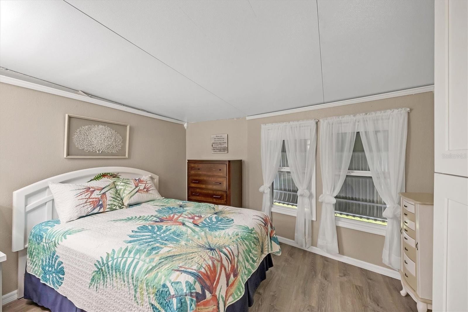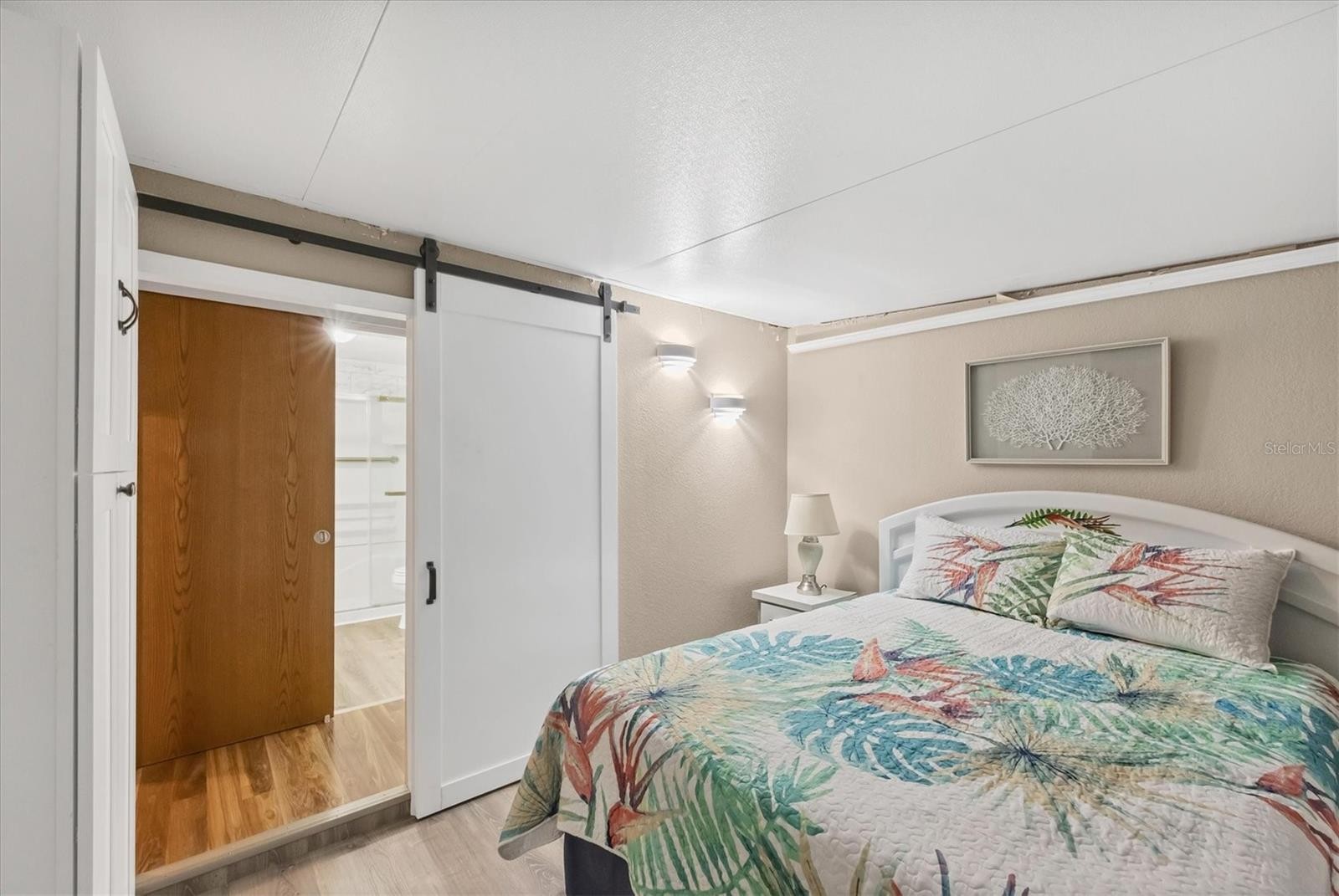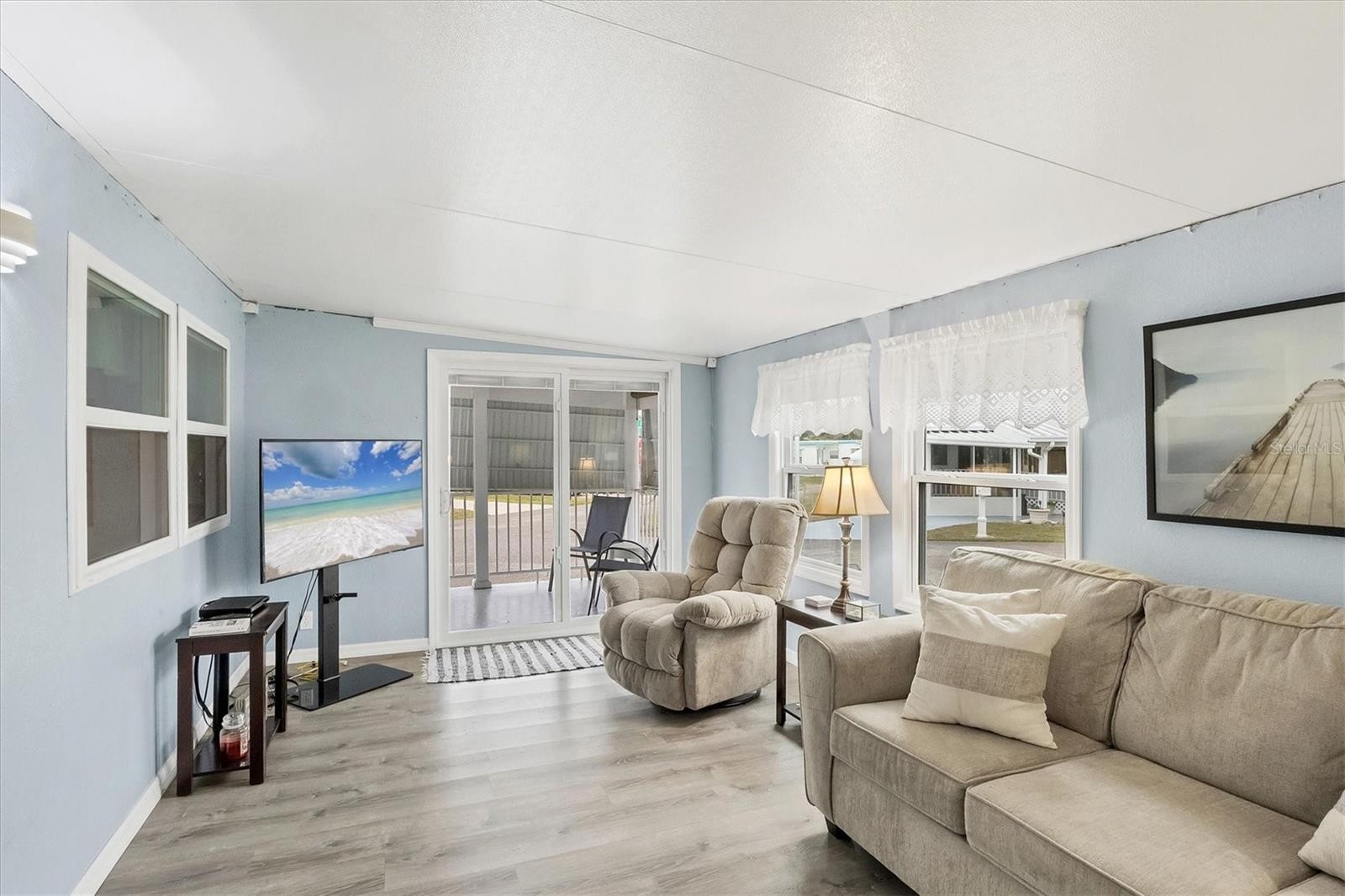 Welcome to Tidevue Estates, a land-owned, active 55+ community! This rarely available one-car garage home with workshop and extra storage sits on a concrete slab. Truly move-in ready and turn-key furnished, this home has been thoughtfully updated throughout. Enjoy peace of mind with a brand-new roof (2024), all new windows, A/C replaced in 2022, and water heater updated in 2016. The updated kitchen features all-new cabinets, a refrigerator and stove (2019), plus two refrigerators with ice makers. The bright and spacious living room is perfect for entertaining. Laminate flooring flows throughout the home, and the primary bathroom has been updated with a walk-in shower. The second bedroom has its own private entrance so when guests come to visit they can just go right out for their monrning run/walk. Relax on the epoxy-coated front porch (2020) and watch the world go by. Enjoy the Florida sunshine on the open patio perfect for grilling out. Newer washer and dryer included. Conveniently located within walking distance to the recreational center and pool—Florida living at its best! Low HOA of only $600 annually. Pets are not permitted. Plenty of activities to keep you busy in this community. Take a water aerobics class in the solar-heated community pool or work on your tan. The community library has free WI-FI connection. Updated fitness center. Meet friends and make new ones for a game of indoor pickleball, bocce ball, or shuffleboard. Join the Golf League. Take a bike or golf cart ride to Veteran's Park to watch the wildlife and sunset. Ellenton Premium Outlet Mall, restaurants, and medical facilities are just minutes away. Easy access to I-75. Not to mention a short drive to our beautiful Gulf Beaches.