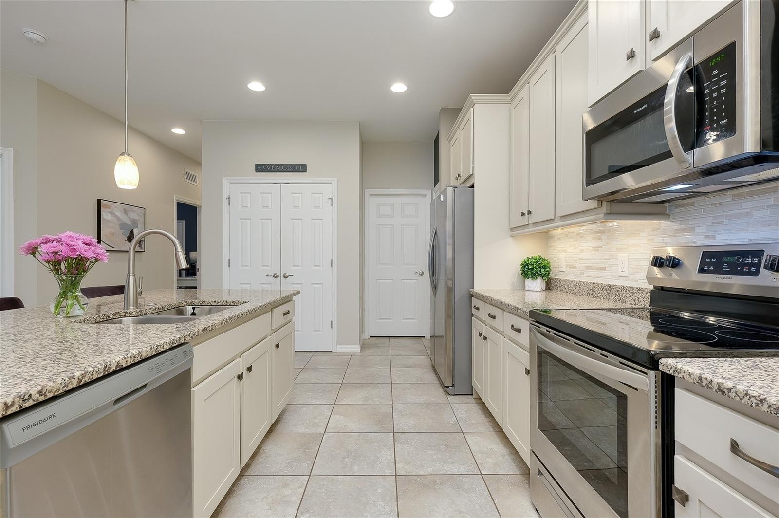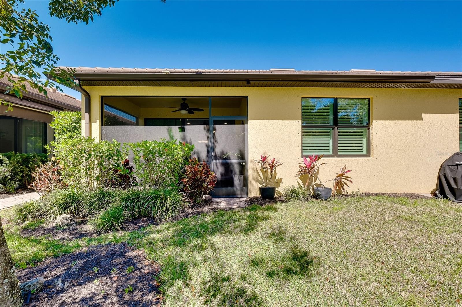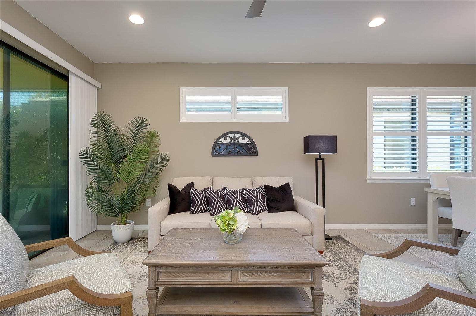 Welcome to The Preserve, a charming and boutique gated enclave located within the sought-after West Villages District of Wellen Park. Experience easy Florida living in this beautiful villa, lightly lived in as a mostly part time home and perfectly positioned on a premium preserve homesite that offers rare privacy and peaceful views—something you won’t often find in this community. Plus, the property is located in Flood Zone X, meaning no flood insurance is required. This thoughtfully designed home features 2 bedrooms, 2 full baths, and a versatile office/den. You’ll appreciate the seamless ceramic tile flooring throughout—no carpet anywhere—along with upgraded lighting and ceiling fans. Elegant plantation shutters are installed throughout the entire home, offering a timeless look along with privacy and low-maintenance convenience. A discreet side entry adds to the home’s curb appeal and functionality, while a recently added paver sidewalk provides easy access to the backyard. Relax and unwind on the screened lanai, complete with paver flooring, a ceiling fan, and tranquil preserve views surrounded by lush greenery. The kitchen is beautifully appointed with granite countertops, 42” upgraded cabinetry with under-cabinet lighting, stainless steel appliances, a stylish glass and stone backsplash, upgraded faucet, garbage disposal, and large pantry and additional storage closet. The laundry room includes additional 42” cabinetry for extra organization. In the primary suite, you’ll find space for a king-sized bedroom set, dual walk-in closets, and a well-appointed en-suite bath featuring dual vanities with granite countertops, upgraded cabinetry, a fully tiled walk-in shower with glass enclosure and a large linen closet. The guest bedroom is privately situated on the opposite side of the home and includes a spacious closet. The guest bath is equally upgraded with granite countertops, enhanced cabinetry, and a tiled shower all the way to the ceiling. Additional highlights include a spacious two-car garage with epoxy flooring, utility sink, automatic opener, and ample storage. The home’s neutral coastal color palette makes it truly move-in ready—just bring your belongings and start enjoying the lifestyle. Residents of Preserve enjoy maintenance-free living along with access to a resort-style amenity center featuring a pool, clubhouse, fitness center, bocce ball, and pickleball courts. Ideally located just minutes from CoolToday Park, the spring training home of the Atlanta Braves, where you can enjoy games, events, a Tiki bar, and more. You’ll also be close to the exciting Wellen Park Downtown area, offering shopping, dining, entertainment, farmer's market and outdoor recreation around a scenic lake. With easy access to I-75, downtown Venice, and the beautiful Gulf Coast beaches, this home offers the perfect blend of comfort, convenience, and Florida charm.