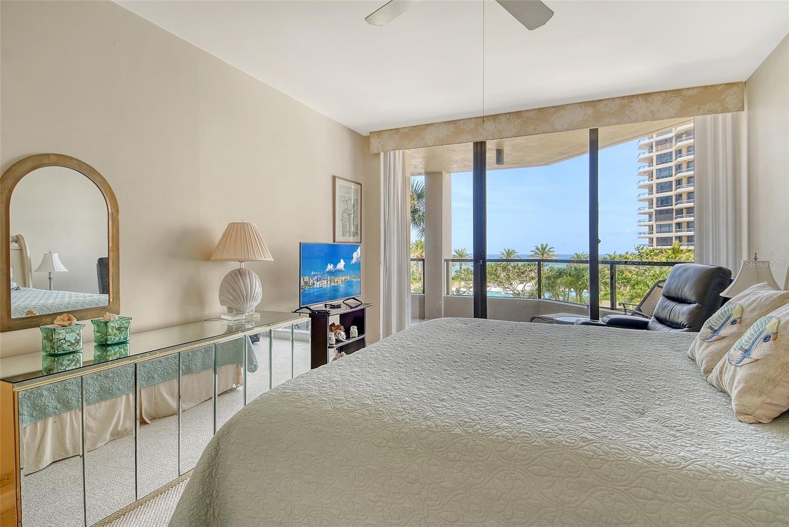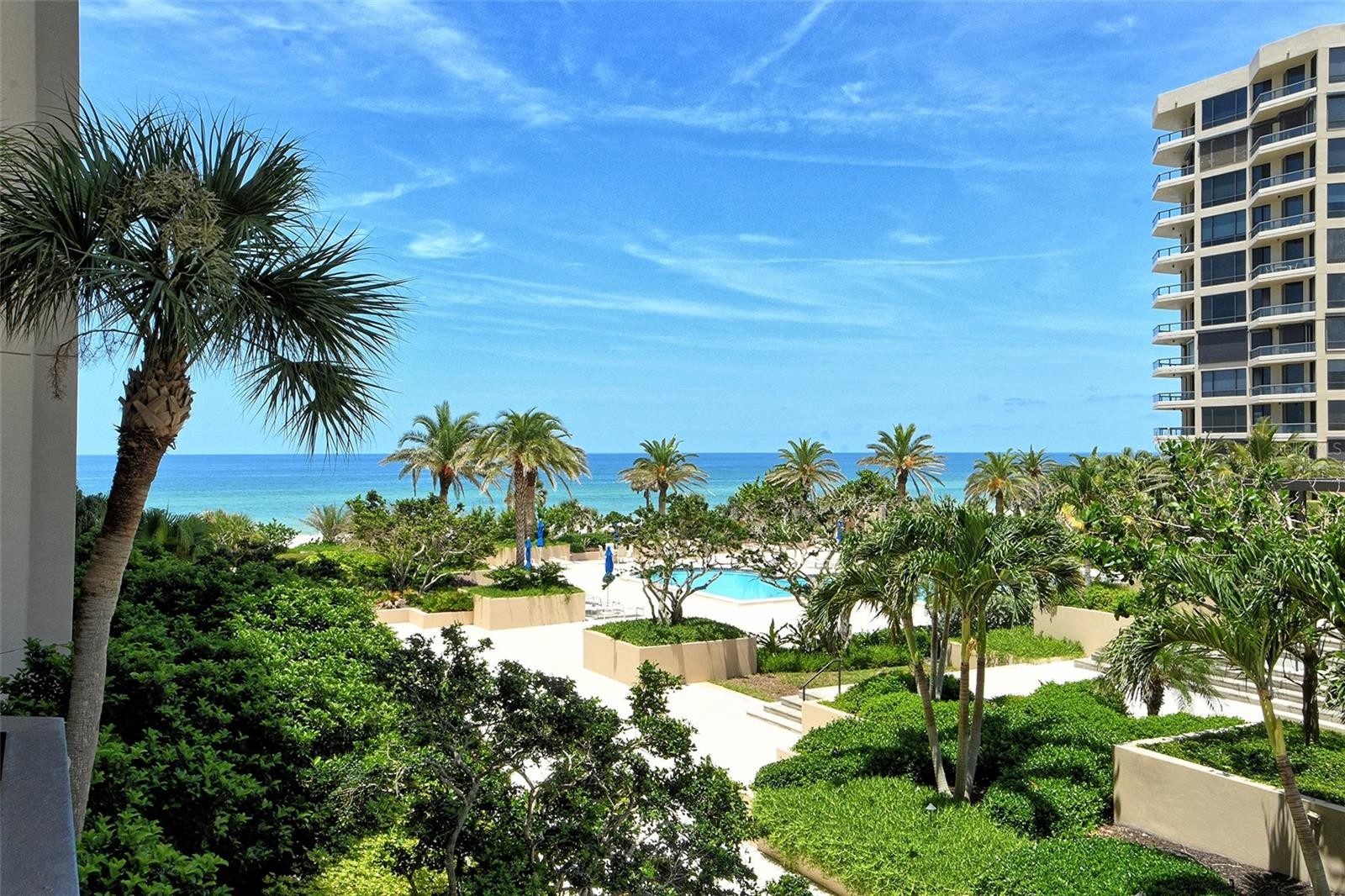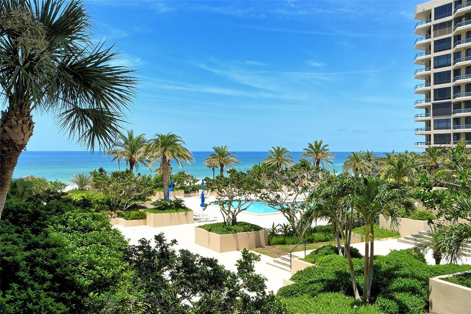 Exceptional opportunity to own this beautiful first-floor condominium at The Promenade, offering the perfect balance of comfort, and coastal charm with nearly 400 feet of private beach frontage and partial views of the Gulf of Mexico from almost every room. This spacious two-bedroom, two-bathroom split floor plan features a bright, open layout ideal for entertaining or relaxed living. The kitchen flows seamlessly into the expansive living and dining areas, creating a connected and inviting space. Enjoy stunning northwest sunset views from the comfort of the great room or step outside to the private balcony for a peaceful retreat overlooking the Gulf. The elegant primary suite offers balcony access, a large walk-in closet, and a spa-like en-suite bath with a soaking tub and walk-in shower. The generously sized guest bedroom is perfect for visitors or can be easily adapted as a home office or hobby room. The Promenade offers a true resort-style experience with a 24-hour staffed gatehouse, full concierge services, and secure under-building assigned parking. Residents enjoy a heated Gulf-front pool and spa, a spacious sundeck with shaded gazebo and grilling area, four Har-Tru tennis courts, a well-equipped fitness center, a craft room, and inviting social spaces. Private beach access lined with charming tiki huts completes the picture of effortless coastal living. Don’t miss this rare opportunity to embrace the ultimate Longboat Key lifestyle, where every day feels like a vacation