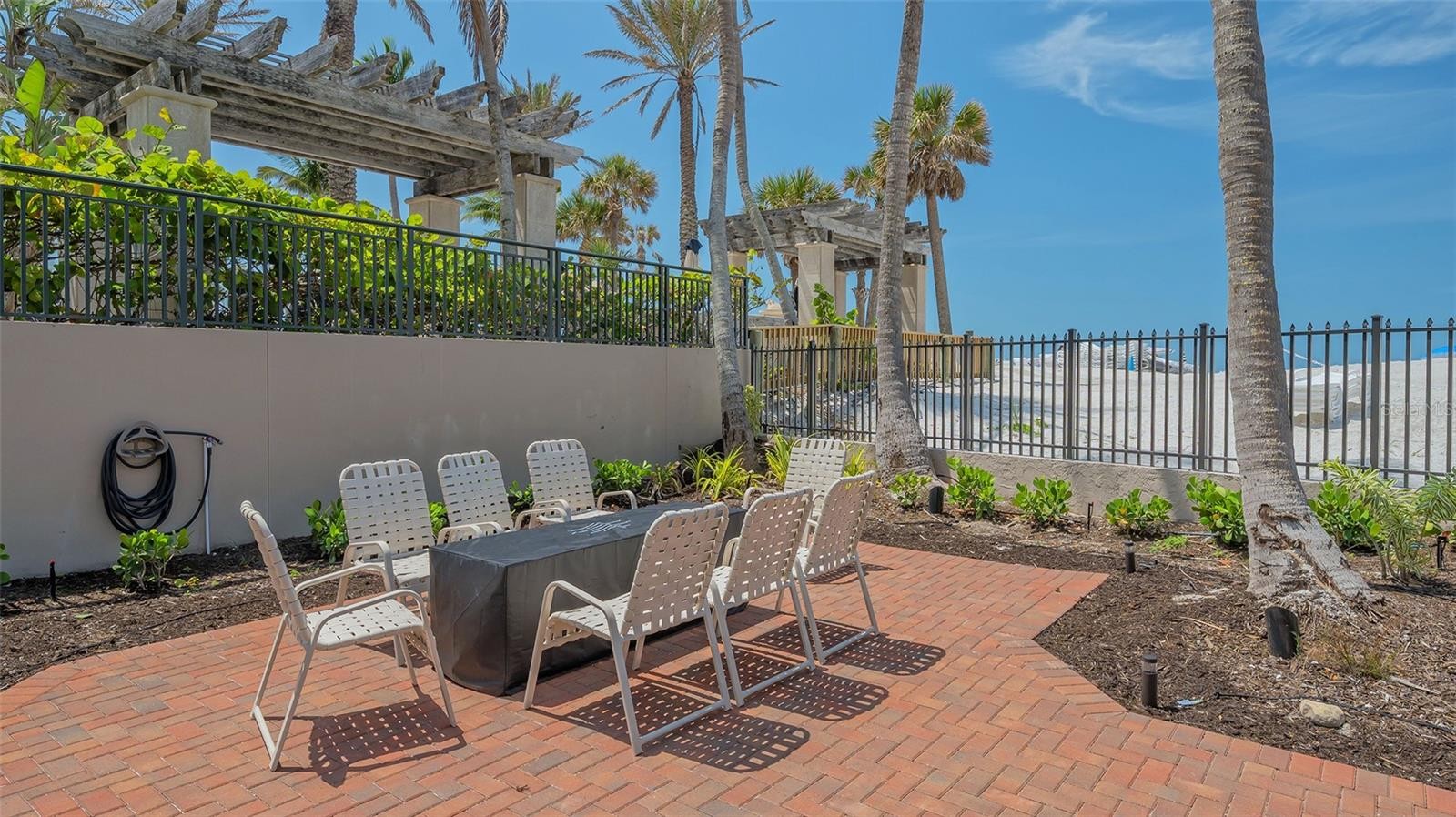 Positioned on the ninth floor of Lido Beach Club, this fully renovated Gulf-to-bay residence captures breathtaking views from nearly every room. Located at 1212 Benjamin Franklin Drive, this two-bedroom, two-bath residence offers 1,400+ square feet of interior space and an open layout designed to maximize light, sightlines, and indoor-outdoor living. From the moment you enter, the reimagined floor plan creates a seamless flow between the living, dining, and kitchen areas. Expanses of impact-rated windows and sliding glass doors frame panoramic vistas of the Gulf of Mexico, Sarasota Bay, and the city skyline beyond. Tile flooring runs throughout, reinforcing the clean, coastal aesthetic and low-maintenance appeal. The updated kitchen is thoughtfully designed with quartz countertops, solid wood custom cabinetry, stainless-steel appliances, breakfast bar seating, tile backsplash, and a wine refrigerator. Pendant lighting and sleek finishes elevate the space while maintaining functionality for everyday living and entertaining. The living room opens directly to the elongated terrace, where east-facing exposure delivers beautiful morning light and dual water views. Both bedrooms also feature terrace access, extending the living space outdoors and offering private vantage points to enjoy sunrise skies and shimmering Gulf waters. The primary suite is positioned on the north side for privacy and features a walk-in closet and a renovated bath with marble counters, updated vanity, and a glass-enclosed shower. The south-side guest bedroom, currently arranged as a den with custom built-ins and a planning desk, includes sliding glass door access to the terrace and an updated bath (2023). The split-bedroom configuration enhances privacy for residents and guests alike. Additional highlights include impact glass throughout, built-in features, high ceilings, central air (replaced in 2020), newer water heater (2020), and covered assigned parking. Lido Beach Club offers a secure, beachfront lifestyle with a private lobby entrance and direct access to Gulf shores. Each residence includes a private storage locker located on the unit floor, additional exterior storage space, and access to a convenient community laundry room on every level. The pavered pool deck surrounds a heated swimming pool and provides an inviting setting for relaxing or gathering with friends. Residents enjoy two grilling stations and a beachside fire pit area with seating—ideal for sunset evenings along the Gulf. Recreational amenities include a pickleball court, a game room with ping pong and billiards, a well-equipped fitness center, library, club room with catering kitchen, social room, and a dedicated meeting room for community events. Located minutes from St. Armands Circle, residents enjoy world-class shopping, waterfront dining, and vibrant cafés. Downtown Sarasota is just over the bridge, offering the Sarasota Opera House, Florida Studio Theater, Selby Gardens, Marina Jack, and The Bay Park. Whether enjoying morning walks along the sand, boating on Sarasota Bay, or evenings in the city, this ninth-floor Lido Beach residence delivers exceptional coastal living with expansive water views and move-in ready comfort.