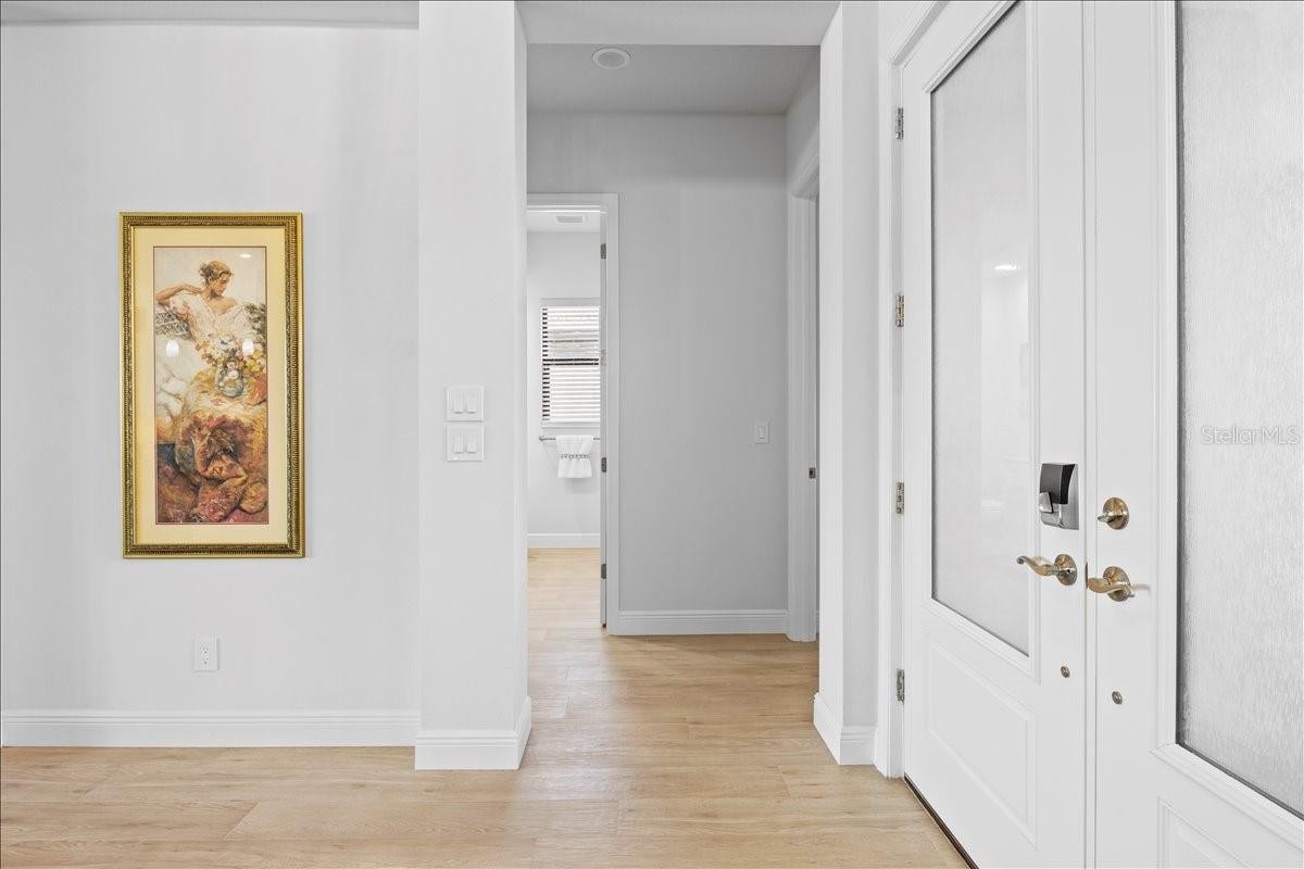 Under contract-accepting backup offers. BRING YOUR TRUCK!!! For the most discriminating buyer, when only the best will do, this home is for you! Situated on a cul-de-sac on one of the nicest, most private lots in the neighborhood. Curb appeal is at the height featuring crisp landscaping, a corner lot setting flanked by trees and adorned with Bahama Shutters. From the moment you enter through the enclosed, screened front porch you will be dazzled as you take in A MOST EXTENSIVE VIEW OF THE POND - arguably the most beautiful view in the neighborhood. This thoughtfully designed Lee Wetherington River Wilderness home features open concept living and showcases elevated finishes throughout. This Royal Palm EXTENDED MODEL is a true 3 Bedroom, 3 Bath home WITH A DEDICATED OFFICE/DEN/STUDY/MIL SUITE OR 4TH BEDROOM. The split floorplan provides privacy for both the owner and guests with two bedrooms and a bath offset from the main area of the house. An open concept dining room/family room (that has been extended by 5 feet) and kitchen flow seamlessly to maximize the captivating view. A fully-pocketing sliding door spans the full width of the family room and leads to the large lanai featuring a hot tub that is NEGOTIABLE. The primary bedroom continues to capitalize on the view that greets you every morning. Step into the kitchen, a culinary enthusiast’s dream, with custom cabinets, roll outs in the cabinets, TWO PANTRIES, GE Cafe appliances and oversized CAMBRIA center island. Tucked away to the back of the house off the family room is a private office and full bath. This room enjoys unparalleled views of the pond that will leave you spellbound. This home has more weather protection than most - the windows and doors are all impact resistant. In addition, there is automated hurricane protection on the back lanai. A WHOLE-HOUSE GENERATOR provides peace of mind during weather events with TWO 120 GAL PROPANE TANKS ensuring that you will never be left without power. The THREE-CAR OVERSIZED GARAGE (27.8X 24.2 -- expanded by 4 feet) will fit most any truck height or length. The hybrid water heater provides extra cooling in the garage and the icynene insulation keeps the attic cool enough to provide a storage space (8x10) to keep stored items cool and dry. The Cypress Glen HOA fee provides maintenance free lawncare that includes irrigation, fertilization, pruning and mowing. RW is an established community with winding, tree-lined streets with tall oaks and mature landscaping. Walkers, bikers and neighbors walking their dogs set the scene for an active and social community. The Club offers golf, tennis, social activities, pickleball, pool and more. Boat and RV storage in community. For the nature lovers, there are hiking trails and abundant wildlife. There are two 24-hour manned gates. CLUB MEMBERSHIP IS OPTIONAL. Golf and dining is open to the community. There is a COMMUNITY BOAT RAMP that is open to the entire community and provides direct access to the Manatee River. RW is PERFECTLY LOCATED! Strategically positioned between St. Pete and Sarasota, access to 2 airports (45 min.) several hospitals are available to the north and south. Ft Hammer Park located on the beautiful Manatee River is just minutes south of the front gate and features a boat ramp, fishing pier plus picnic pavilion. Lakewood Ranch and Sarasota are nearby where fine dining and shopping are within easy reach. WASHER, DRYER, GARAGE REFRIGERATOR AND FOUNTAIN DO NOT CONVEY. HOT TUB IS NEGOTIABLE.