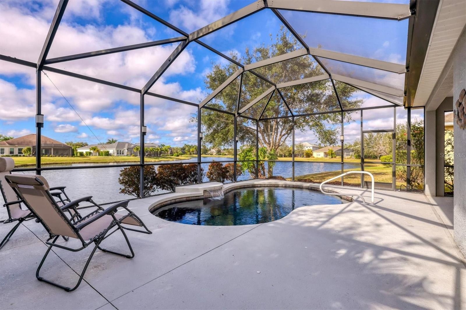 Welcome to your piece of Paradise! This Turnkey-Furnished 3-bedroom, 2-bath home with a den/office/flex room perfectly positioned on a serene lake with a screened, heated saltwater pool and unobstructed water views is just what you have been looking for! Designer furnished throughout with high-quality Tommy Bahama furnishings, no expense was spared in this immaculate residence. Located in the gated community of Central Park, the home features a spacious great room, open floor plan, and an impressive list of upgrades. Highlights include newer windows, upgraded cabinetry, cultured marble countertops, and top-of-the-line GE Monogram stainless steel appliances with natural gas. The luxury primary suite offers dual sinks, tray ceilings, upscale fixtures, and a huge walk-in closet with custom shelving. Additional features include plantation shutters throughout, recessed lighting, security system, whole-house surge protector, custom closet systems, and tile in all wet areas. The extended screened lanai is ideal for entertaining, featuring ambient lighting surrounding the heated saltwater pool and showcasing breathtaking lake views. Central Park offers low HOA fees and outstanding amenities, including a 10-acre park, two dog parks, tennis and pickle ball courts, sports field, and splash pad. Enjoy the convenience of being near the elementary and middle schools and just minutes from I-75, UTC Mall, Lakewood Ranch Main Street, top-rated dining, and the beautiful Gulf Coast beaches. Taxes include CDD fee. Schedule your private showing today—this exceptional home is truly a must-see!