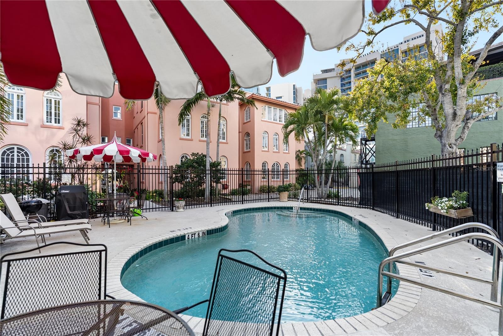 Set along iconic Palm Avenue in the heart of downtown Sarasota, the historic Frances Carlton offers a rare opportunity to own a piece of the city’s architectural and cultural history. Built in 1924 and listed on the National Register of Historic Places, this Mediterranean Revival landmark is a defining presence in Sarasota’s downtown, placing theaters, galleries, dining, the marina, and daily conveniences just steps from your door, while maintaining a sense of permanence and quiet elegance that has endured for nearly a century. Behind its distinctive pink façade, the Frances Carlton is an intimate boutique condominium of just 20 residences, thoughtfully maintained and known for its enduring construction and careful stewardship. The community is well managed with fully funded reserves and has completed its Structural Integrity Inspection, reflecting a long standing commitment to preservation, planning, and peace of mind. Amenities include a private pool, landscaped garden and meditation areas, and gated reserved parking. Inside, this beautifully remodeled one bedroom residence feels more like a small European home than a traditional condominium. The layout offers multiple defined rooms, creating a natural flow, privacy, and character that open plans simply cannot replicate. Windows on three sides fill the home with natural light throughout the day, while original architectural details and thoughtful updates strike a seamless balance between historic charm and modern comfort. The sunroom is a standout feature, framed by graceful arched windows overlooking Palm Avenue, with a subtle glimpse toward the water beyond. It is a space equally suited for morning coffee, reading, or quiet reflection, and a reminder of the building’s timeless relationship with its surroundings. The kitchen and living areas have been tastefully updated, preserving the integrity of the home while enhancing everyday functionality. This is a residence for those who appreciate architecture, walkable downtown living, and a sense of place that feels established and enduring. A truly special offering in one of Sarasota’s most admired historic buildings, ideal as a full time home or an elegant pied-à-terre in the cultural heart of the city.