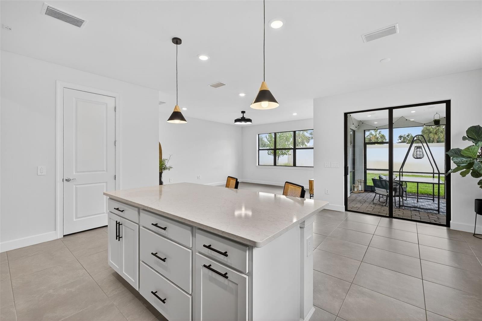 Move-in ready 4-bedroom home located in the gated Magnolia Ranch community with no CDD fees, ideally situated near Lakewood Ranch and I-75. Magnolia Ranch offers a blend of modern design and everyday comfort, and this beautifully built 2022 Highgate model features 4 bedrooms, 2 bathrooms, and 1,850 square feet of thoughtfully designed living space with ample room to add a swimming pool. The open-concept floor plan highlights a chef-inspired kitchen with quartz countertops, subway tile backsplash, stainless steel appliances, and a large center island ideal for entertaining and everyday living. Tile flooring flows throughout the main living areas into a light-filled great room and out to an extended covered lanai overlooking a private backyard retreat. From the front, enjoy peaceful pond views along with a paver driveway, tile roof, and professionally landscaped exterior that create impressive curb appeal. The spacious primary suite offers a walk-in closet and a spa-style bath, while the additional bedrooms provide flexibility for guests, a home office, or a growing household. Additional features include a 2-car garage with EV charger, hurricane shutters, and maintenance-free lawn care. With low HOA fees, no CDD, and convenient access to Lakewood Ranch, I-75, shopping, dining, top-rated schools, and the Gulf Coast beaches, this move-in ready Florida home delivers comfort, convenience, and a highly desirable location.