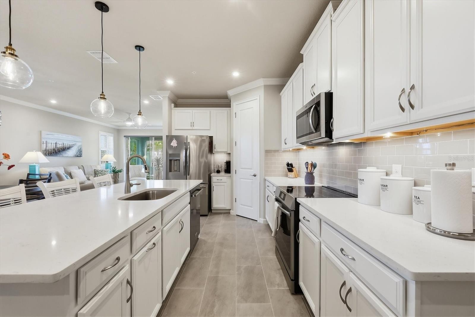Welcome to your dream home in the newly established gated community Sunstone, located in one of the top ranked master planned communities, Wellen Park! This 3 bedroom, 2 bathroom, flex room end-unit villa is packed with thoughtful upgrades designed for both style and peace of mind. The kitchen features an induction stove, upgraded appliances, under cabinet lighting and extra pendant lighting over the kitchen island, delivering efficiency and modern performance for everyday living and entertaining. A whole-house surge protector adds an extra layer of protection, while the epoxy-finished garage floor offers a sleek, durable space for storage or hobbies. The common area features crown molding throughout that also flows into the primary bedroom. Step outside to enjoy the south facing patio equipped with hurricane screens—perfect for year-round comfort. Inside, plantation shutters throughout the home add timeless elegance, privacy, and natural light control. Every detail has been carefully chosen to create a move-in-ready home that blends function, comfort, and quality. This gated community offers a wealth of amenities to enhance your lifestyle. Located in the center of the community, and a short walk from your next home, you will have access to a resort style pool, pickleball courts, fitness center, club house, dog park and green space. Sunstone also has a full time lifestyle director who plans community events. If you are looking to spend more time with friends and family at the pool, this community is maintenance free so you no longer have to cut your own grass! Conveniently located in the heart of Wellen Park, this home is less than 2 miles from Downtown Wellen Park which features brand new shops, restaurants, live music, weekly farmers market and monthly signature events. If you are a beachgoer, this property is 20 minutes away from 3 pristine Florida beaches! Wellen Park offers A-rated schools including Prodigy Early Learning, Primrose School, College Preparatory Academy at Wellen Park, and the State College of Florida. State of the art Wellen Park High School is currently under construction and opening for the 2026-2027 school year. Sarasota County has plans to add a future K thru 8 school to the campus. With numerous hospitals and medical providers nearby Wellen Park, and even more to come, you can be assured quality healthcare is close to home including Sarasota Memorial Hospital, HCA Florida Wellen Park, Millennium Physician Group, and more. Located in Flood Zone X so flood insurance is not required. Schedule your private showing today!