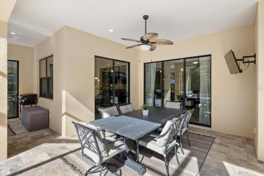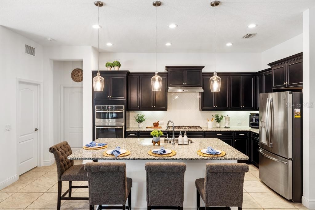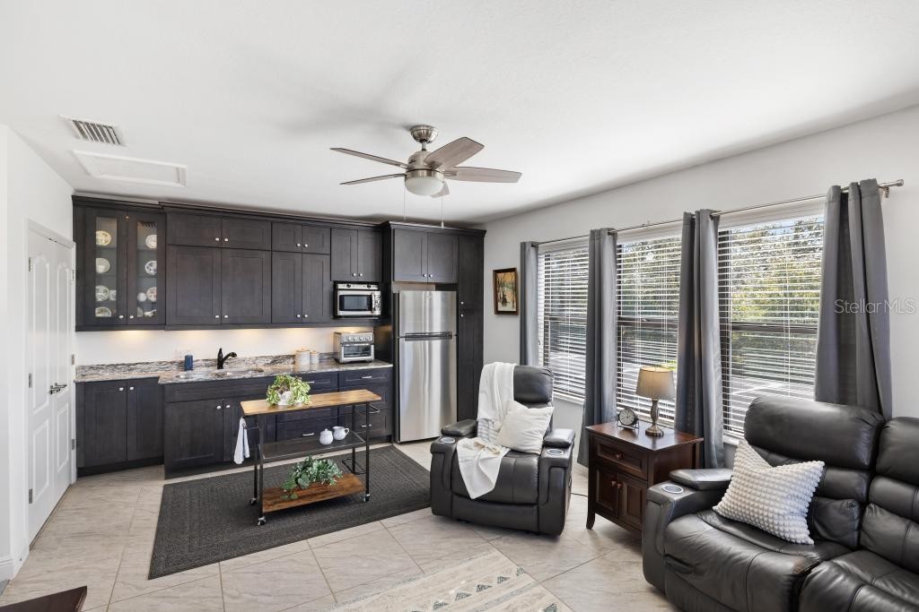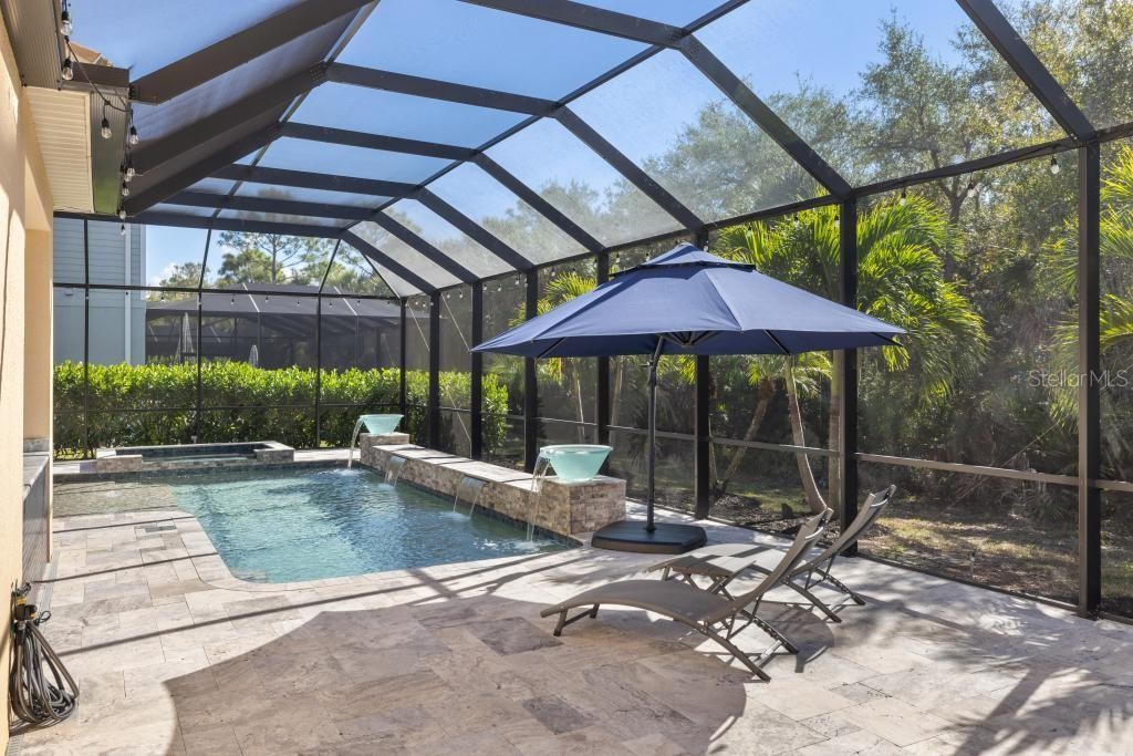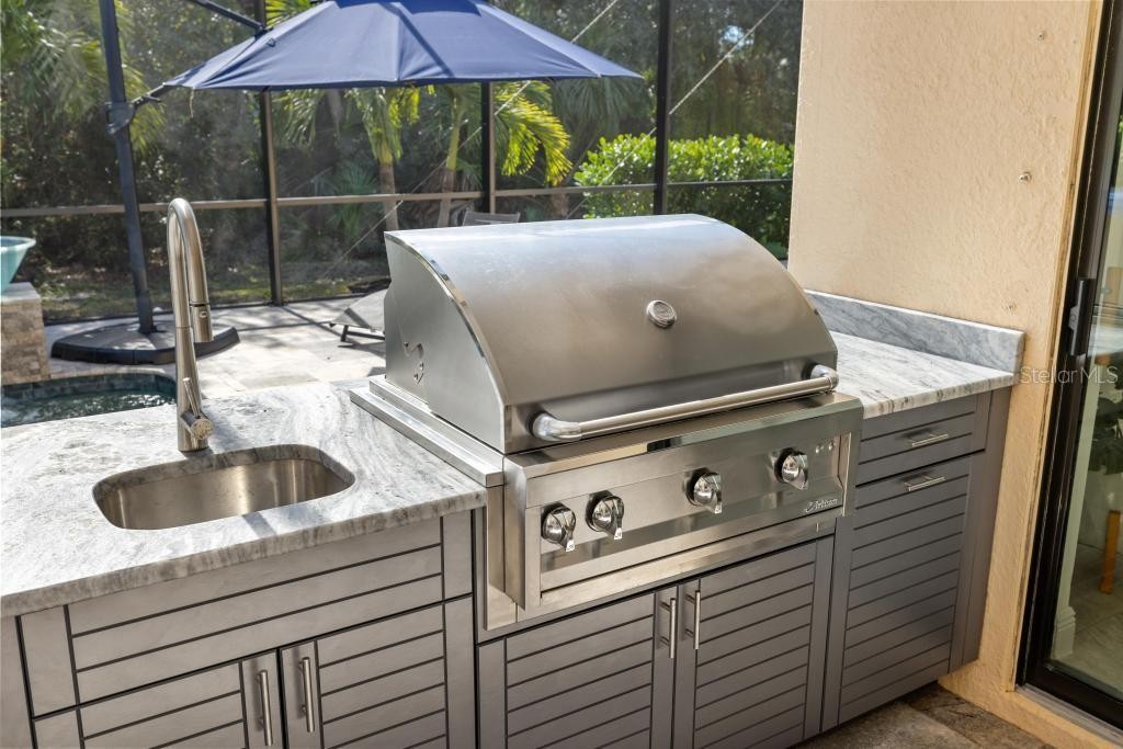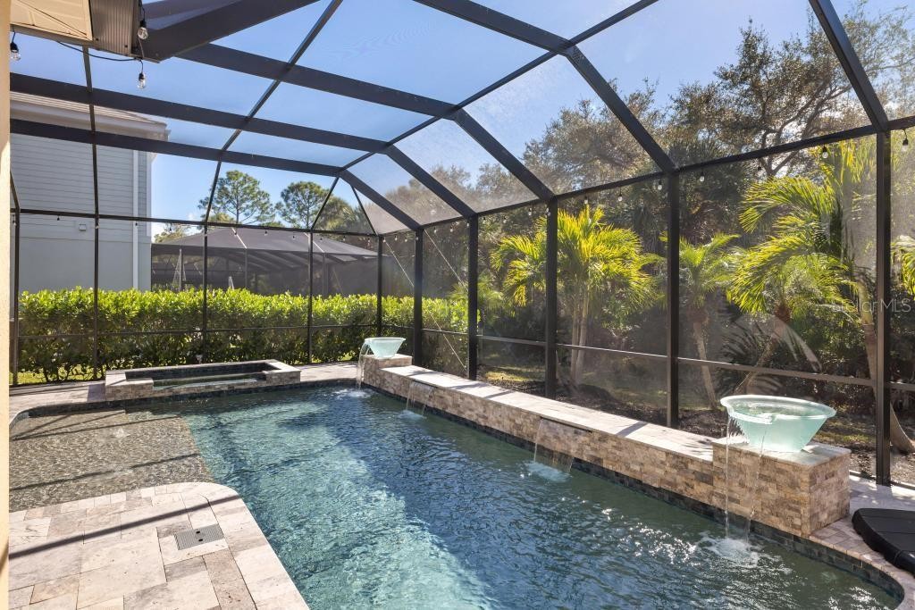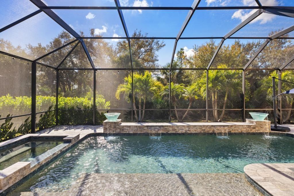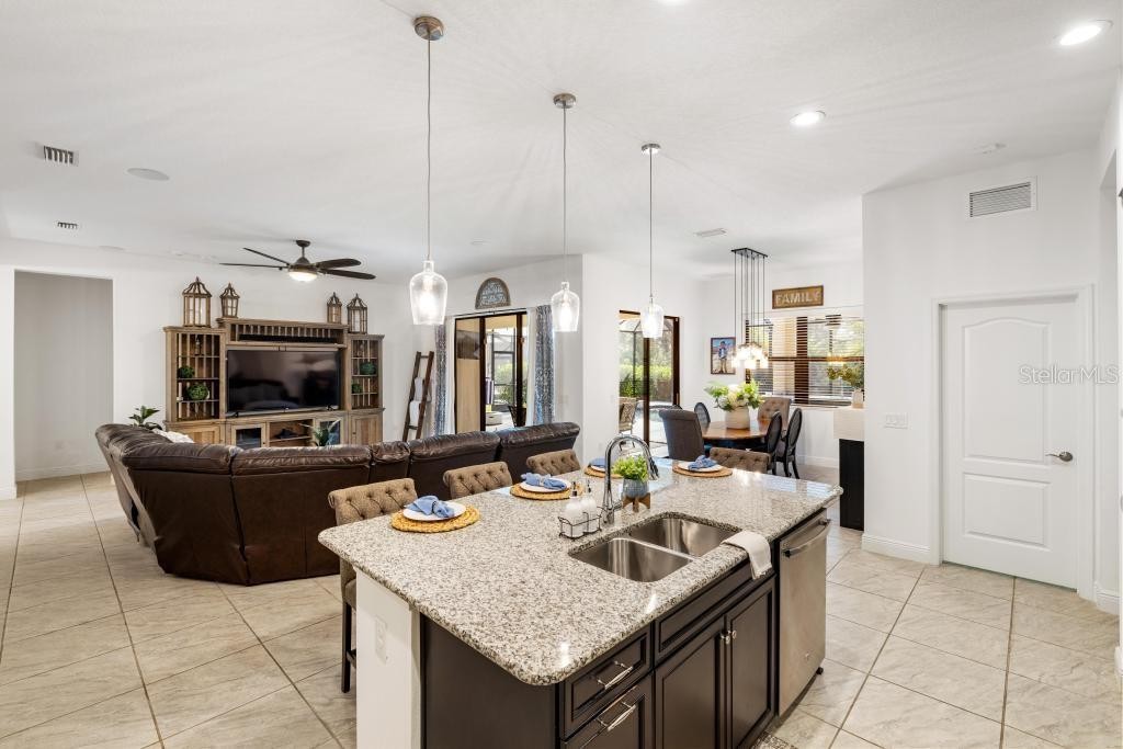 SPACIOUS, VERSATILE, RESORT-STYLE living in this Neal Communities Seabrook home! Featuring an X-FLOOD ZONE, SALTWATER POOL & SPA, and a rear SOUTHERN EXPOSURE backyard with an OUTDOOR KITCHEN that provides all day sun, ideally located near the main amenity campus in Grand Palm. This five-bedroom four-bathroom home includes a den/club room, a three-car garage, and a rare second-floor in-law suite complete with a built-in kitchenette, living area, bedroom, and full bathroom, making it ideal for multigenerational living or extended guests. The open great room showcases expansive sliding glass doors with wide views of the heated saltwater pool, outdoor kitchen installed in 2021, and private preserve backdrop, while the dining area and club room each offer additional direct access to the lanai for seamless indoor-outdoor living. The chef’s kitchen features stainless steel appliances, a gas range, in-wall ovens, granite countertops, under-cabinet lighting, abundant cabinetry, and a large granite center island with seating for six. A spacious pantry and laundry room combination provides exceptional organization, along with additional storage thoughtfully tucked beneath the staircase. The primary suite offers tranquil pool and preserve views, dual walk-in closets, and an additional linen closet. The great room includes built in surround sound and a discreet in floor electrical outlet that allows flexible furniture placement without visible cords. Additional highlights include ceramic tile and carpet flooring, hurricane shutters, exterior landscape lighting, paver driveway, gutters, fresh mulch, and a thoughtfully designed two story layout with distinct living and entertaining spaces throughout. Built in 2018, this home delivers space, privacy, and functionality in one of Venice’s most sought after resort style communities.