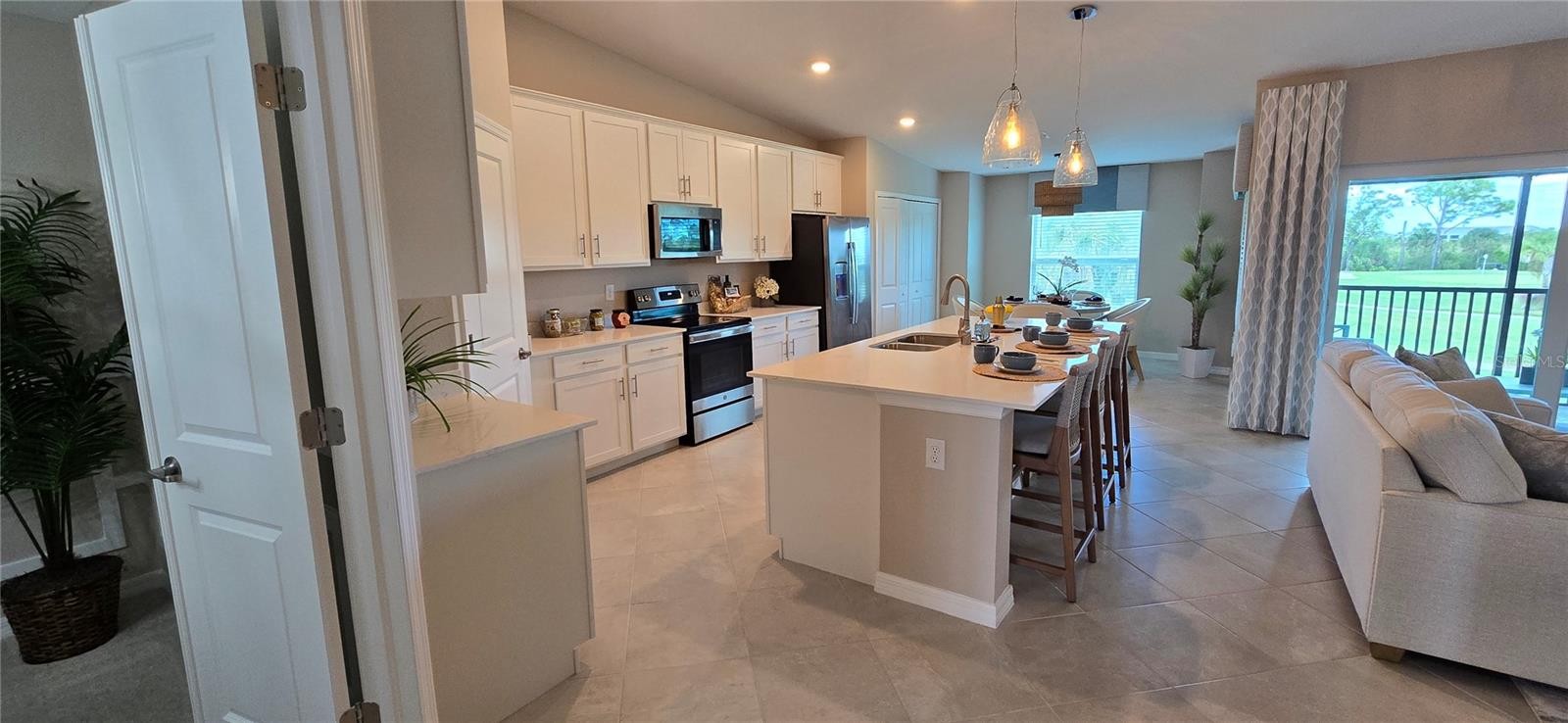GOLF INCLUDED! Resort-Style Living in Wellen Park Golf & Country Club – Unit 206 Discover this 2024-built Diangelo II Veranda offering 2 bedrooms + den, 2 baths, and 1,353 sq ft of beautifully designed living space. The open-concept layout connects the kitchen, dining, and living areas to a screened lanai ideal for enjoying Florida’s breezes. The kitchen features quartz countertops, stainless-steel appliances, and a large island perfect for entertaining. The primary suite includes dual walk-in closets and a spa-style bath with double vanities and glass shower. A 1-car detached garage offers ample storage for bikes and beach gear. Community amenities include an 18-hole Gordon Lewis-designed course, resort pool, fitness center with spa and saunas, tiki bar, tennis, pickleball, and bocce courts. Minutes from Downtown Wellen Park, CoolToday Park, shopping, dining, and Gulf beaches.