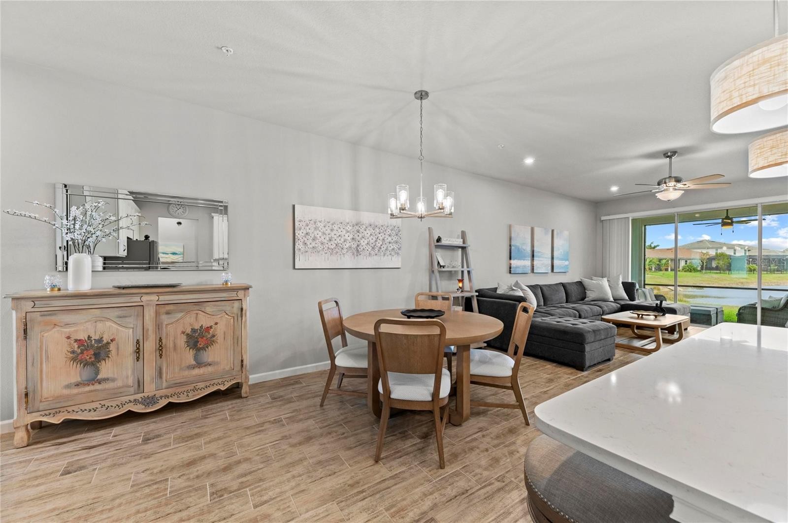 Stunning WATERFRONT Villa in SUNSTONE at Wellen Park — Why Wait to Build? Skip the long build times and step right into this beautifully UPGRADED, TWO Bedroom PLUS FLEX ROOM, 1,500 sq. ft. WATERFRONT VILLA located in the highly desirable Sunstone at Wellen Park. Thoughtfully enhanced and meticulously maintained, this home offers the perfect blend of style, comfort, and convenience. Inside, you'll find CERAMIC TILE FLOORING THROUGHOUT, creating a clean and cohesive look. The home is filled with upgrades including CUSTOM WINDOW TREATMENTS, UPGRADED LIGHT FIXTURES and CEILING FANS WITH DIMMERS, UNDER-CABINET AND ISLAND LIGHTING, and a WHOLE HOUSE SURGE PROTECTOR for added peace of mind. Gorgeous upgraded French doors with DECORATIVE GLASS DESIGN detail provide both style and privacy while allowing natural light to flow through the space. The EPOXY GARAGE FLOOR adds durability and a polished finish, while extra pavers in the garage are ready to extend your lanai if you wish to enhance your outdoor living space. The home has been exceptionally cared for with the 1-year warranty service COMPLETED and pavers recently SEALED. Enjoy peaceful waterfront views and the relaxed Florida lifestyle in one of Wellen Park’s most exciting communities. Hop on your golf cart and cruise to Publix, local dining, shopping, and Downtown Wellen Park. BONUS: A 2025 GOLF CART is INCLUDED with an acceptable offer, making it even easier to enjoy everything this vibrant area has to offer. SUNSTONE offers a community POOL, SPA, CLUBHOUSE, DOG PARK, FITNESS CENTER, PICKLEBALL COURT and FULL OF MONTHLY EVENTS! Don’t miss this opportunity to own a move-in-ready villa in one of the fastest growing lifestyle communities in Southwest Florida.