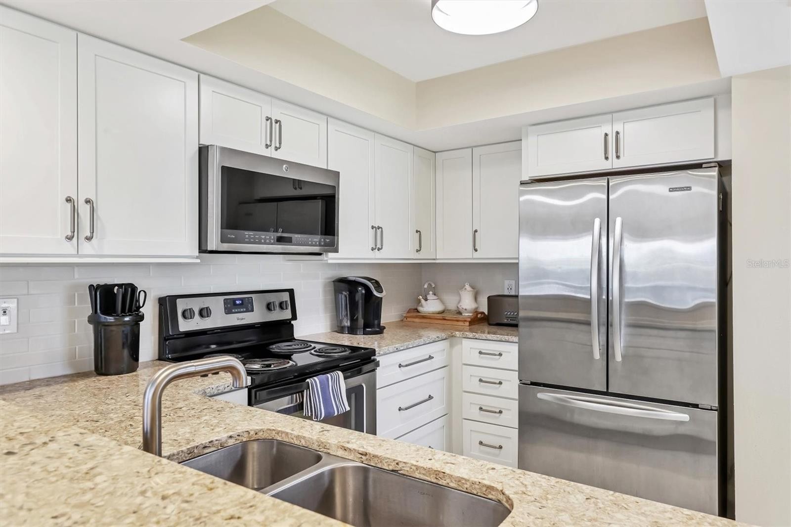 Casual Elegance defines this Refined Residence. Whether a year-round retreat, vacation or investment property, this luxuriously appointed turnkey-furnished 2B/2B in Gulf & Bay Club Bayside will leave you feeling refreshed! Immaculately clean and featuring: a lovely water view, easy single level living, Private Beach access and Deeded Driveway w GARAGE makes coming home to this unit a breeze ~ Recently remodeled w a warm neutral palette, this open plan offers split bedrooms for privacy while allowing gatherings in sun-dappled dining/living space bathed in natural light through the enclosed lanai ~ The KITCHEN includes Stainless appliances, granite breakfast bar, solid wood cabinets w soft close drawers. There’s a convenient breakfast nook doing double duty as ‘pocket’ office with desk/bistro table by the pantry. ~ The spacious LIVING area has comfy Crate & Barrel ‘L’ shaped couch and tranquil water views for relaxed entertainment ~ An Enclosed Lanai presents a serene DINING atmosphere, with an adjustable Crate & Barrel dining table, wonderful for hosting family and friends ~ The Luxurious MASTER suite has King bed, water view, Dual solid wood & granite vanities w soft close, spacious walk-in closet, hall closet, and linen closet! A newer Custom Glass Walk-in Shower is discreetly in the separate commode room ~ The well-appointed, no-shared walls, Guest bedroom provides ample comfort and relaxation for your guests w an adjoining modern bath also w newer, vinyl plank flooring and closet ~ A convenient Full sized Washer Dryer is located in guest hallway. ~ UPGRADES: HVAC June 2025, Recessed Lighting & Newer Fixtures, Newer Cabinetry, Newer Commodes, Vanities & Countertops, New Modern Doors and closet doors, Newer Blinds, Metal Roof 2015. Recent Luxury Vinyl Plank installed throughout ~ A Rare Private 1 Car Garage may hold: a vehicle, and/or bikes, beach & pool gear & toys and sports equipment ~ AMENITIES: 2 Heated Pools, Clubhouse, BBQ area, Walking paths on Well Maintained Grounds w 2 Ponds and Fountains, Pickleball & Tennis courts, Fitness room & Saunas, Private Deeded Beach Access, Community Grills and Fishing Pier/Deck on the Inter coastal Waterway perfect for enjoying a waterside cocktail hour, watching dolphins and being entertained by the endless boat parade passing by ~ LOCATION: Gulf & Bay Club Bayside is an exclusive Key West style, resort-like, gated community unique in its flora & architecture. This socially active community invites you to join the Coastal lifestyle! Enjoy a short walk on the dedicated path to your award winning sugary quartz sands of Siesta Beach, or Hop aboard the Siesta Key Trolley which connects the two ends of the island. Located between Siesta Key Village and Stickney Point Rd, this property places you within easy reach of the island’s most vibrant lifestyle: savory restaurants, boutique shopping and live entertainment, water-sports and sunsets~ RENTALS: Although this unit has Never been a rental, Weekly rentals are allowed. This option makes for an excellent investment opportunity. Gulf & Bay offers on-site rental management or choose your own! With 52 weeks to choose from, owners can save weeks for themselves and may still cover the nut! ~ Whatever your needs, you cannot go wrong in this charming condo, it’s Move-In ready, just waiting for you! ~ Schedule your showing today!